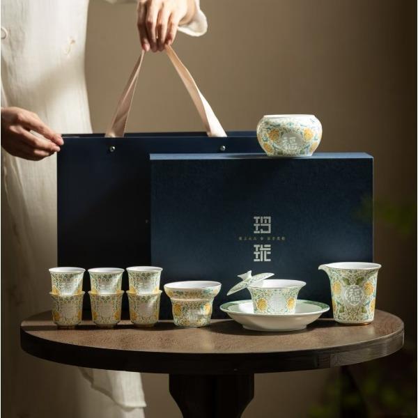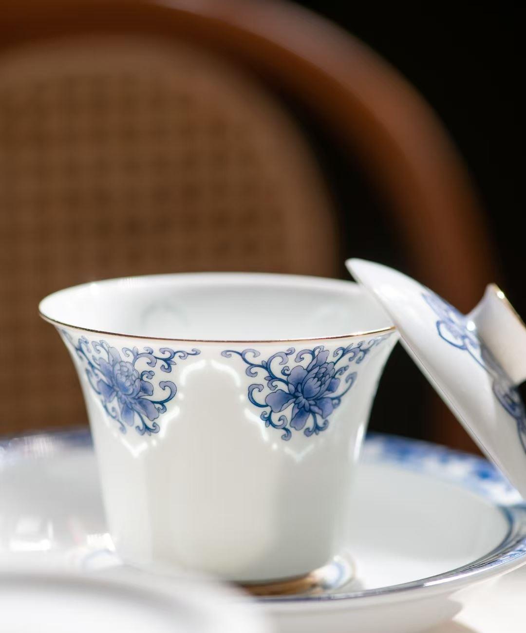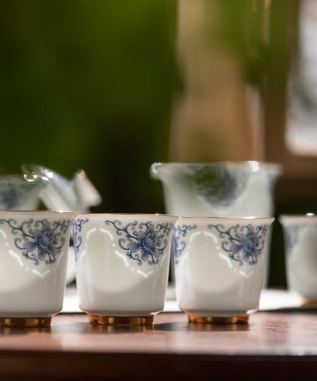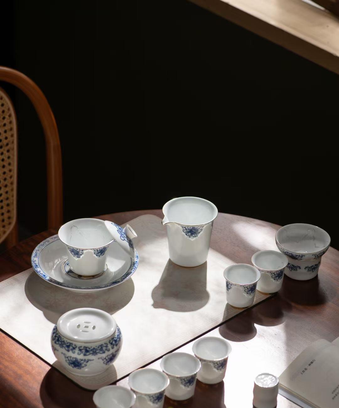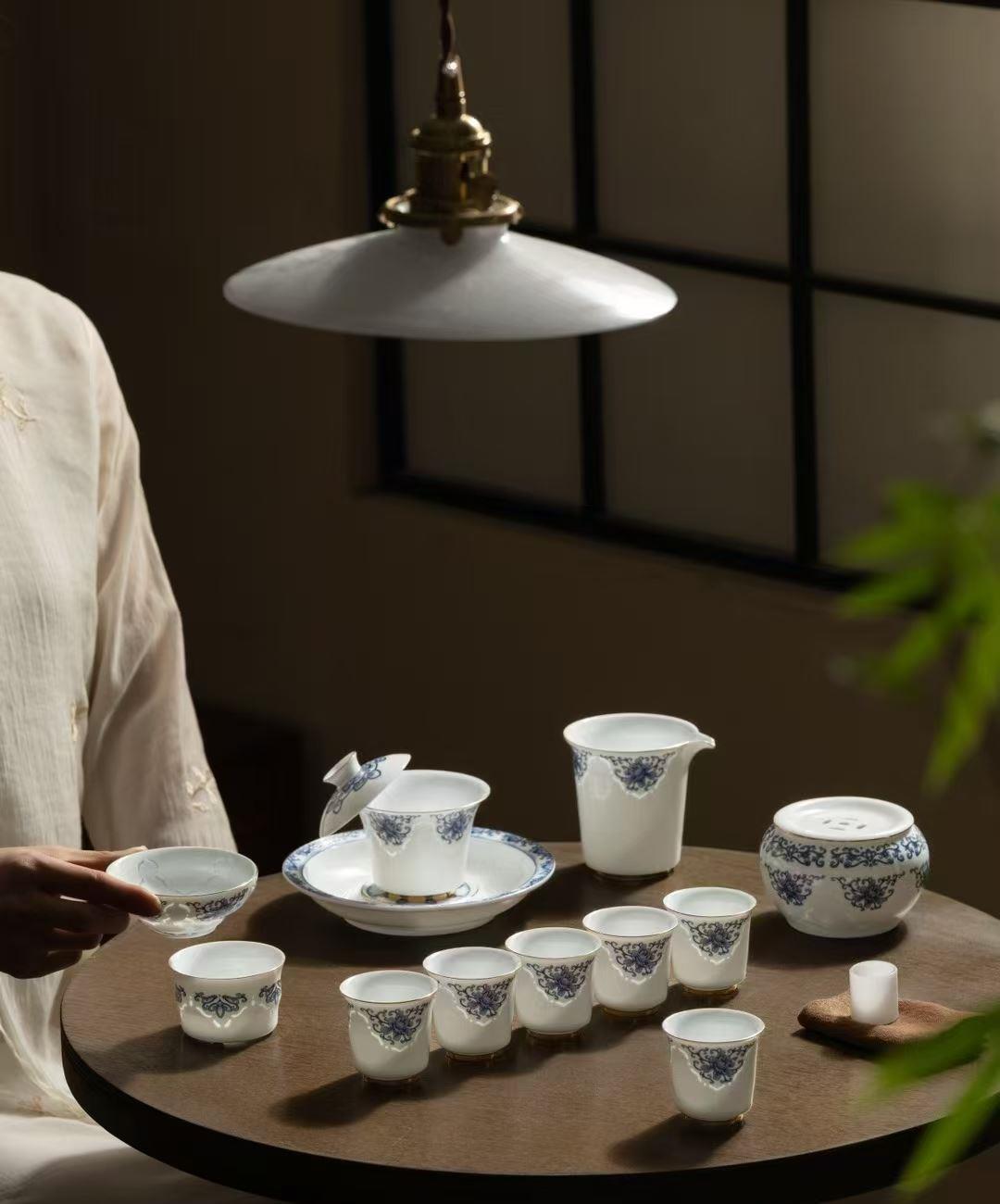 尾桥下窑青花玲珑瓷功夫茶具大套装商务会议礼品开门红节日伴手礼