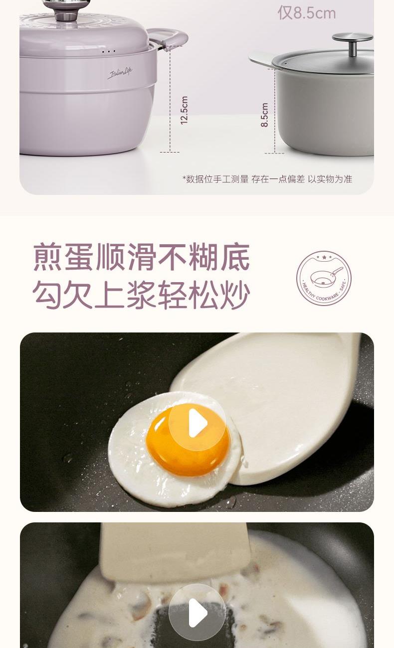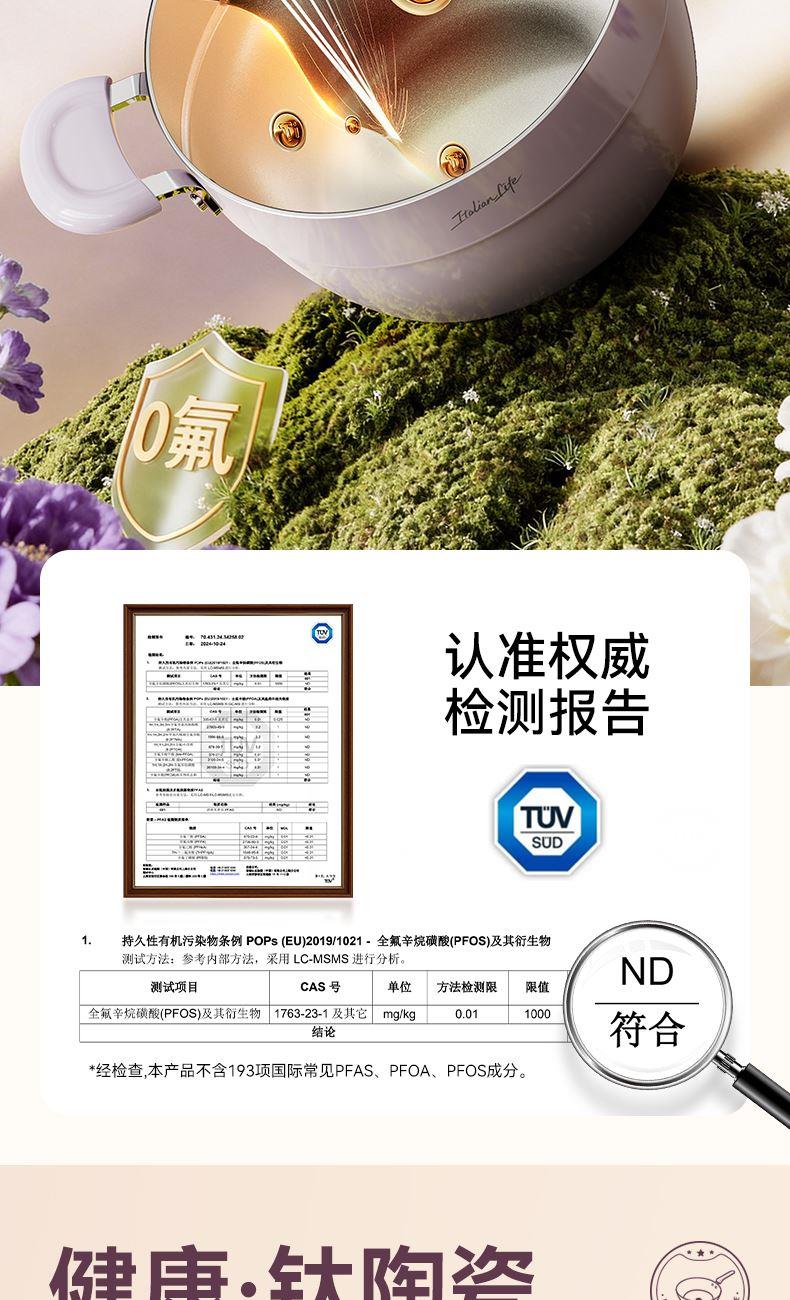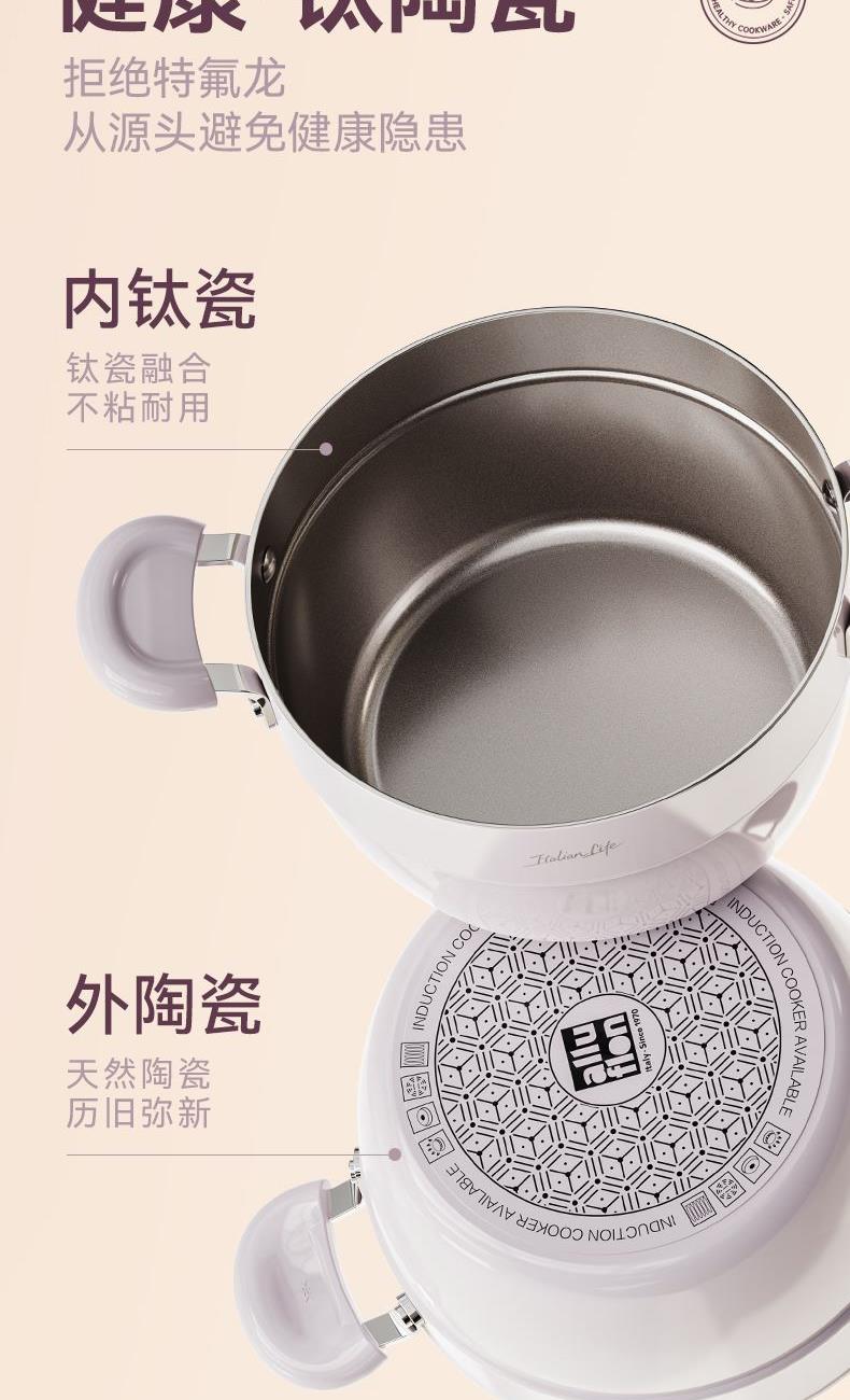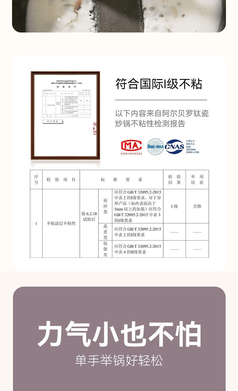 材质:铝合金+陶瓷 入箱:1个/箱 单个尺寸:390*275*168 1、国标1级不粘,钛不粘不糊底 2、钛瓷革新材质,0氟0析出0涂层 3、9HV硬度,持久耐磨不粘 4、锅体减重约18%,单手可颠 5、可进洗碗机,解放双手。