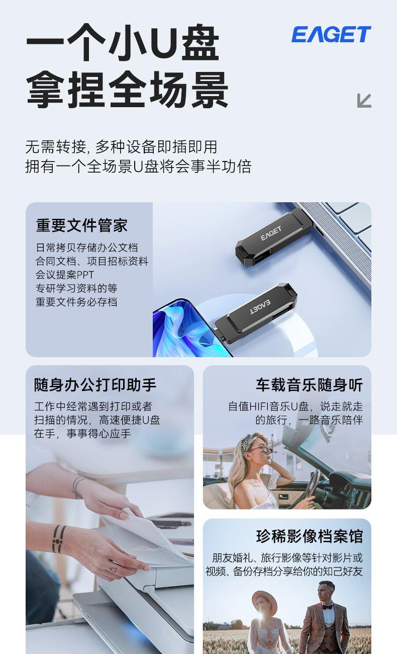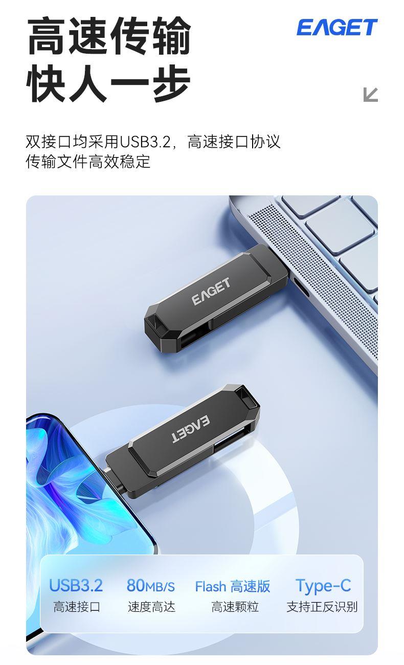 忆捷CF66手机U盘双接口手机电脑多用旋转金属优盘128GB