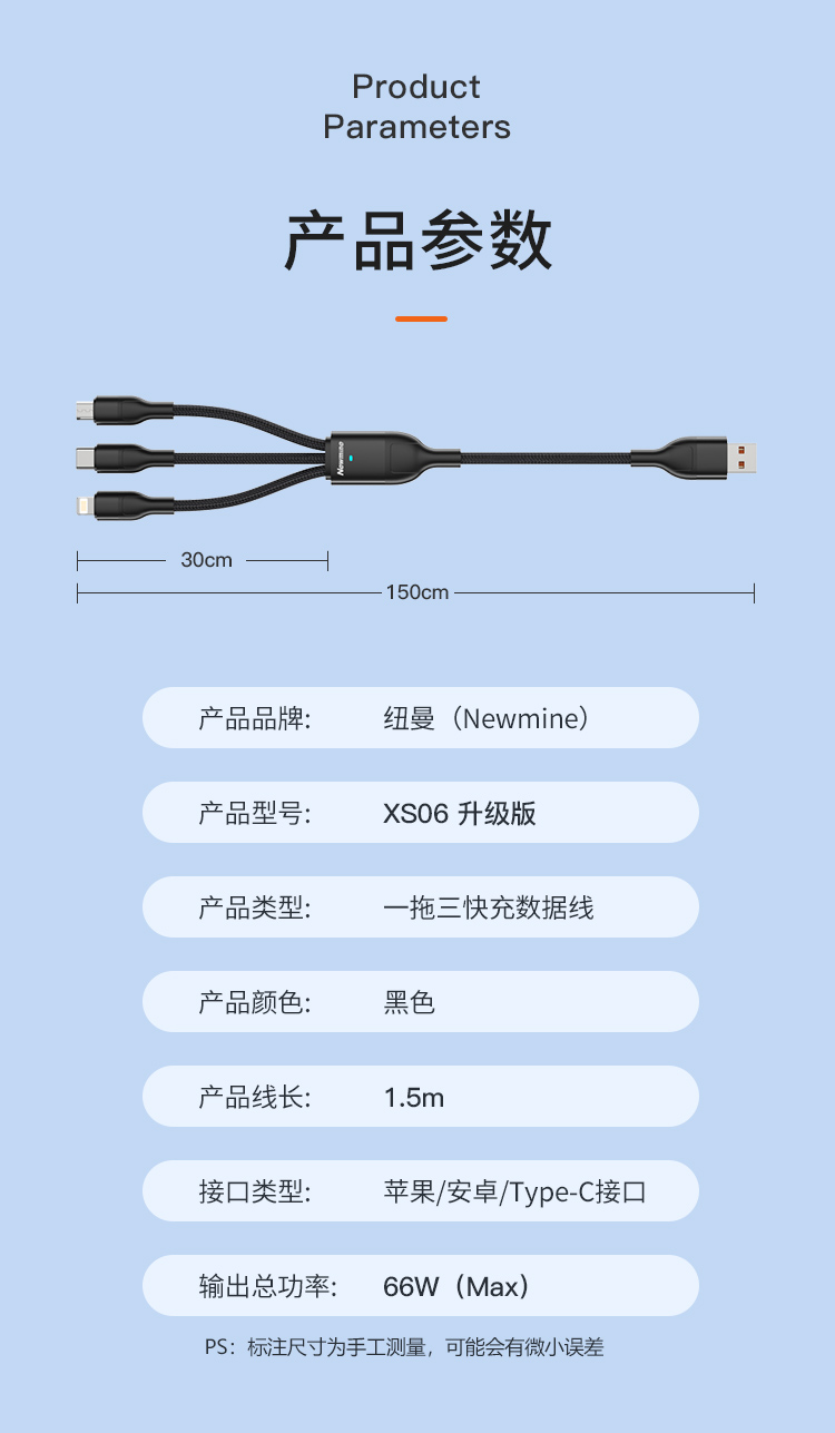 纽曼66W一拖三快充数据线XS06升级