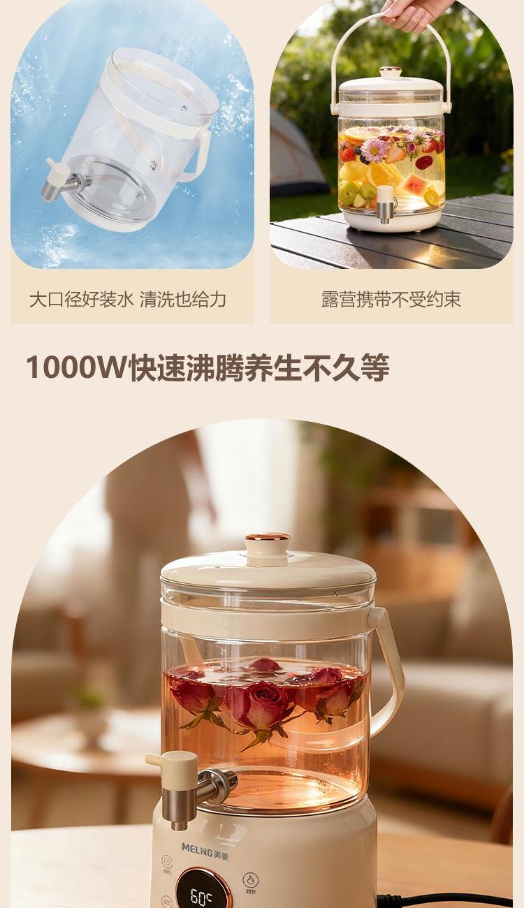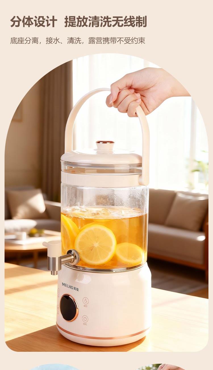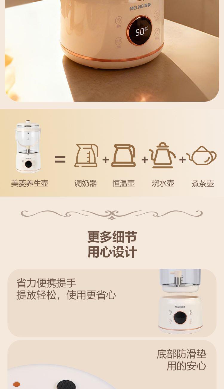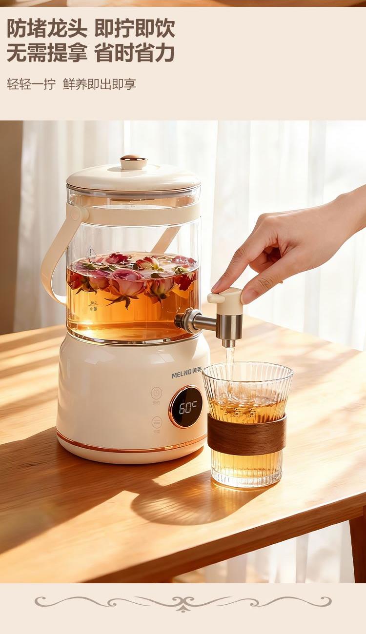 1、6个功能:烧水、花茶、煮茶、凉茶、凉白开、冲奶、,含24小时保温,24小时预约功能,40-90℃调温,
