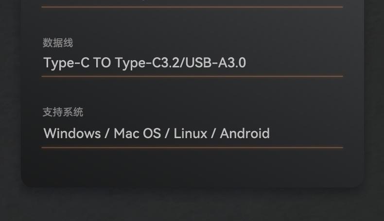 端口支持:Type-C3.2(20Gbps) 传输标准:USB3.2 Gen2*2 传输速率:NVMe协议20Gbps 速度:1800MB/S写入速度 /2000MB/S(读取速度) 数据线:Type-C TO Type-C3.2/USB-A3.0(内附数据线) 支持系统:Windows/Mac OS/Linux/Android 材质:铝制CNC金属外壳 智能休眠 呵护固态硬盘 更低功效 低发热更节能 主控芯片 慧荣旗舰芯片 多端兼容 即插即用 产品尺寸:119*38.3*11mm 单品重量:90g