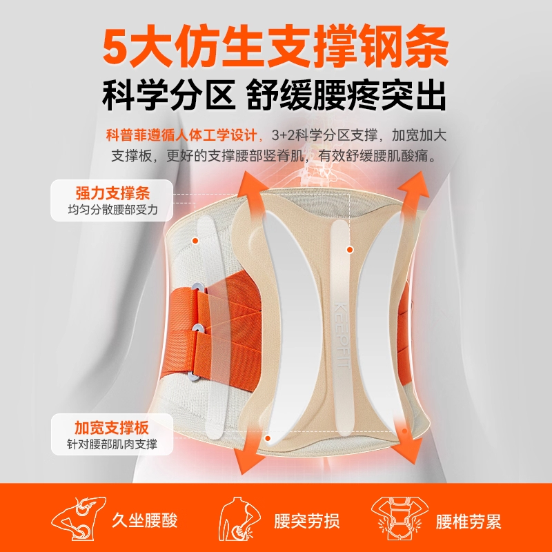 【强力支撑】--双织带+仿双肾支撑条对脊椎强力支撑以及腰部包裹性强,起到更好的支撑腰椎