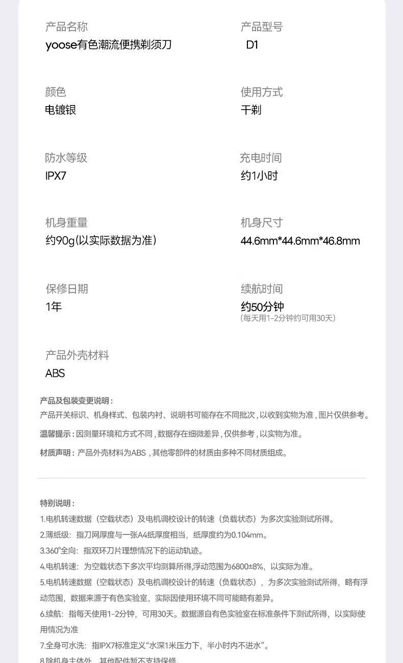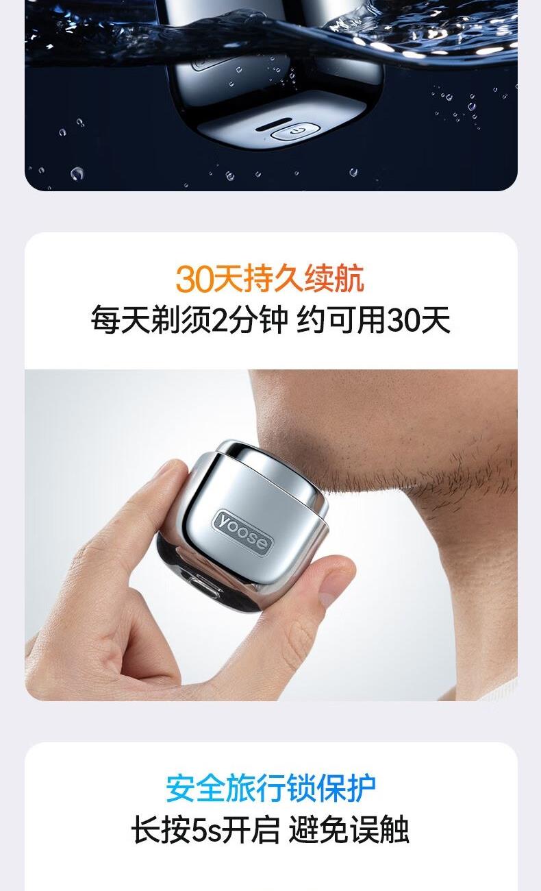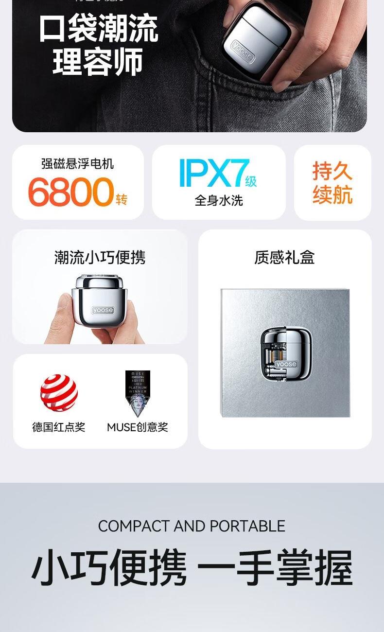有色(yoose)迷你便携剃须刀D1(非合金)电镀银