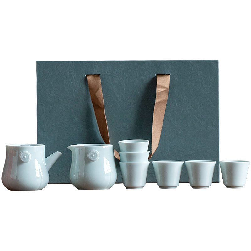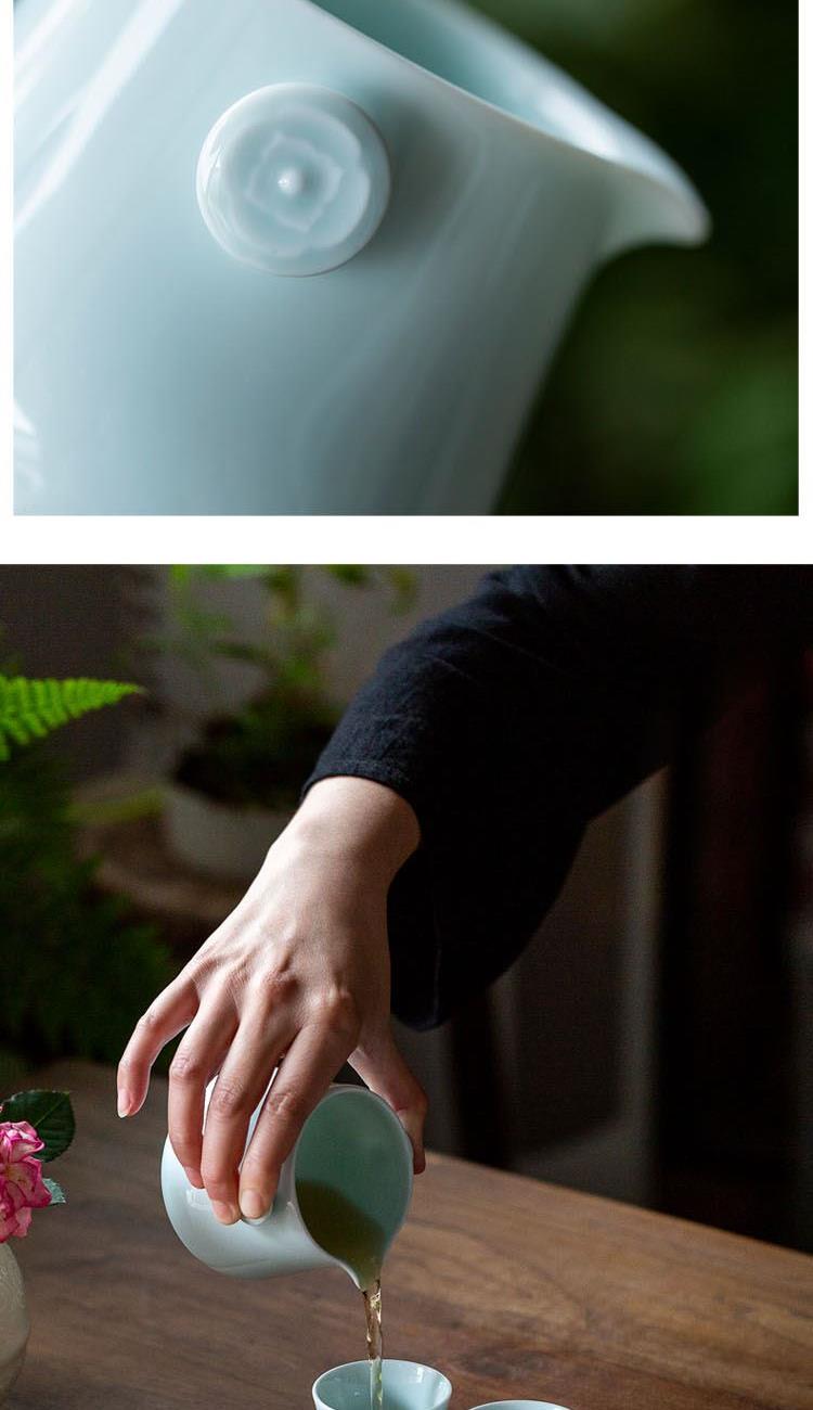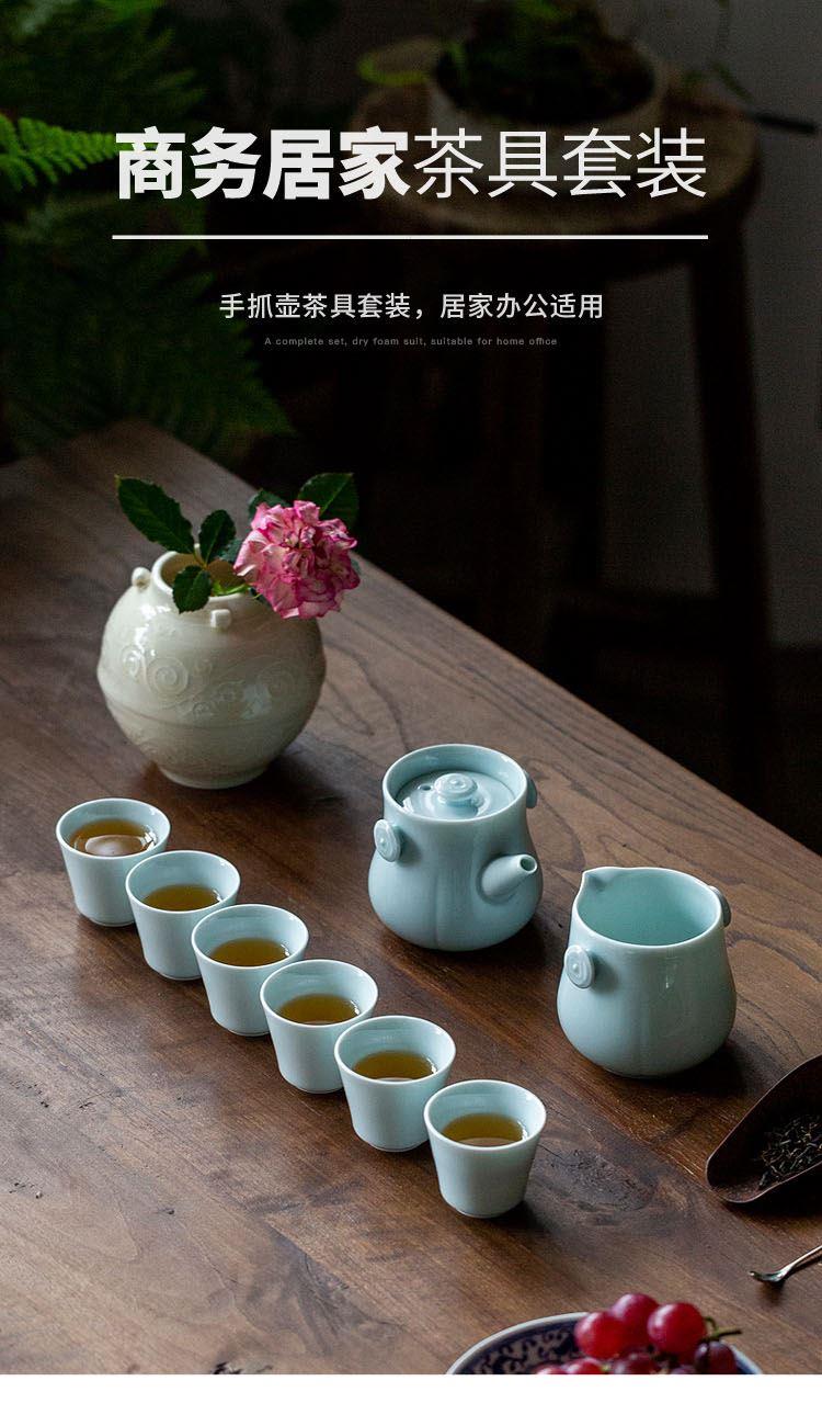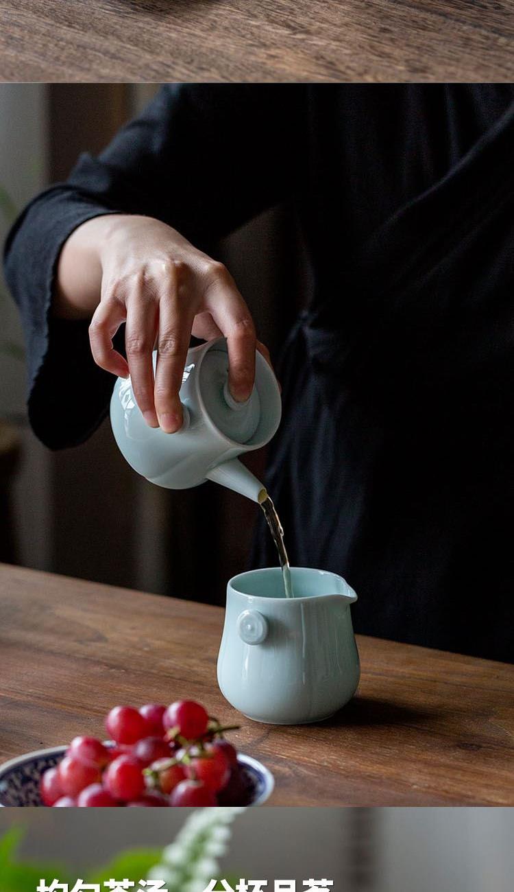 颜色:青瓷 材质:陶瓷 配置:茶壶*1,公杯*1,杯了*6 青瓷的古朴
