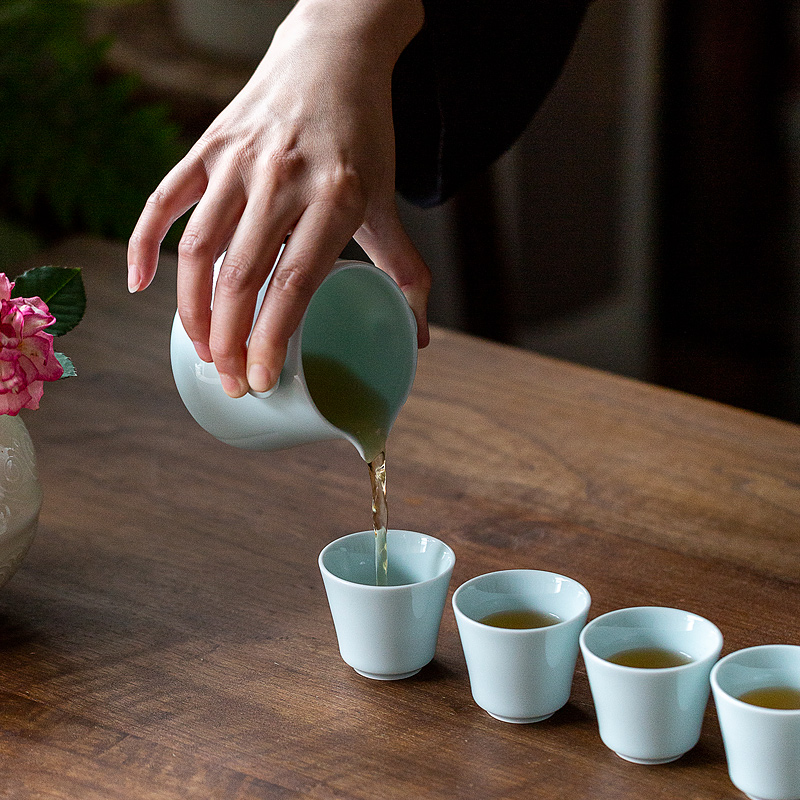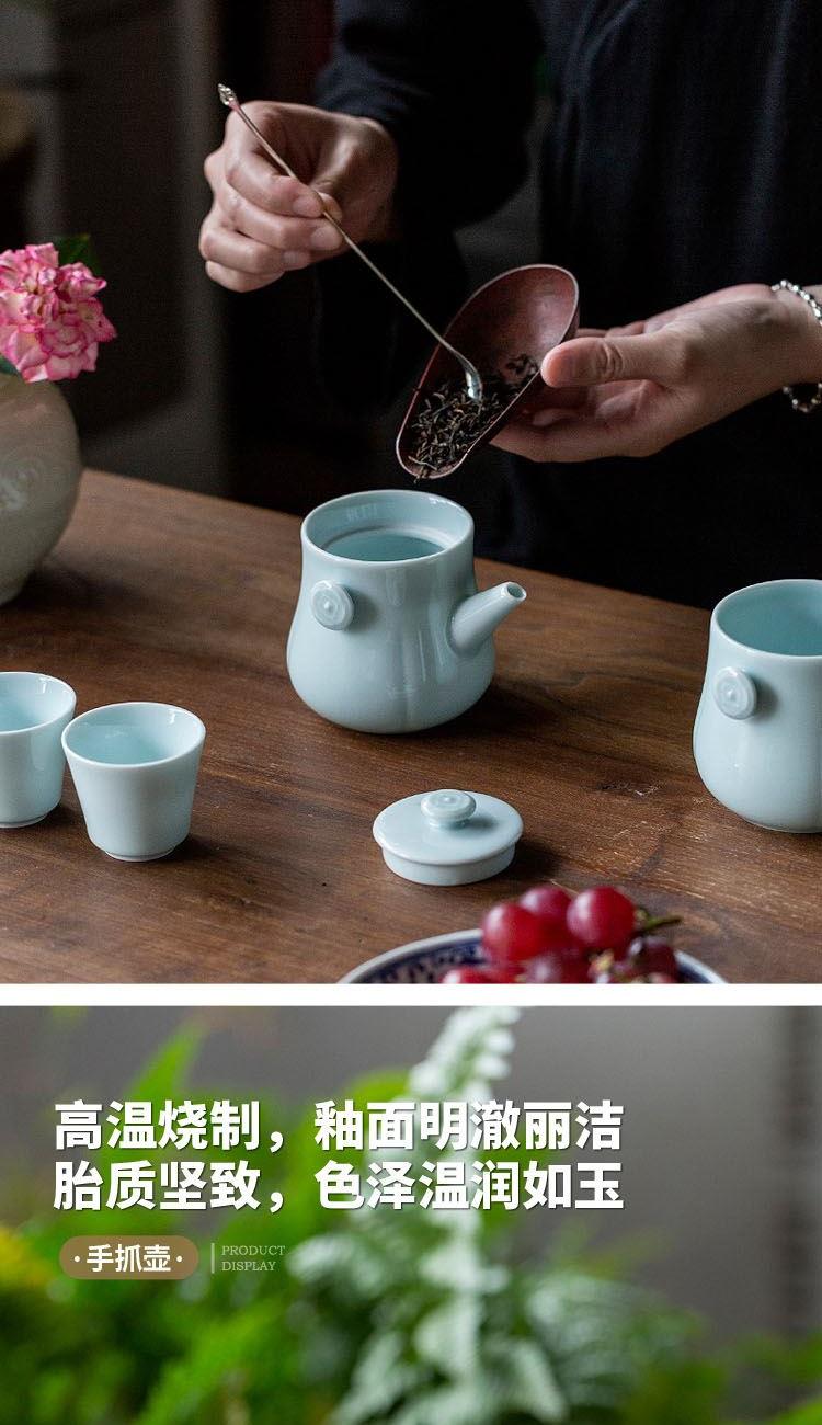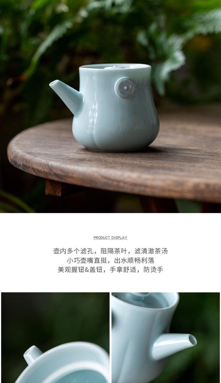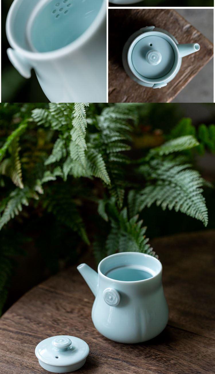 颜色:青瓷 材质:陶瓷 配置:茶壶*1,公杯*1,杯了*6 青瓷的古朴
