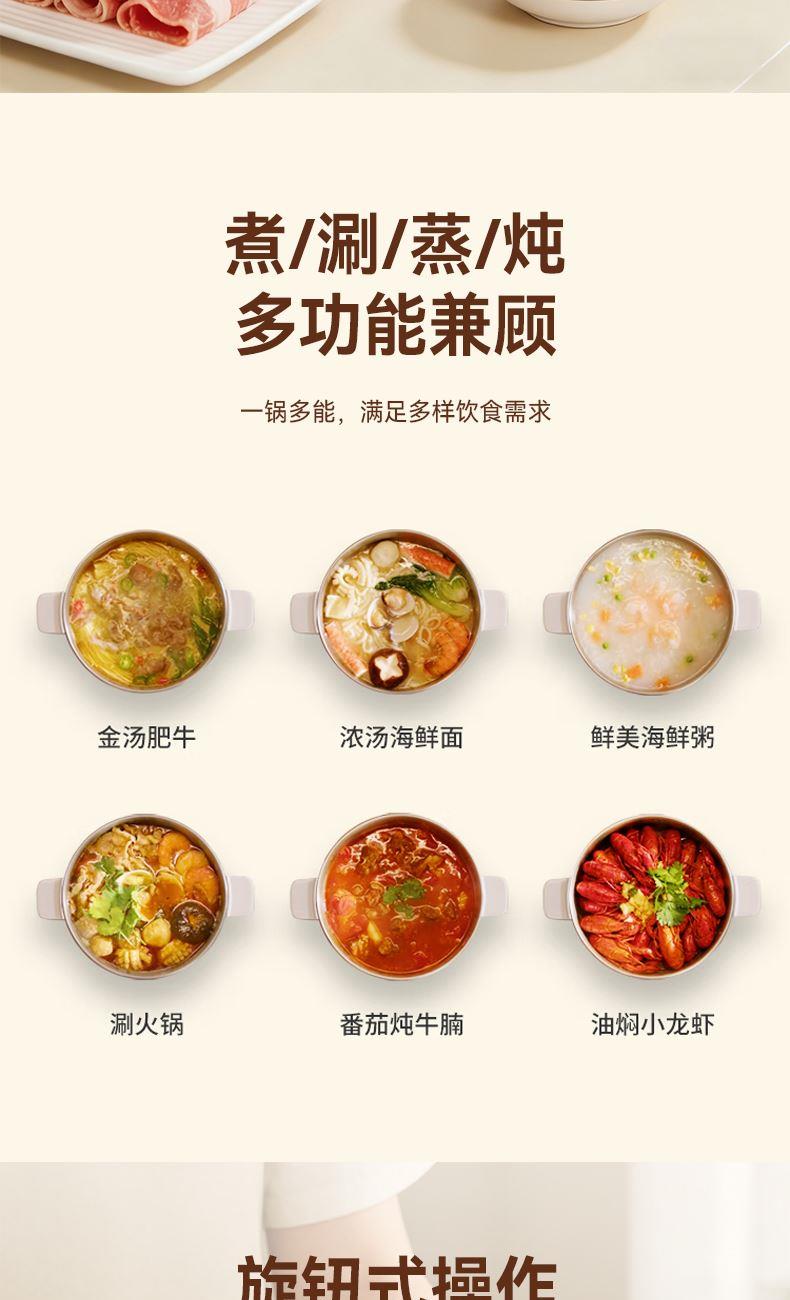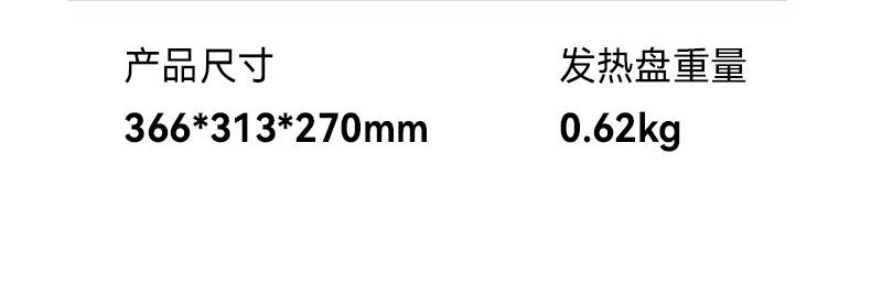 额定功率 1800W 额定电压/频率 220V~/50Hz 额定容量 6L 邮购箱尺寸 355*245*360mm 邮购箱净重/毛重 2.88kg/3.44kg 产品尺寸 366*313*270mm 内胆重量 0.58kg 发热盘重量 0.62kg 304 材质配置:锅体采用食品级 304 不锈钢,符合安全标准,无异味更耐用; 6L 黄金大容量:匹配家庭聚餐、朋友小聚场景,食材一次容纳不拥挤,避免重复烹饪; 1800W大功率加热:快速升温均匀导热,缩短烹饪时间。