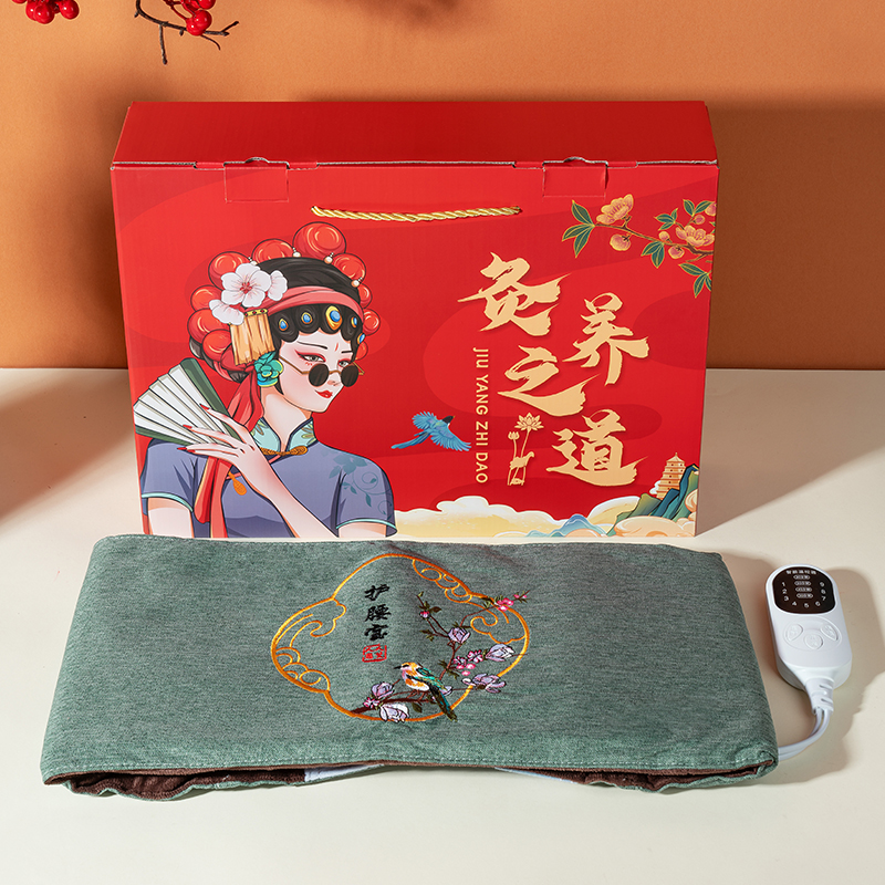 礼盒规格:395*290*80mm 产品配置:电加热护腰宝*1个(含布套、加热芯、艾绒垫、开关) 精美礼盒*1个 产品规格:120*220mm 推荐理由: 1、随着生活、工作节奏的加快,腰困、腰酸、腰痛、腰肌劳损,已经不再是老人的专属,年轻的我们也备受煎熬。 2、客户需要的,就是我们关注的! 3、产品由亚麻刺绣套、艾绒垫,加热垫和控温开关四部分组成,内里水晶绒,贴身更舒适;多味本草艾绒垫,灸效好;分离式插头,九档控温,定时安全,居家、办公皆可用。 4、送礼送健康,亚麻艾灸护腰宝,有家有艾有健康,保护您的腰肾,温暖您的心田。 5、国潮风红绿色礼盒可选,礼盒大,有面子。