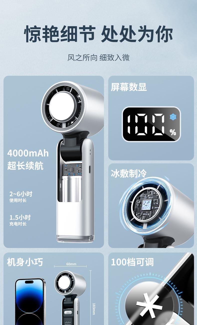 右心K801新款高速冰敷制冷手持风扇小风扇
