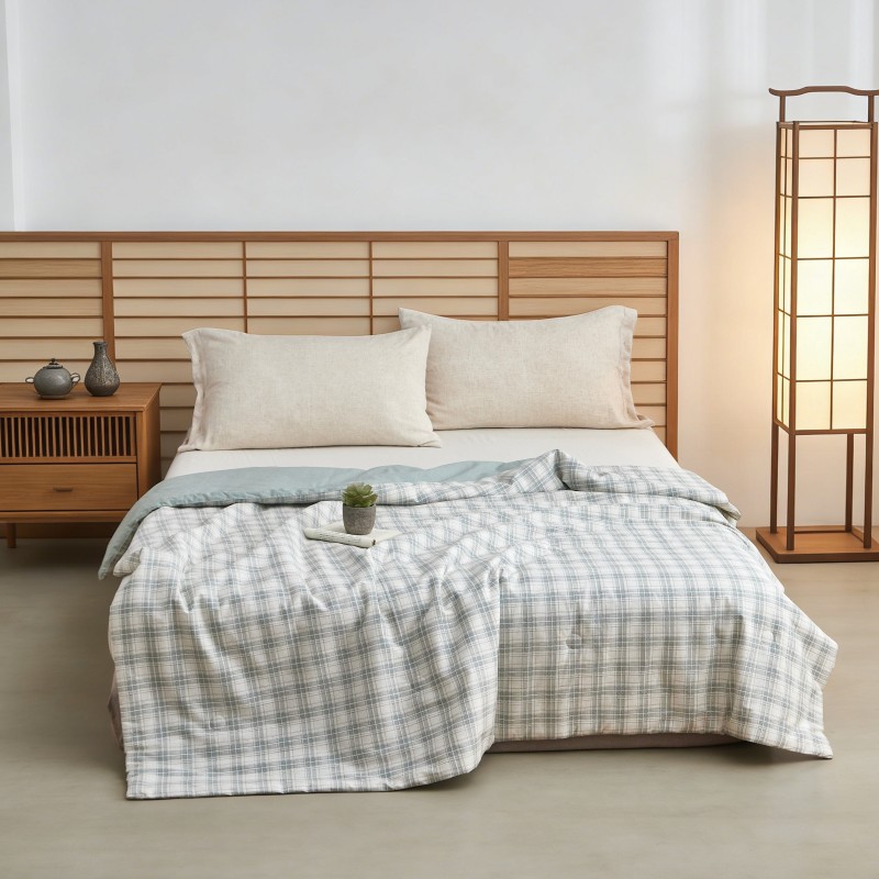 规格:200*230cm 面料:全棉 填充:棉花 克重:1500g 执行标准:GB/T22796-2021 安全类别:GB18401-2010 B类 1.采用优质纯棉面料,斜纹织造,水洗处理,手感柔糯,吸湿透气,贴身更舒适贴; 2.填充物选用优质A类整张羽丝棉纤维手感犹如羽绒般,轻盈蓬松,柔软舒适 3.采用单边暗合缝制,定点绗缝工艺,日式简约设计风格,简约时尚,让您感受科技生态睡眠!