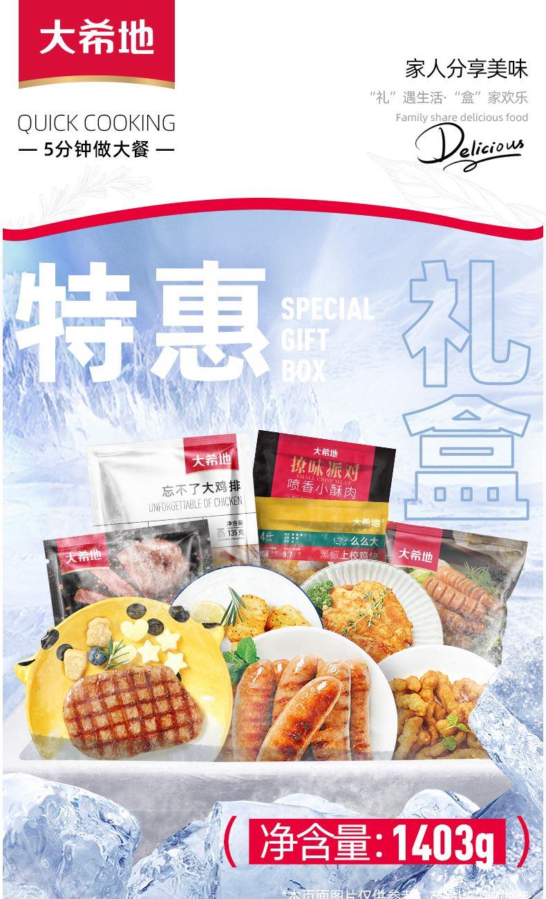 产品参数配置​ 香草黑胡椒草饲眼肉牛排:130g,贴肤装。​ 大一统整切菲力牛排:130g(单份),2 片袋装 美丽麻利烘好芝心披萨(果蔬牛肉味):180g 美丽麻利烘好芝心披萨(秘制鸡肉味):180g 爆有料经典原味 80 醇肉肠:508g,袋装 经典西冷牛排:120g,盒装,附加 30g 黑椒酱。​ 蔬菜鲜虾饼:160g 产品卖点说明​ 牛排系列:涵盖眼肉、菲力、西冷等多种经典部位,满足不同口感需求。自带风味,简化烹饪步骤,适合家庭快速制作。​