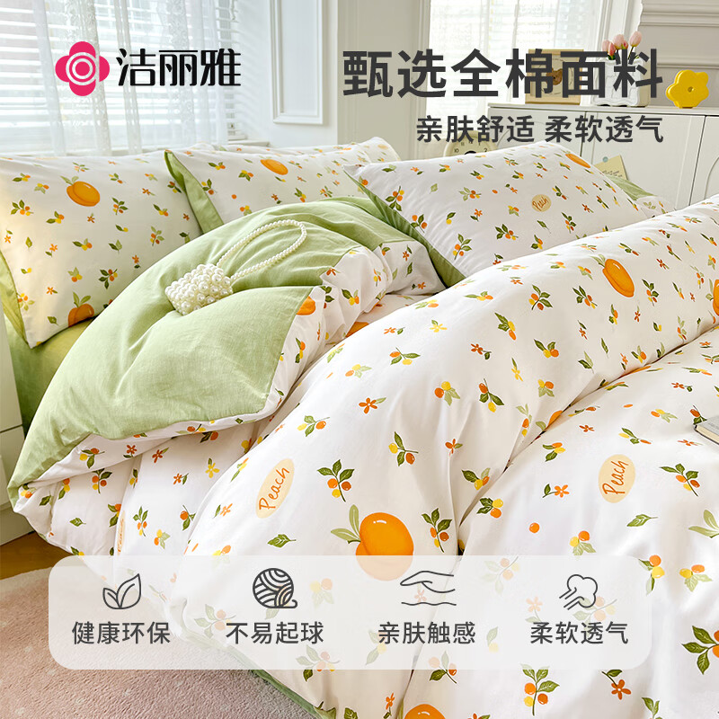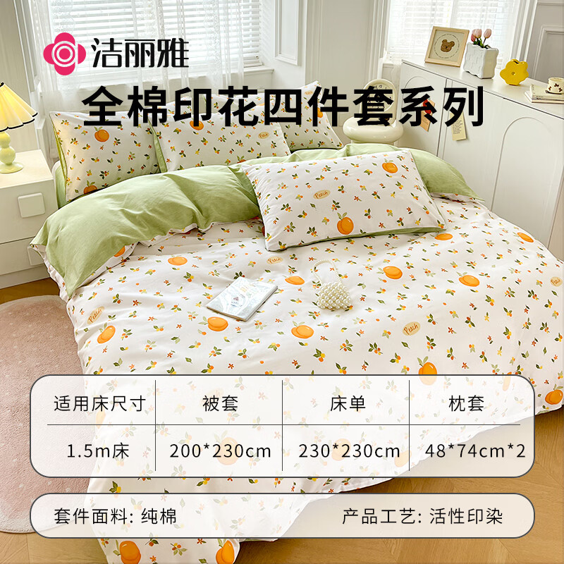 洁丽雅四件套被套200*230cm1.5/1.8米床橘子