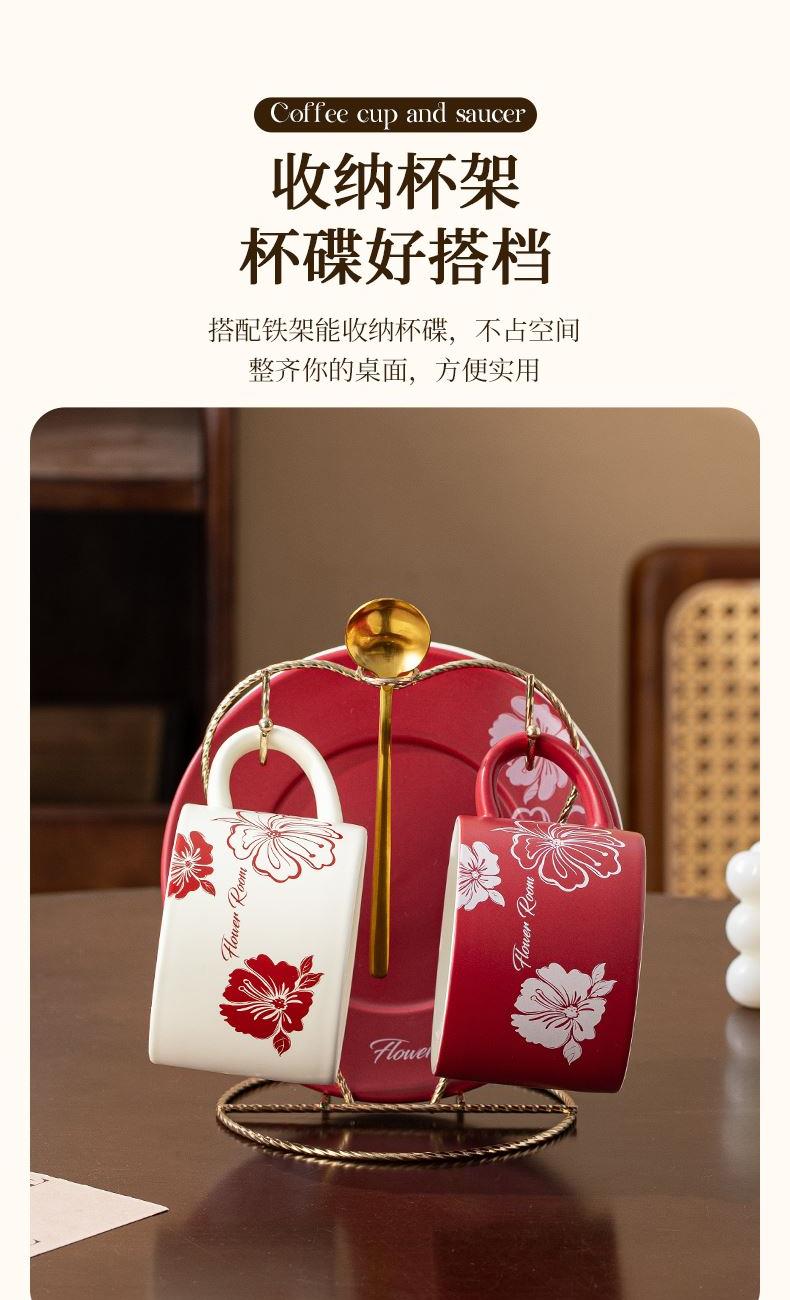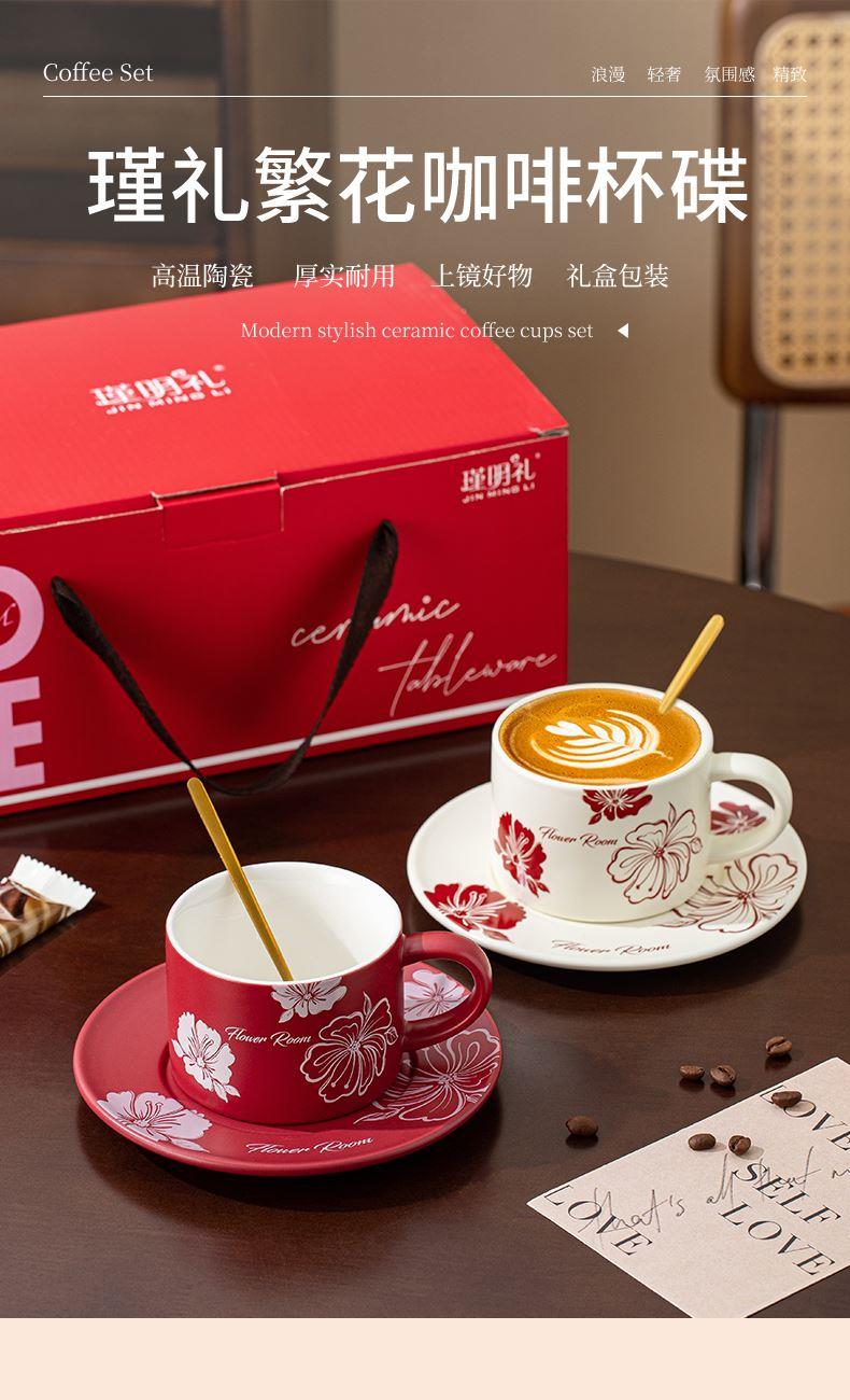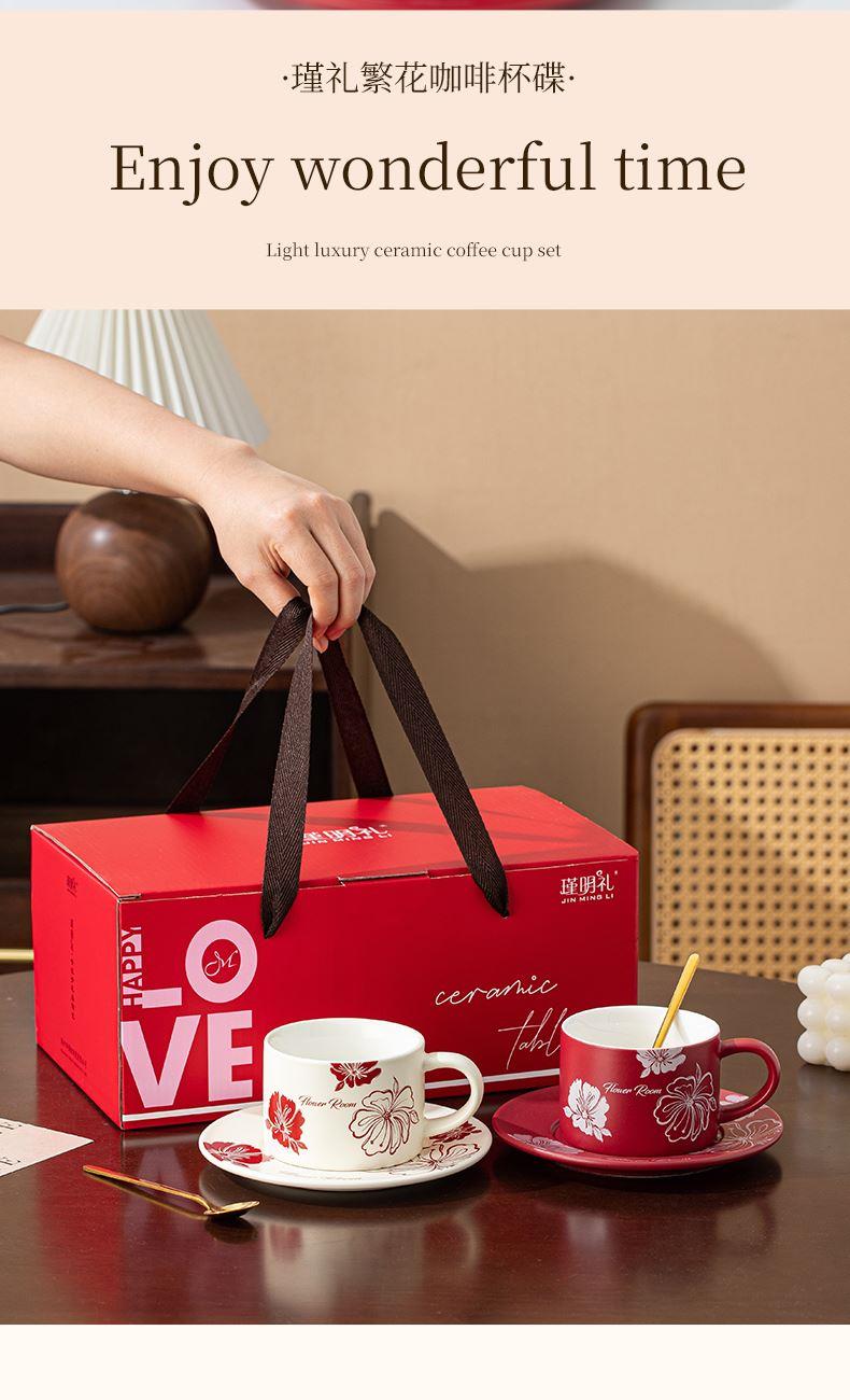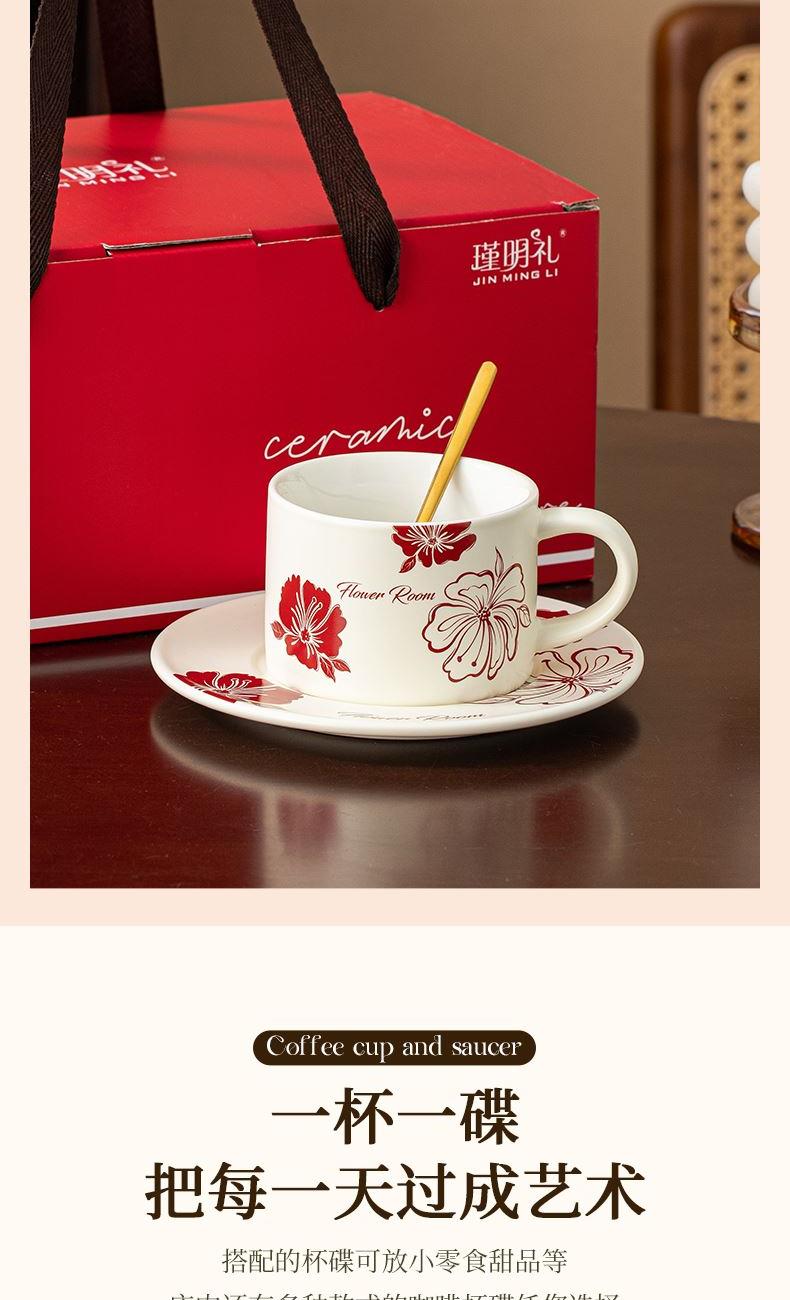 • 瑾明礼-瑾礼繁花-咖啡杯碟-2杯2碟2勺1铁架
