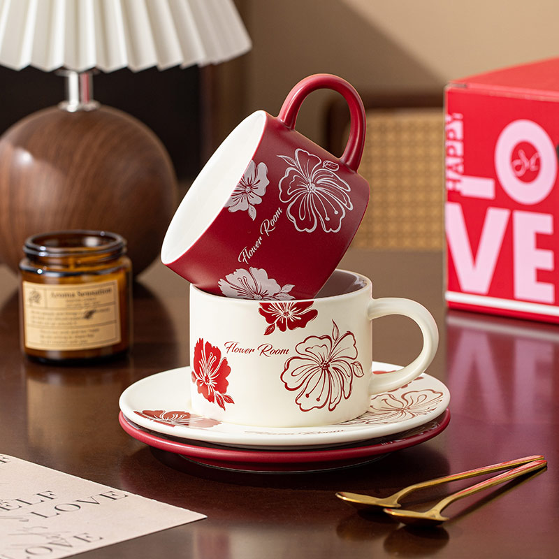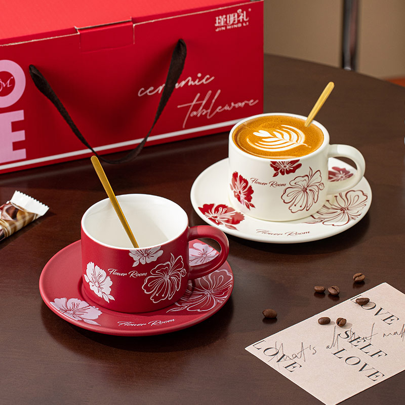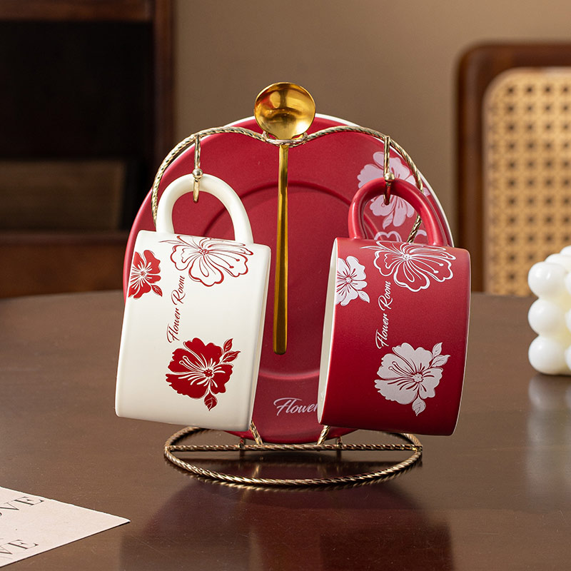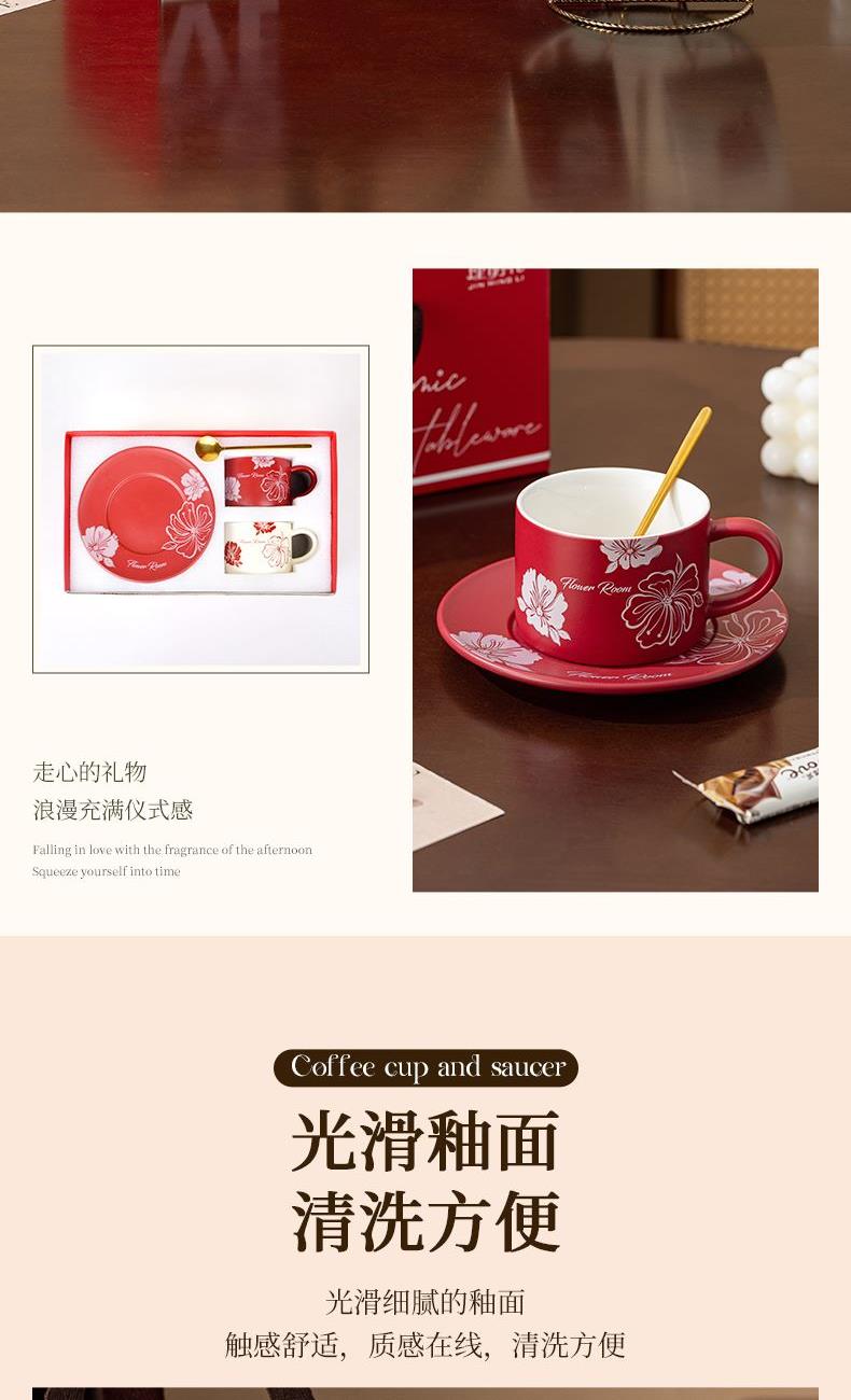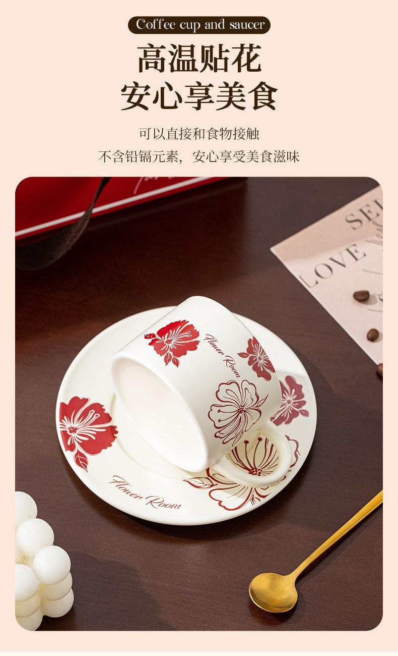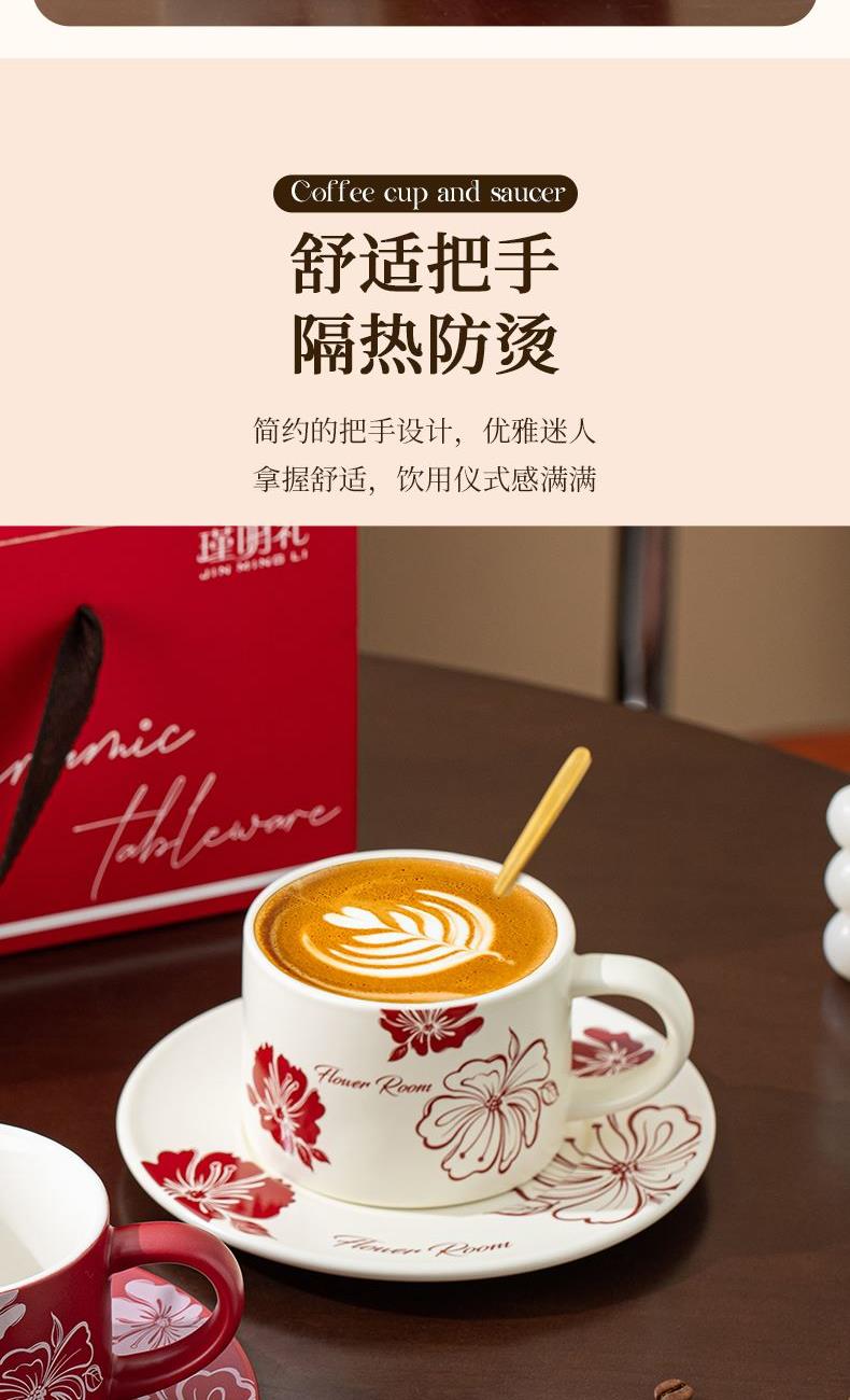 • 瑾明礼-瑾礼繁花-咖啡杯碟-2杯2碟2勺1铁架