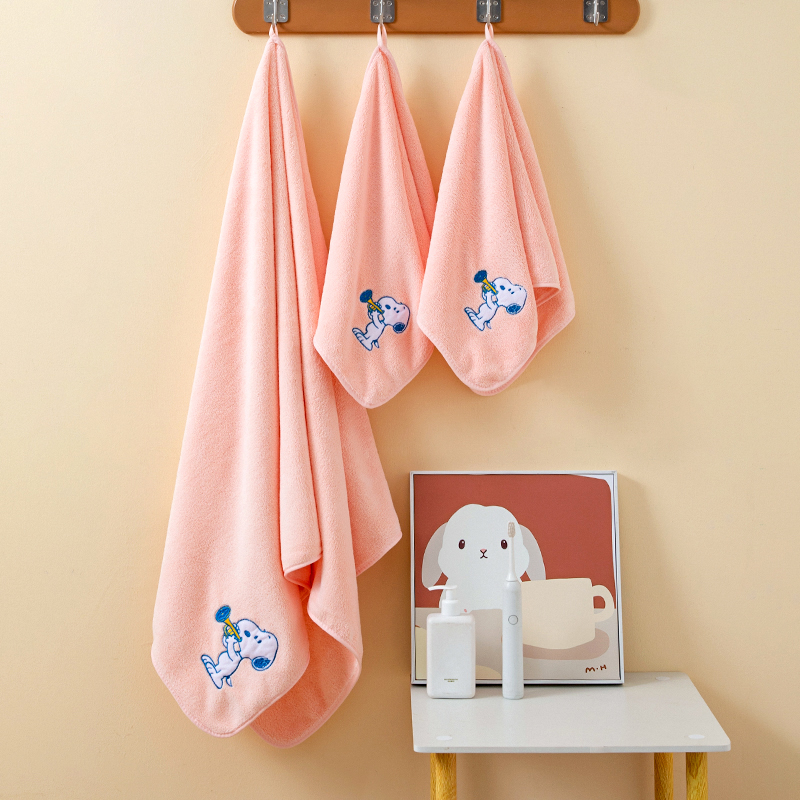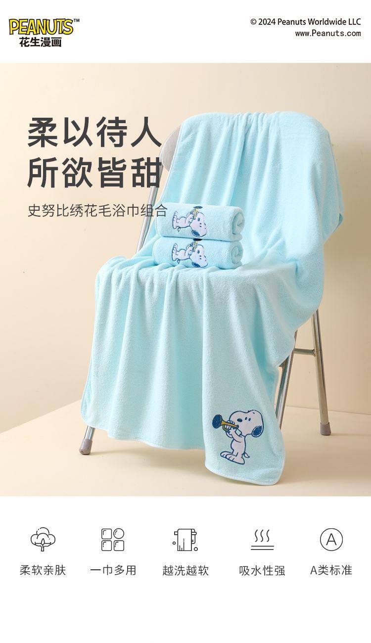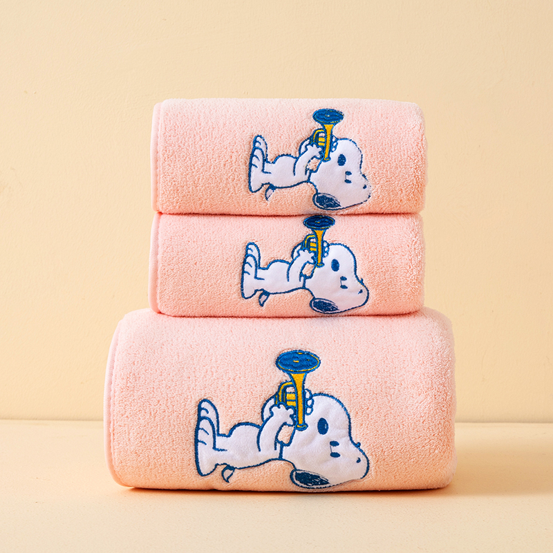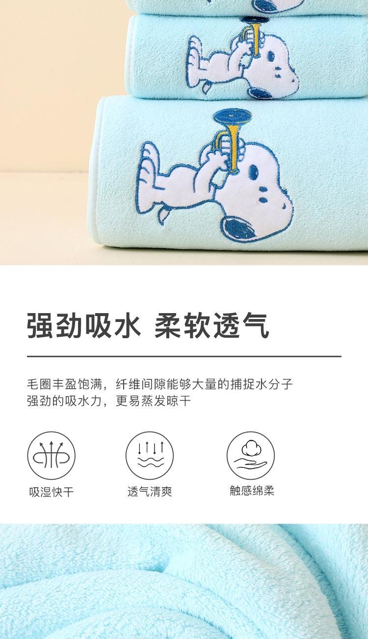 史努比系列绣花毛浴巾组合吸水速干男女家用