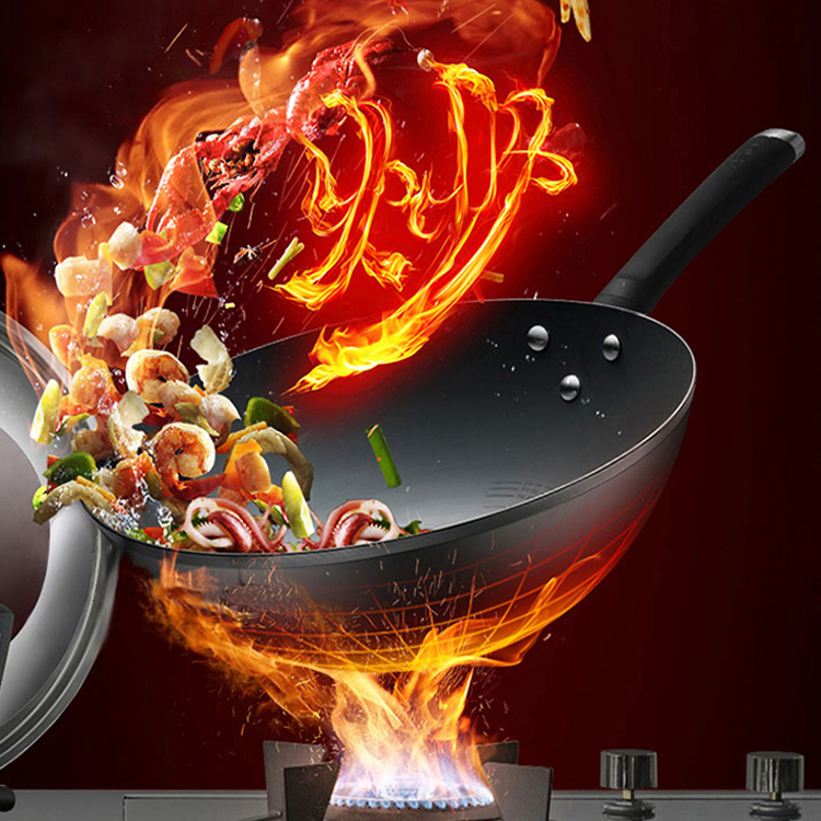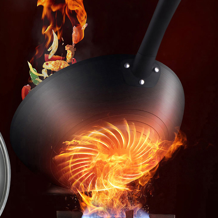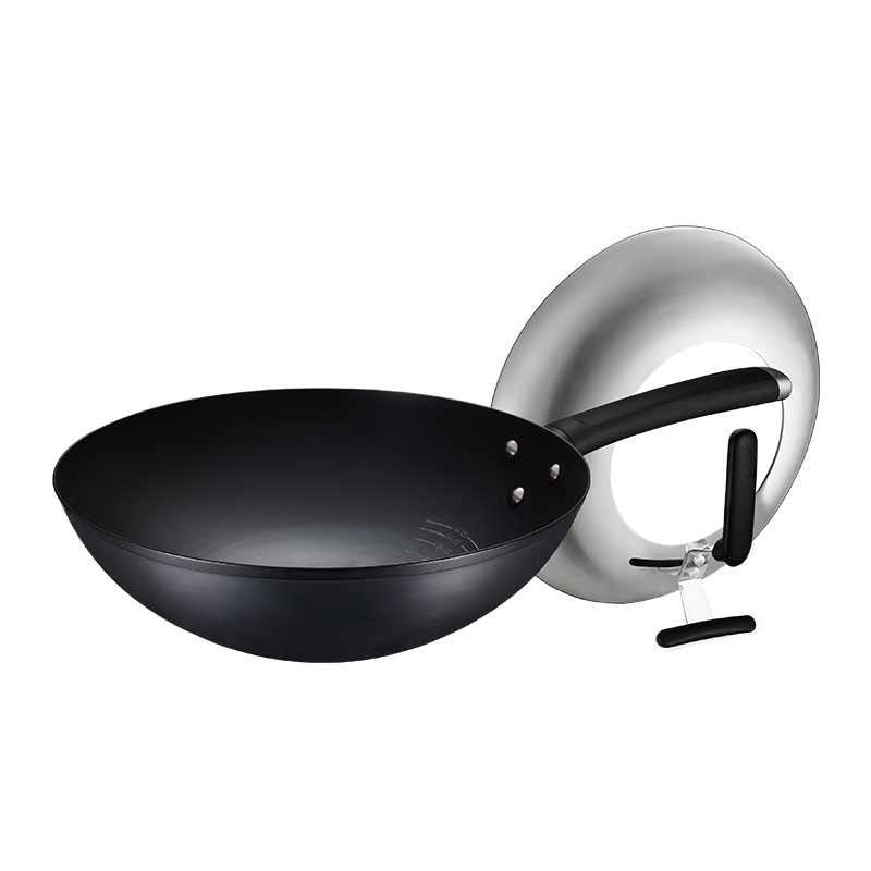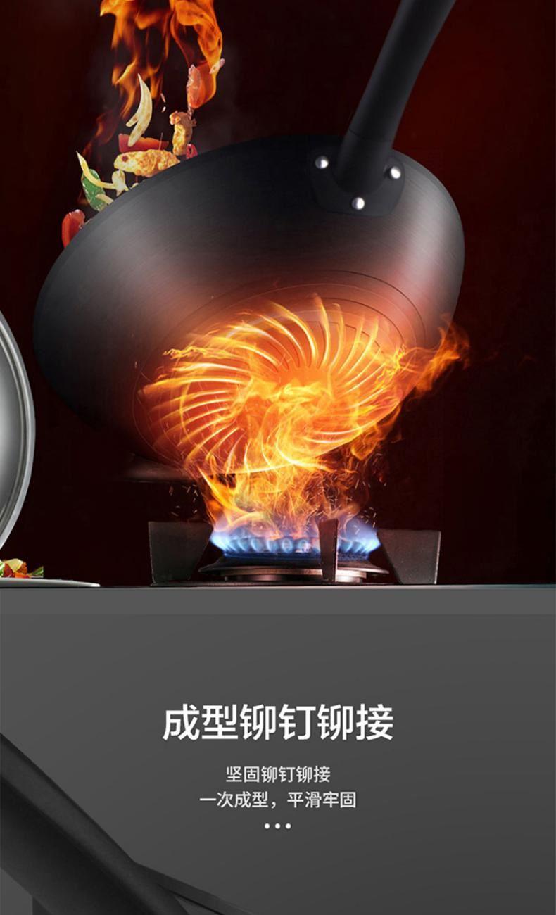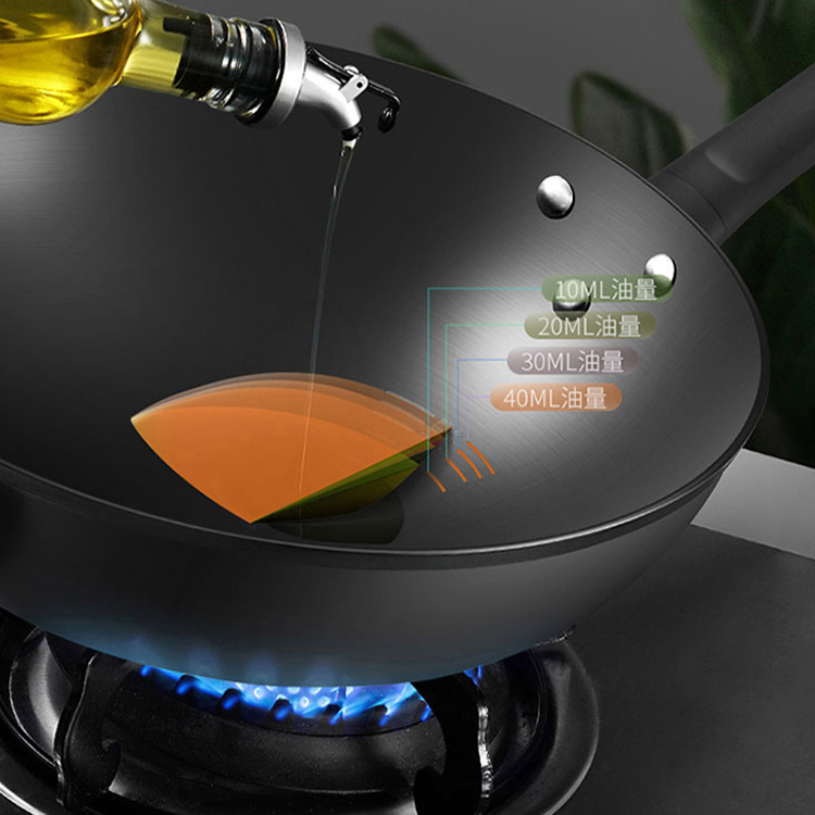产品型号:CF30M2Q 产品规格:30cm 彩盒尺寸:510*330*168 净重:2.33kg 1、氮化锈不了,旋风尖底,精铁锻造,油量控制。 2、新三代旋风炒锅锅身采用360°渗氮氧化处理工艺为锅身加上一层紧密的防锈层,抗锈不生锈。 3、锅体倾斜45°角通过锅内不同的油控便可看到倒入后相对应的油量油你控不多不少,油量刚刚好。 4、锅体采用圆底设计更符合国人的烹饪习惯适宜翻炒,掂锅不飞菜,受热全面更省油。 5、坚固铆钉铆接一次成型,平滑牢固。