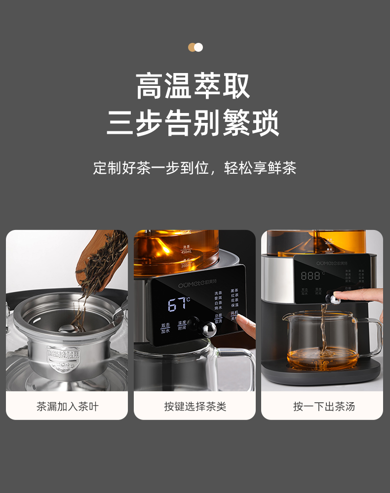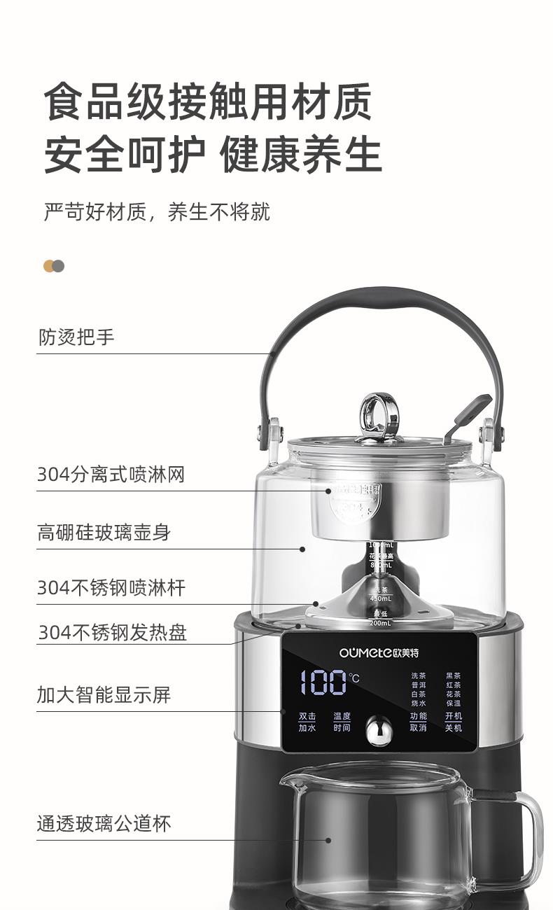 欧美特旗舰款智能煮茶器玻璃花茶壶大容量办公室用咖啡机