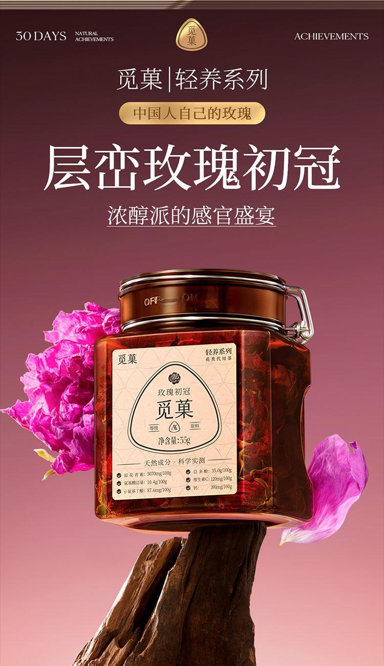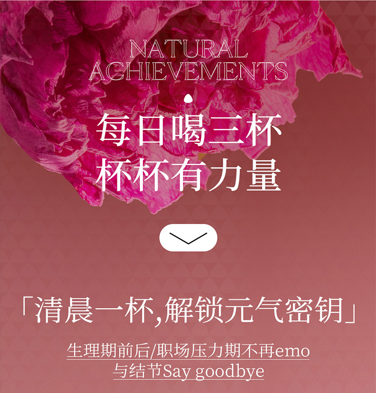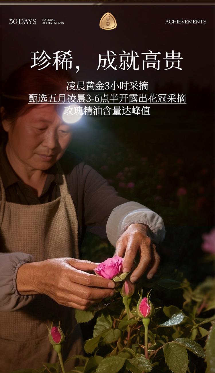 玫瑰之乡 北纬36°玫瑰圣地 可追溯至1200年前 中国玫瑰之乡--山东平阴 药典指定道地产区 舒缓身心 每100g含87.6mg y-氨基丁酸 舒缓身心 轻拥深度睡眠 焕亮肌肤 每100g含5070mg原花青素 23倍“鲜果蓝莓自由基清除力