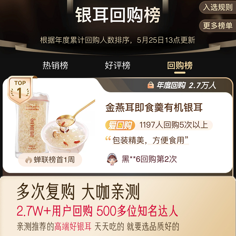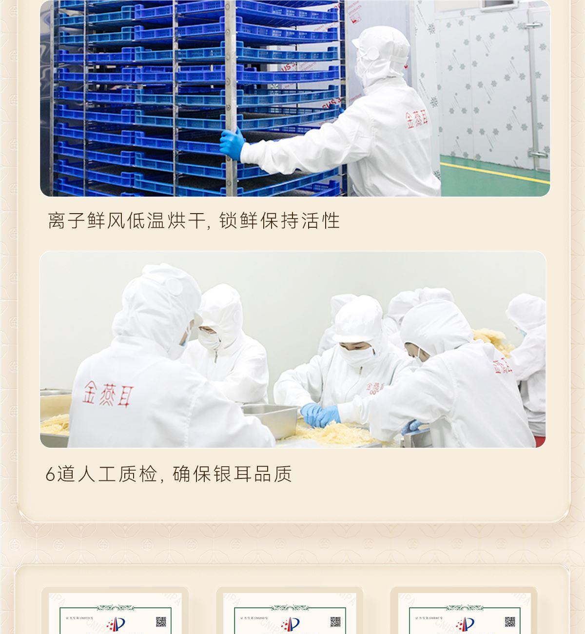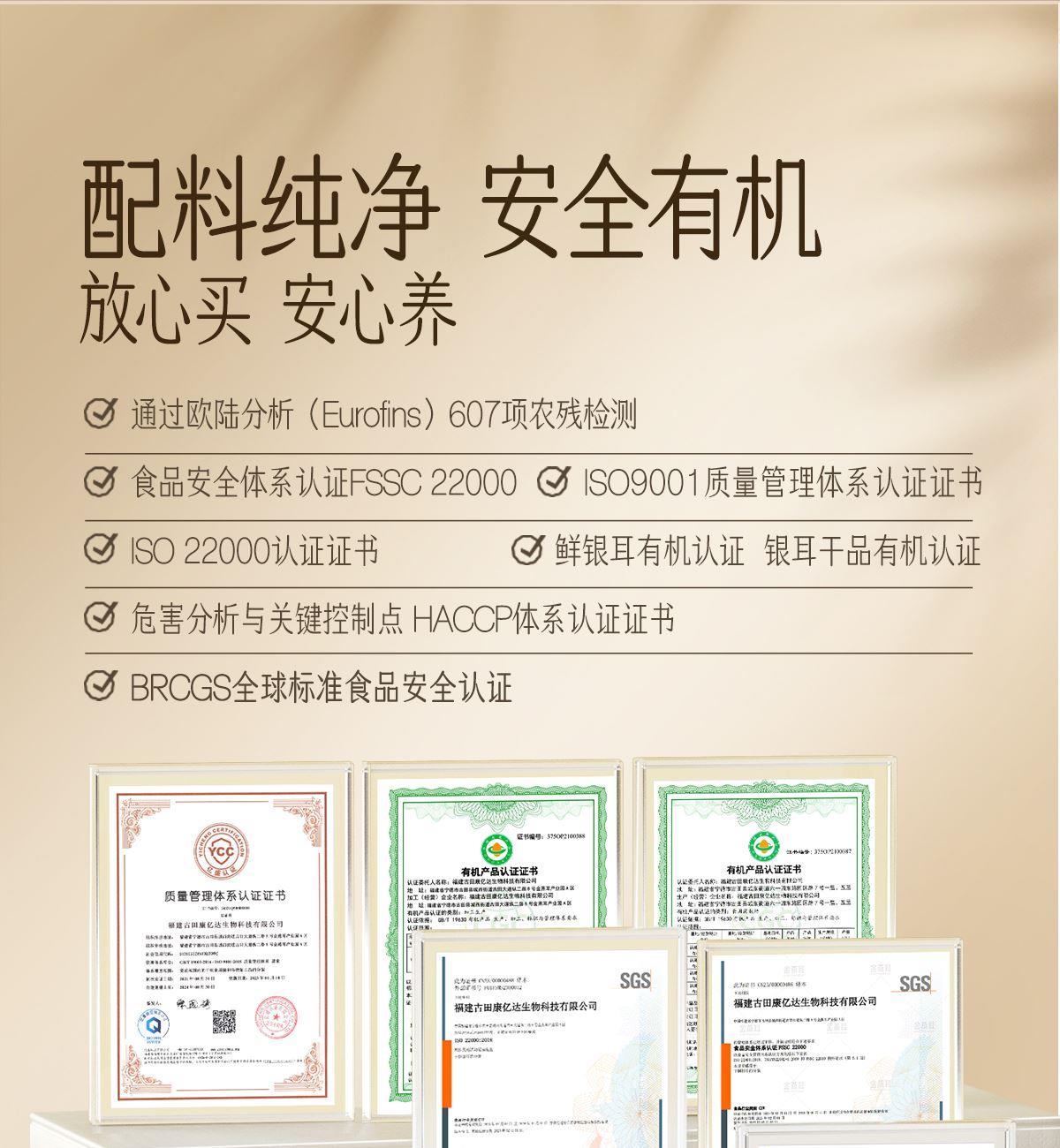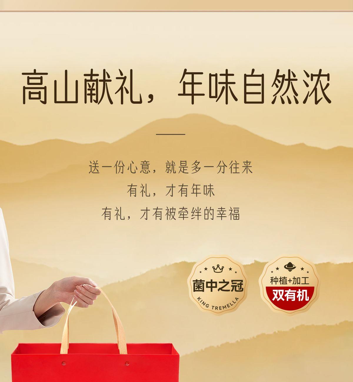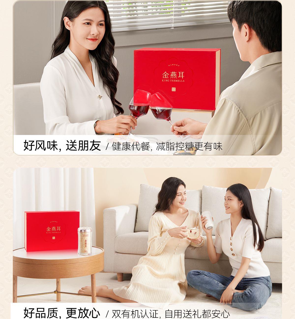 内含:纯萃80g*1、红枣片40g*1、枸杞60g*1、小金勺*1、焖烧杯*1、手提袋*1 净含量:180g 礼盒尺寸:32.5*23*11cm 保质期:12个月 推荐理由: 精选三分之一的优质耳瓣,13朵鲜银耳=一罐80克银耳干品 营养价值含量高,20+种营养成分,胶养活性高分子含量为84%-93%,是普通银耳的3-4倍 免洗免泡发,煮10分钟、焖20分钟即食 胶质浓稠,口感爽滑,鲜香软糯 红色礼盒,轻奢美观,年节拜访礼赠佳品