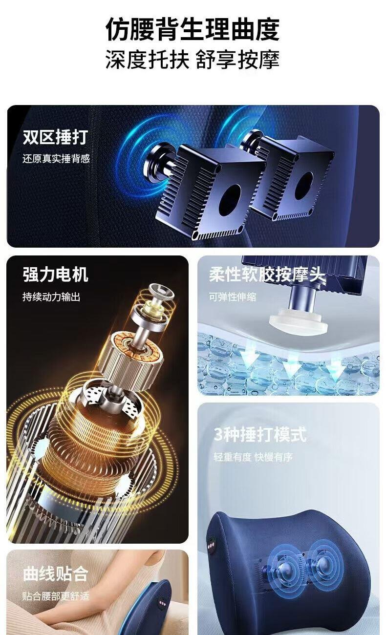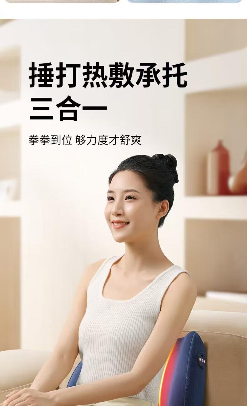 1. 捶打+热敷+承托三合一,舒缓腰背不适:集三大核心功能于一体,不仅有拳拳到位的强劲捶打,更搭配40-50℃两档热敷,按摩与热敷双重享受;同时深研人体工学,贴合腰椎科学弧度与腰背生理曲度,深度托扶脊椎,告别久坐悬空压力,从放松到护脊全兼顾,酸痛快速消散。
