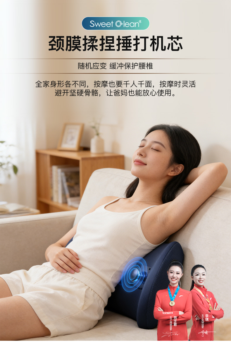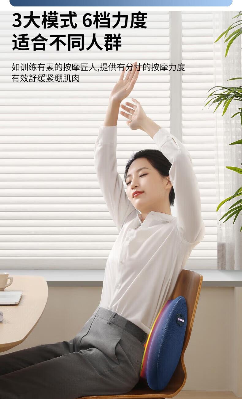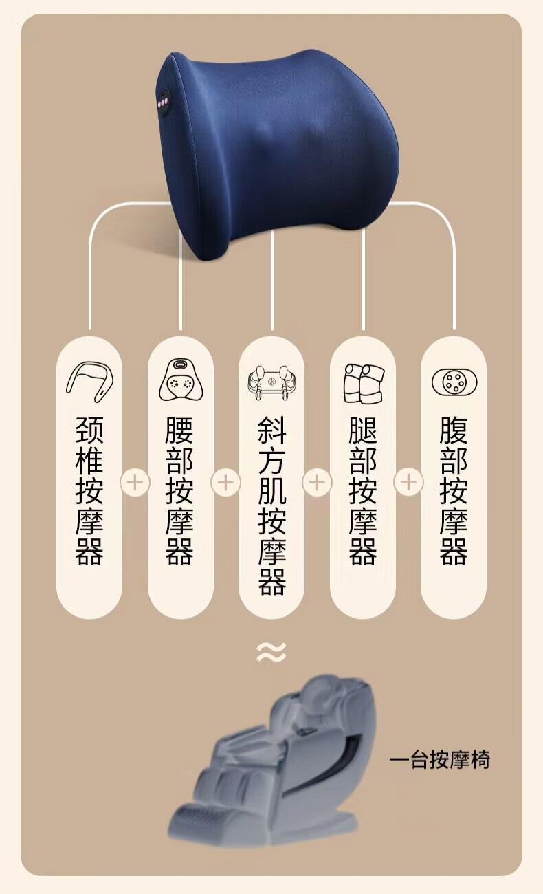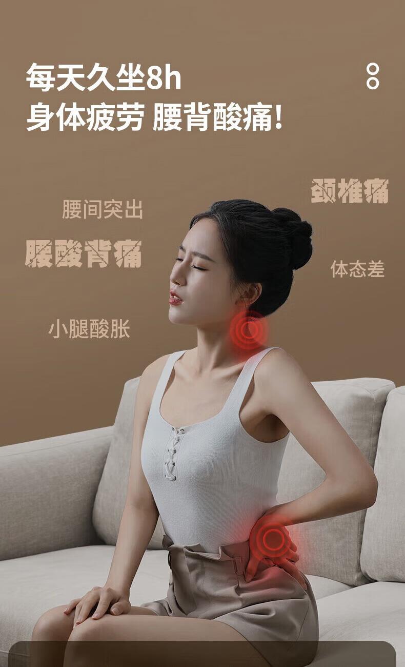 4. 一机多用,从头到脚全释压:打破场景与部位限制,不仅能按摩腰背,还可适配肩颈、腰腹、大腿、小腿等多个部位,居家沙发、办公室工位、汽车座椅等场景都能轻松安放,随地享受放松。