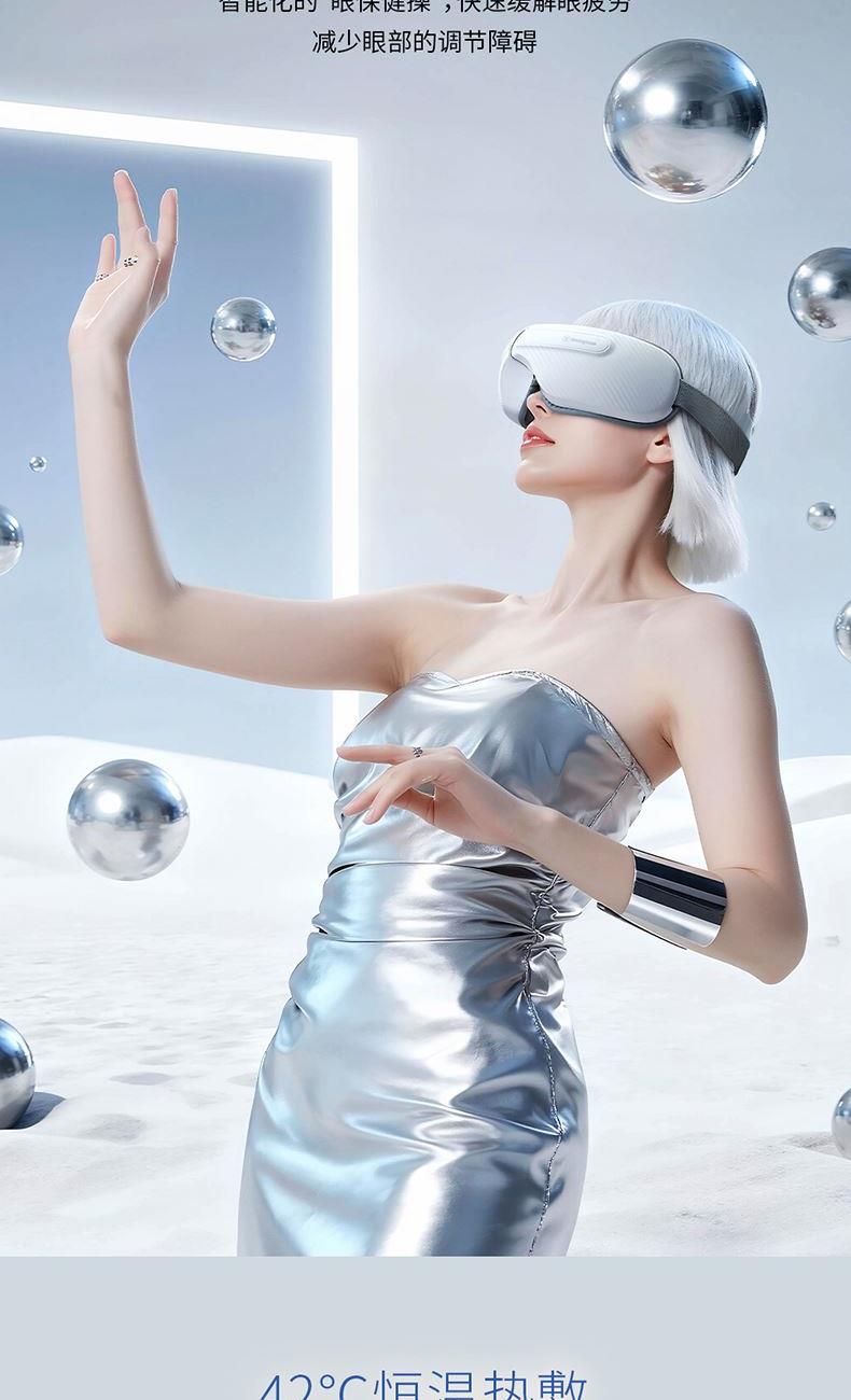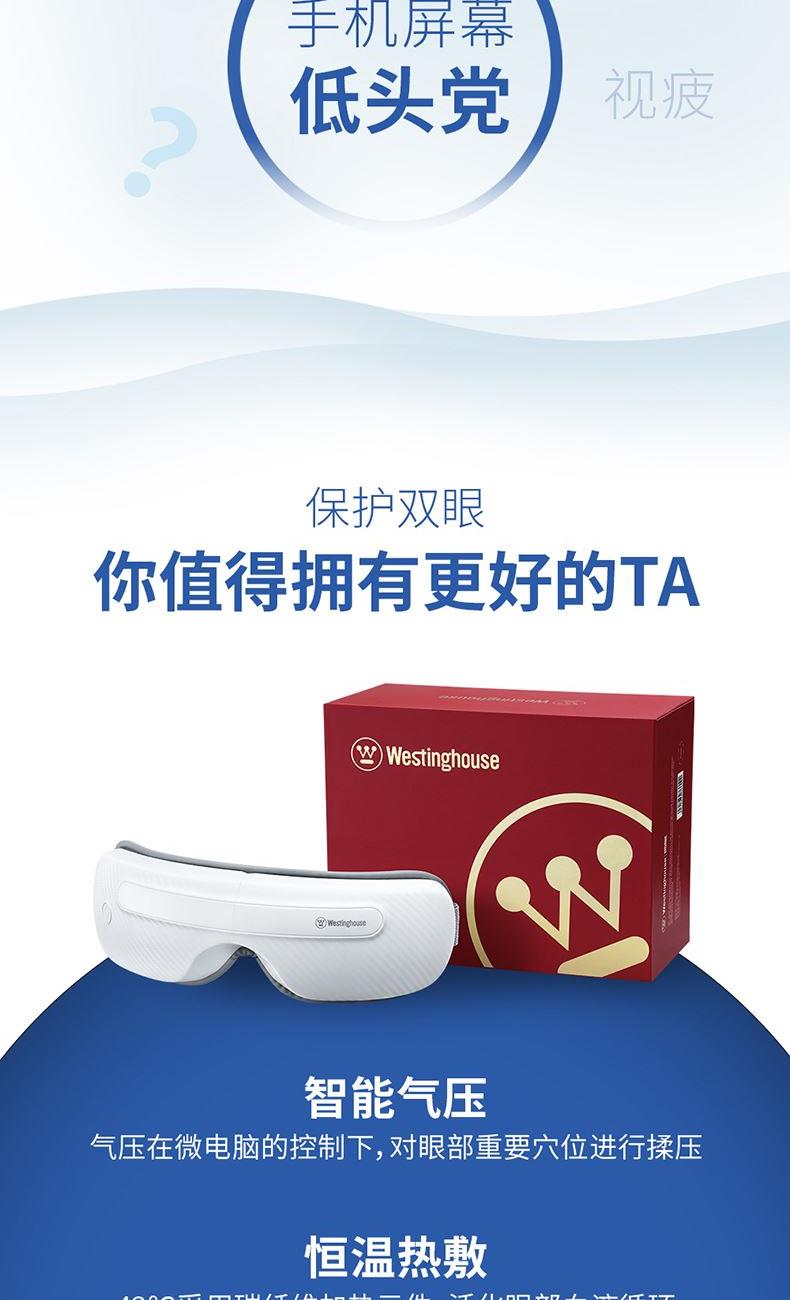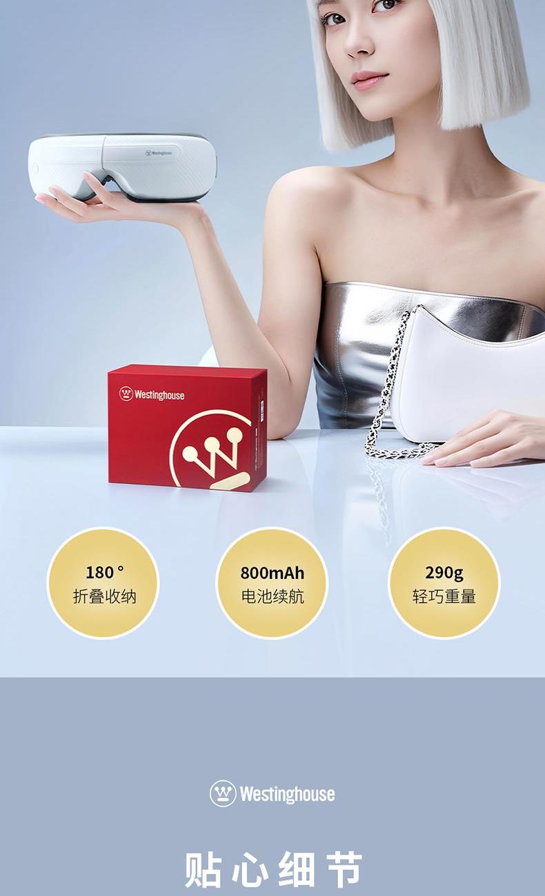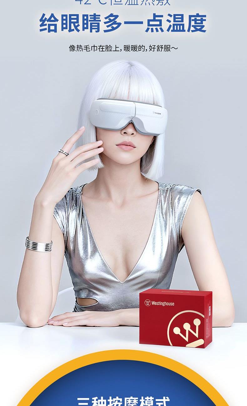 产品规格: 1、额定电压:3.7V 2、额定功率:4.5W 3、电池容量:800mAh 4、外壳材质:ABS 5、眼罩材质:PU皮 6、工作时长:10min 7、产品颜色:白色 产品特点: 1、可180°折叠,方便携带; 2、激光精雕碳纤维纹理工艺,凸显与众不同; 3、智能气压,疏通眼部神经系统,缓解疲劳; 4、42±3℃恒温热敷,活化眼部血液循环,缓解干涩; 5、内置舒缓减压音乐,按摩同时放松身心; 6、三档工作模式,多场合可用。