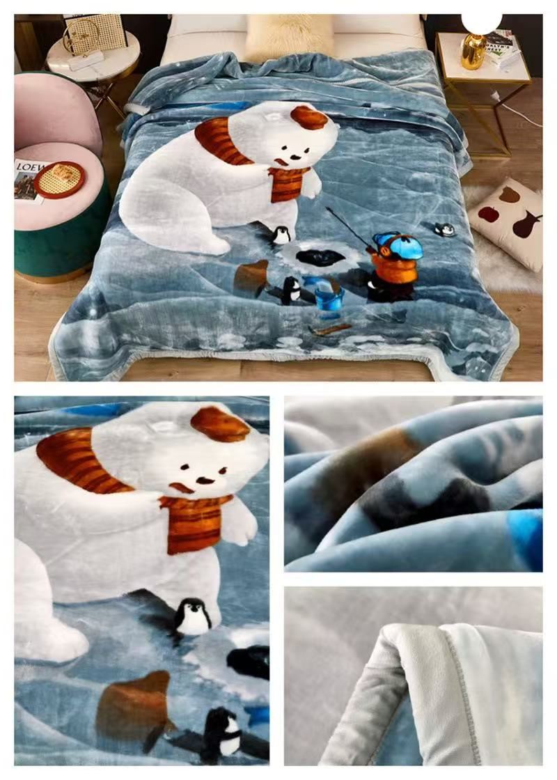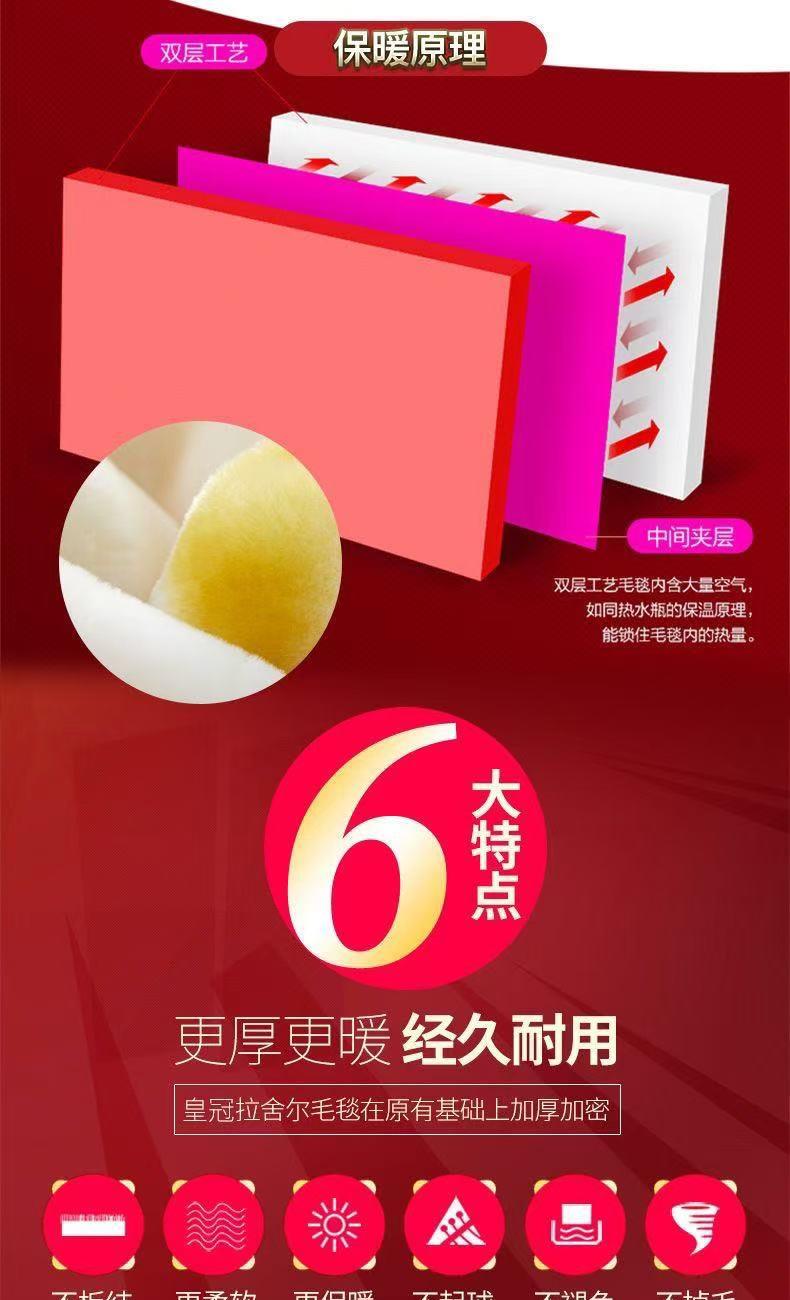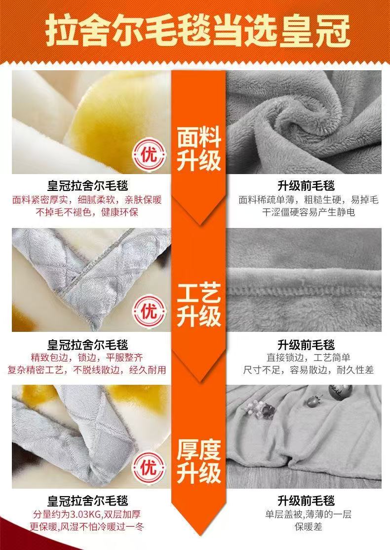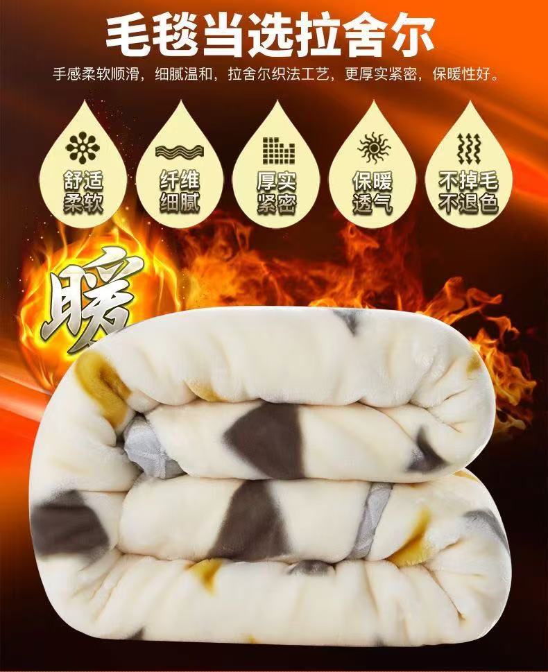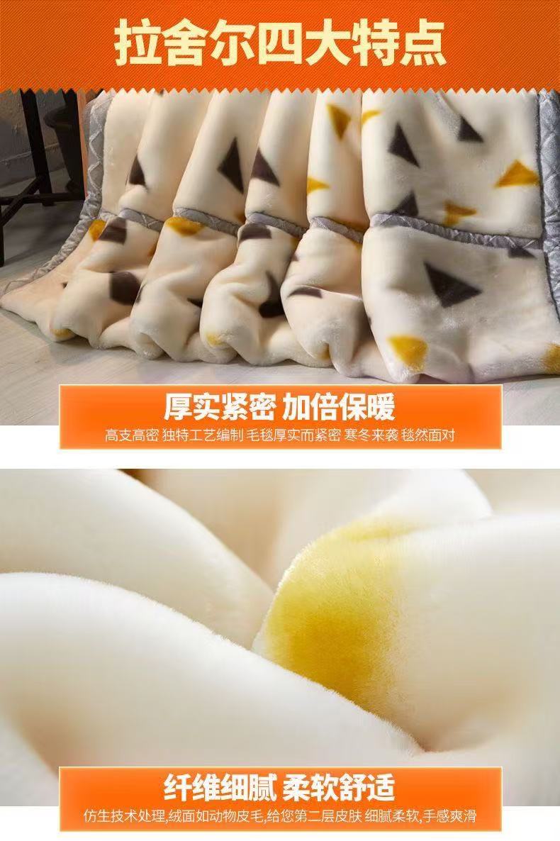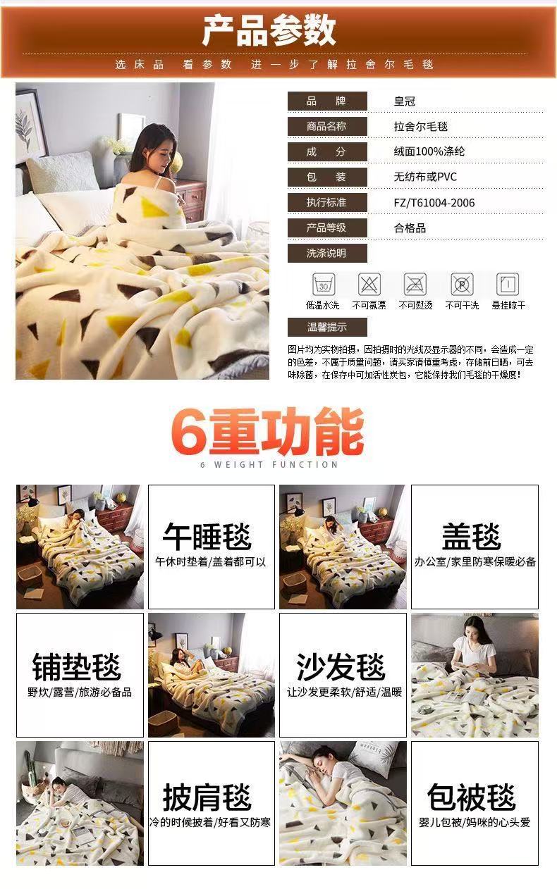 1:拉舍尔面料锁温蓄热更保暖 密度更高 2:甄选拉舍尔面料,绒毛柔暖舒适比普通绒面料更厚实,更保暖绒毛密度更强,升温更迅速 尺寸:150x200cm约4斤 包装:彩盒
