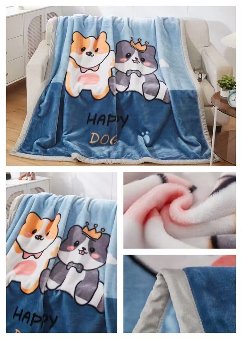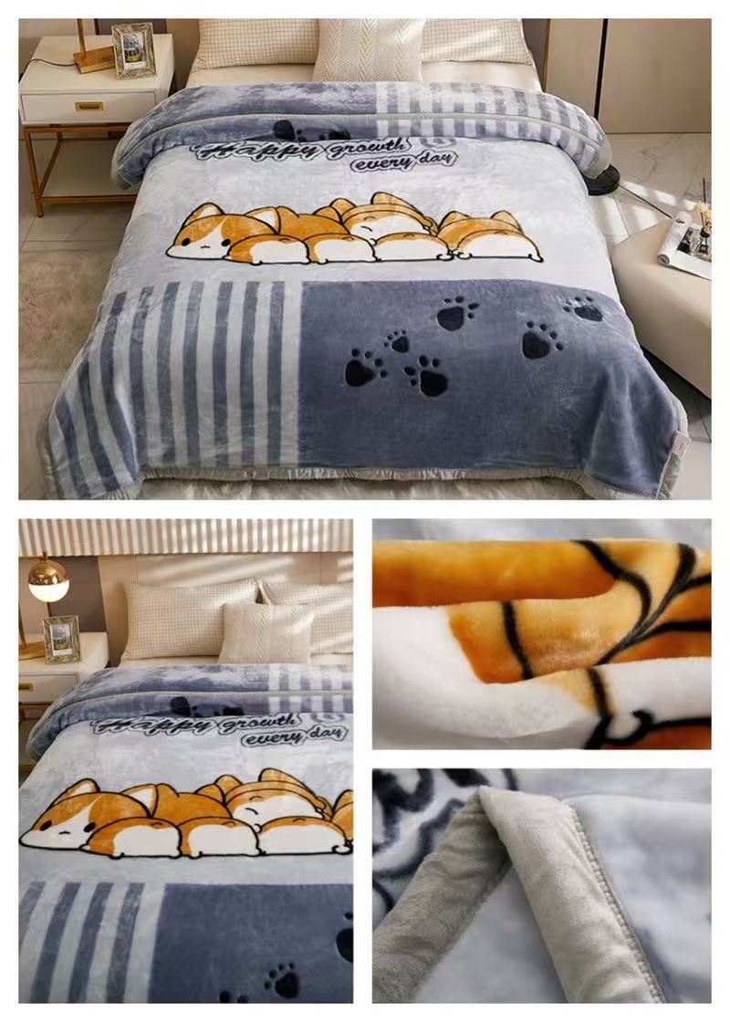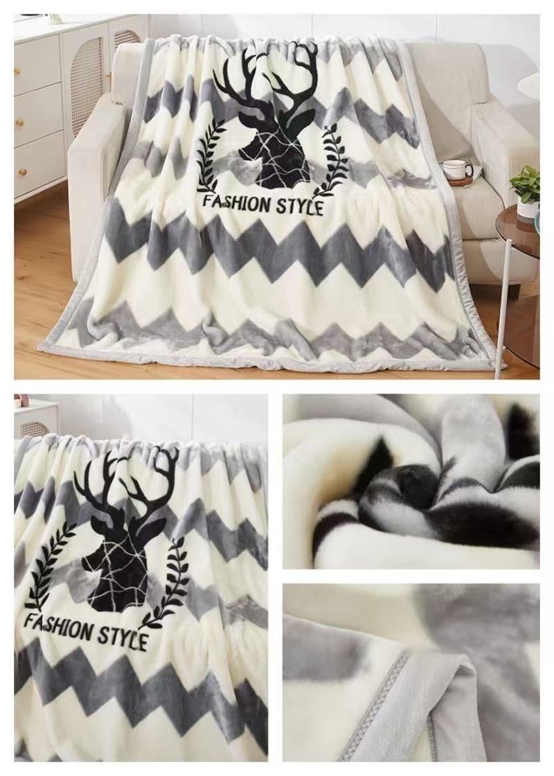 花花公子-家纺-新款拉舍尔毛毯毯子双层加厚毛毯午休休闲毯