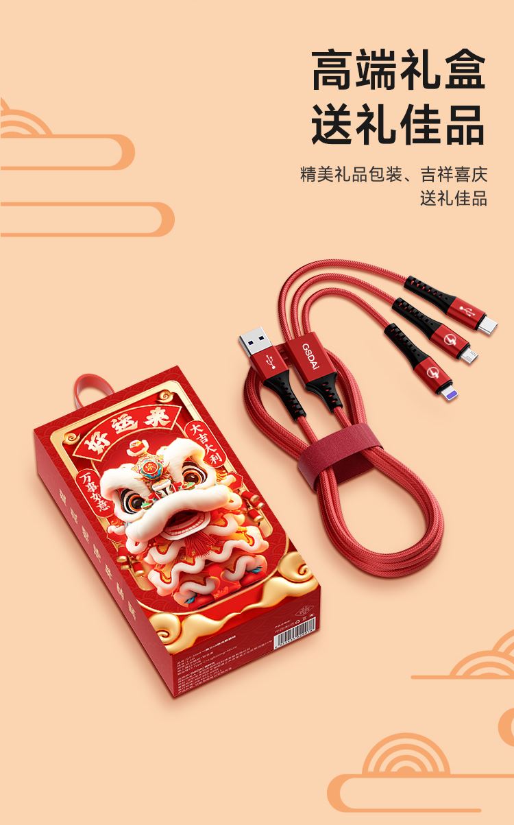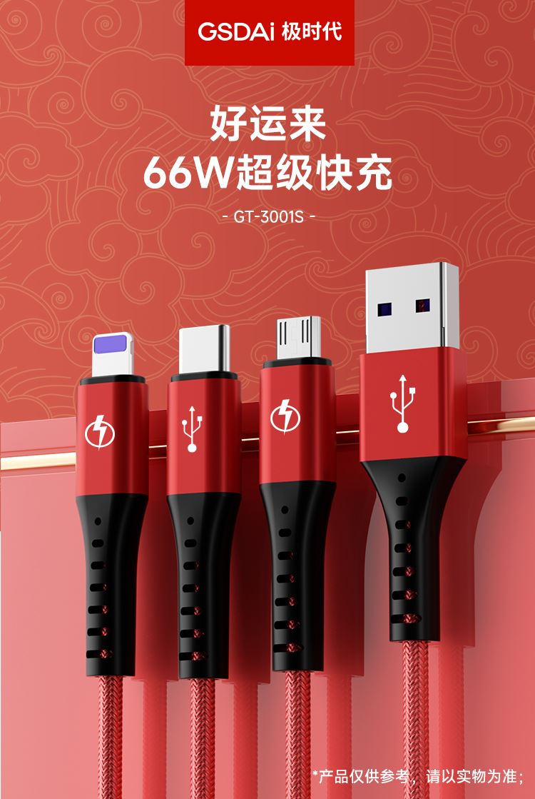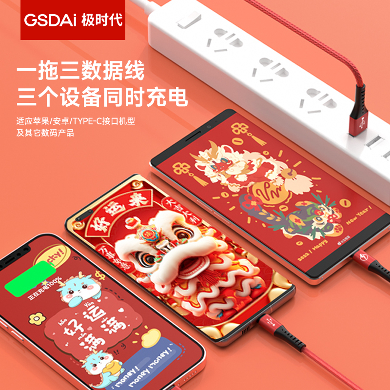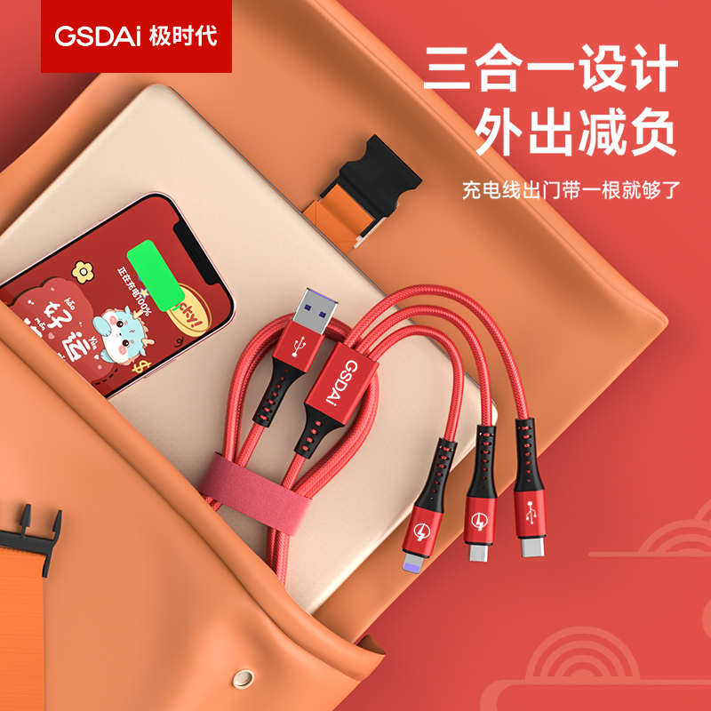 极时代6A超级快充三合一数据线GT-3001S