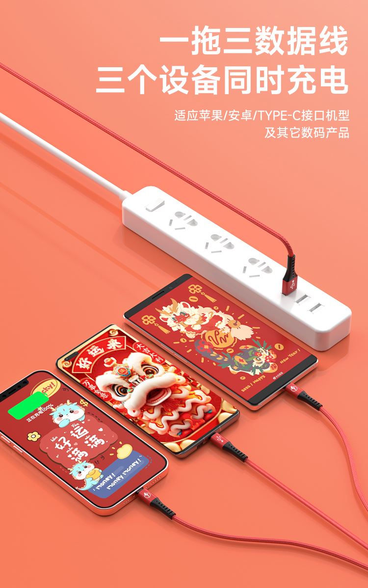 6:一线替代Type-C+苹 果+Micro+三线,释放拥挤、桌面空间,一线搞定三部手机