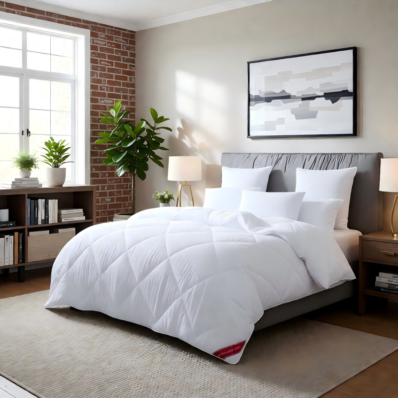 面 料:全涤磨毛 尺 寸:200×230cm 填充物 : 51%澳毛+49%聚酯纤维 填充克重:800g 填充:羊毛本身具有良好的吸、放湿性。羊毛工艺与纤维均匀混纺,平整且蓬松,无异味。 面料:手感细腻,亲肤柔软,舒适贴合; 工艺:蓬松回弹、厚实保暖;细致包边,固定被芯。