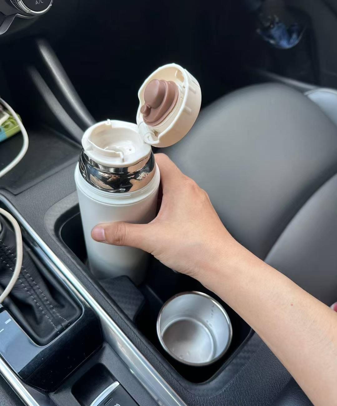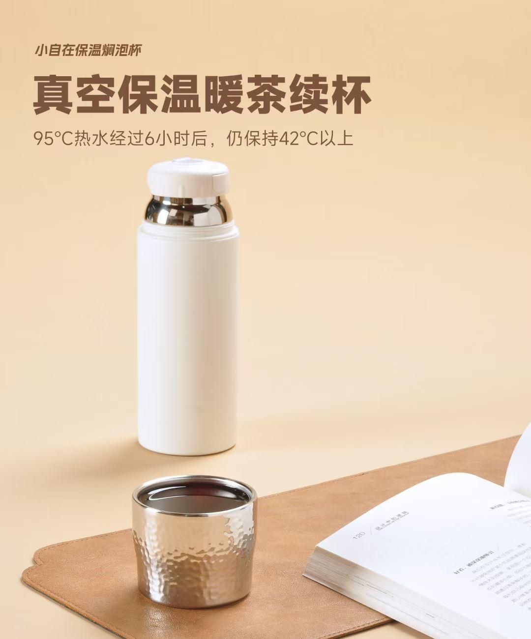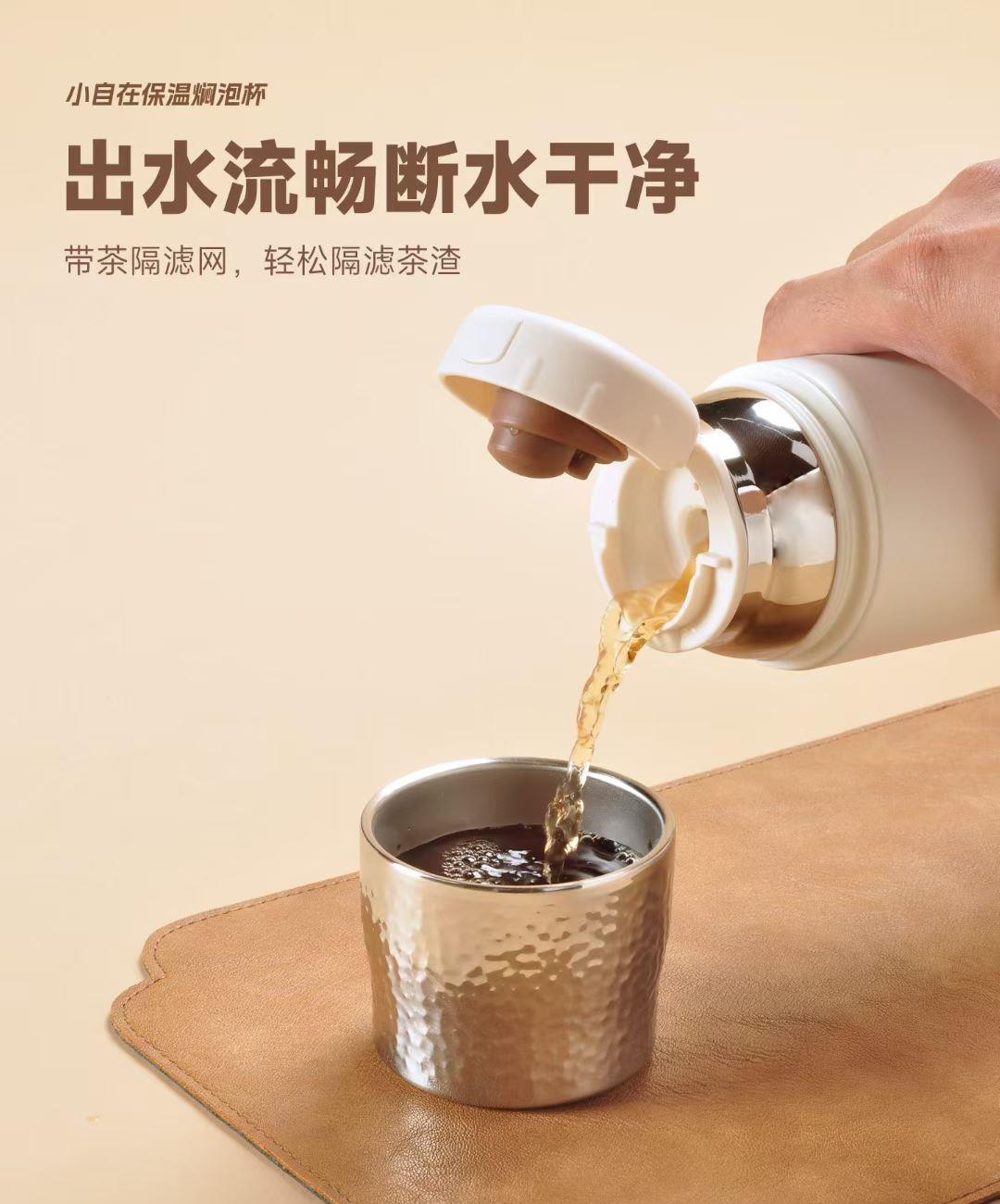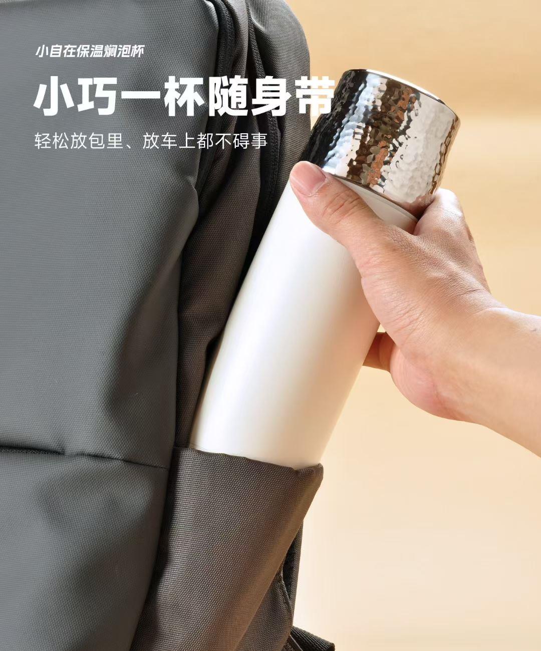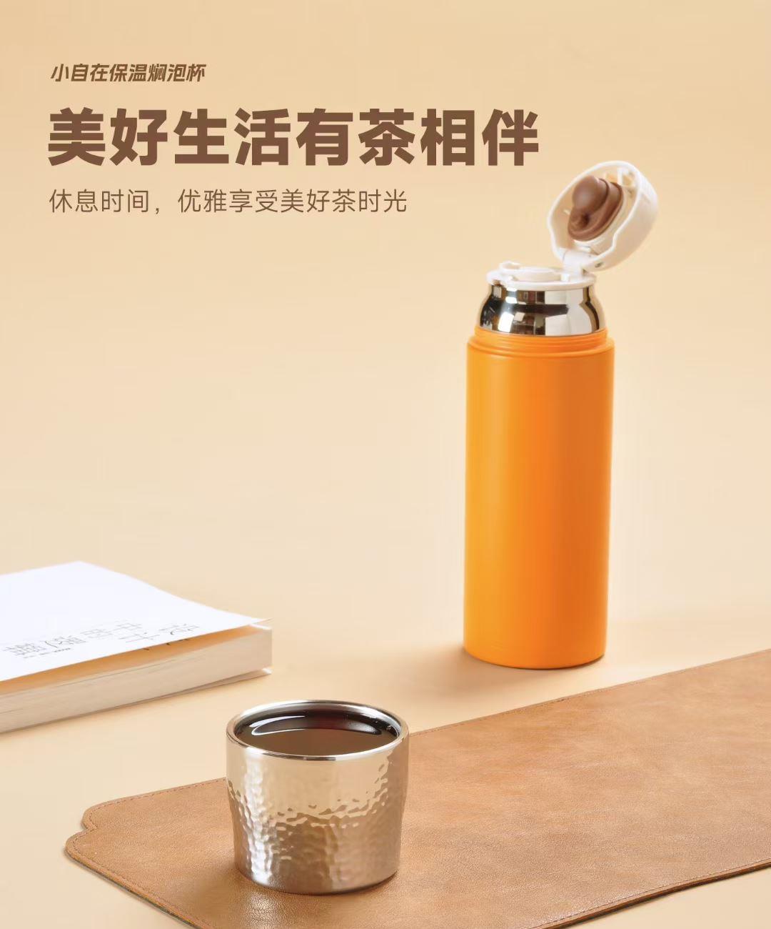 316不锈钢,保鲜易清洗; 茶隔分离茶叶,优雅品茗; 双层防烫全钢锤纹盖,一盖两用; 一键开启内塞,单手可操作; 参数(材质): 内 胆 :奥氏体型不锈钢 (SUS316) 外 壳 :奥氏体型不锈钢06Cr19Ni10(SUS304) 塑料件:聚丙烯(PP) 密封件:硅橡胶 颜色:淡橘橙、宣纸白 尺寸:68x68x205mm 容量:420ml 净重:290g 外箱 : 455*385*250cm 毛重:12Kg