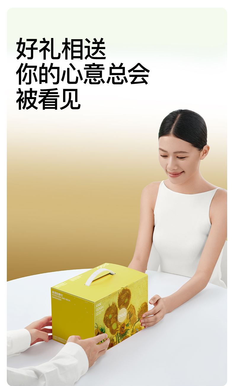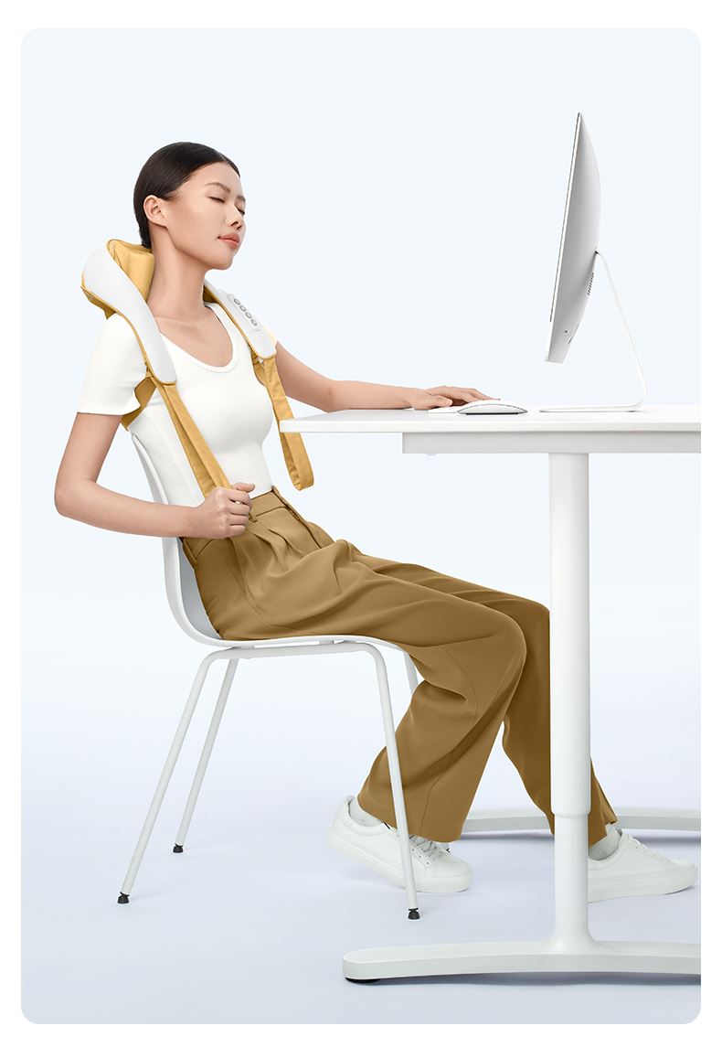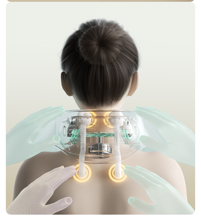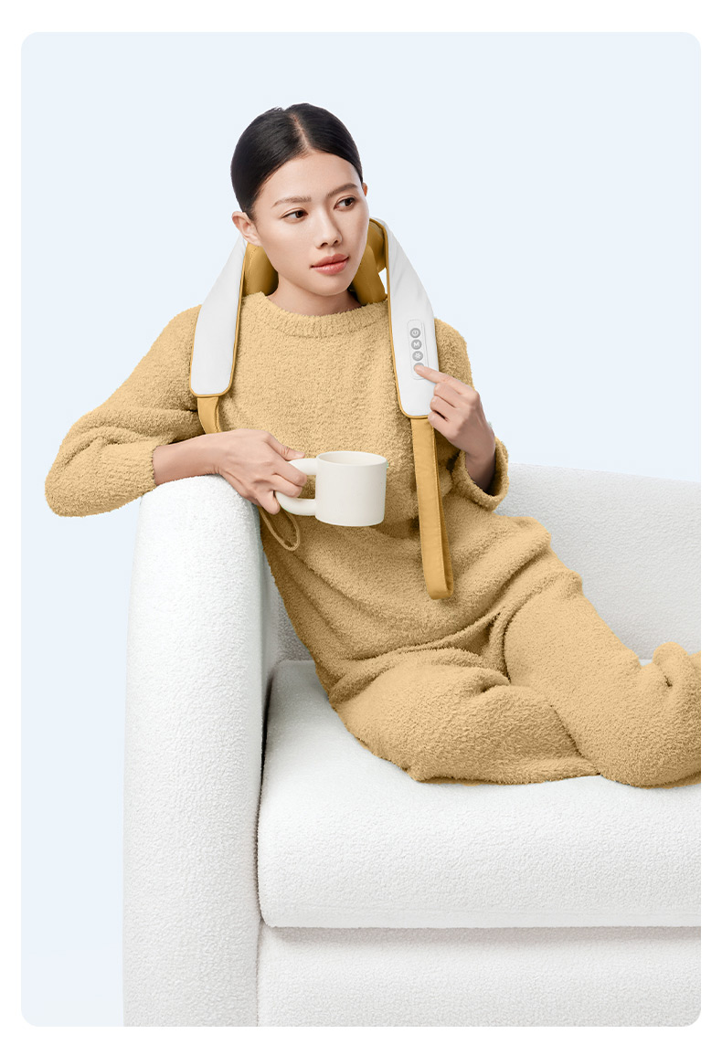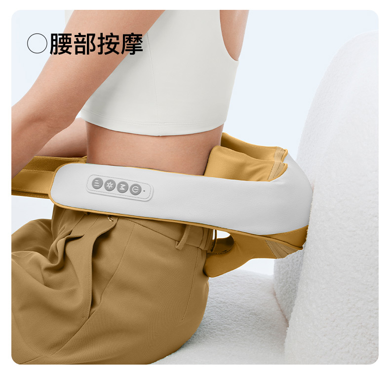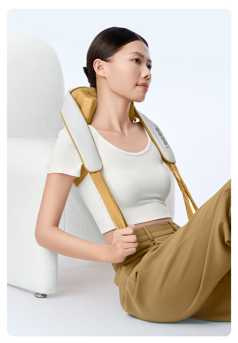 ●6维按摩,全肩颈的放松,加长按摩头,6维多触点按摩,实现从颈部到斜 方肌、再到肩膀 的全覆盖。 ●仿虎口开合抓揉,深度放松酸胀肌肉,通过精密的转轴和4+2排列的按摩头,模拟人手虎 口八字开合按摩,一抓一揉,还原老师傅按揉 真实体感。4臂6爪 机械手臂,大力 拉伸舒爽 有劲 微型机械手施力,根据3维坐标运动轨迹,大力拉伸肌肉,卸下肩颈压力。 ●软触按摩头, 指腹按揉新体感 微型机械手施力,根据3维坐标运动轨迹,大力 拉伸肌肉,卸下肩颈压力。 ●动态纤维发热, 暖透易疲肌肉群 通过科学排列组合,研发的波浪式动态发热技术,在快 速发热的同时,让热感随着按摩深入 肌肉筋膜层。