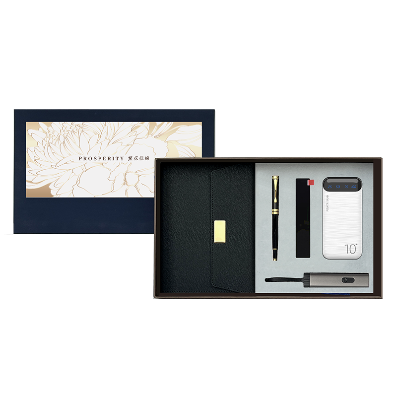 ❶ 笔记本 ❷ 签字笔 尺寸:13.5*1cm ❸ 三合一数据线尺寸:27*2cm ❹ 移动电源 10000毫安 ❺ 金属书签 尺寸:15*2.5 cm ❻ 手提袋 尺寸: 37*30*11cm