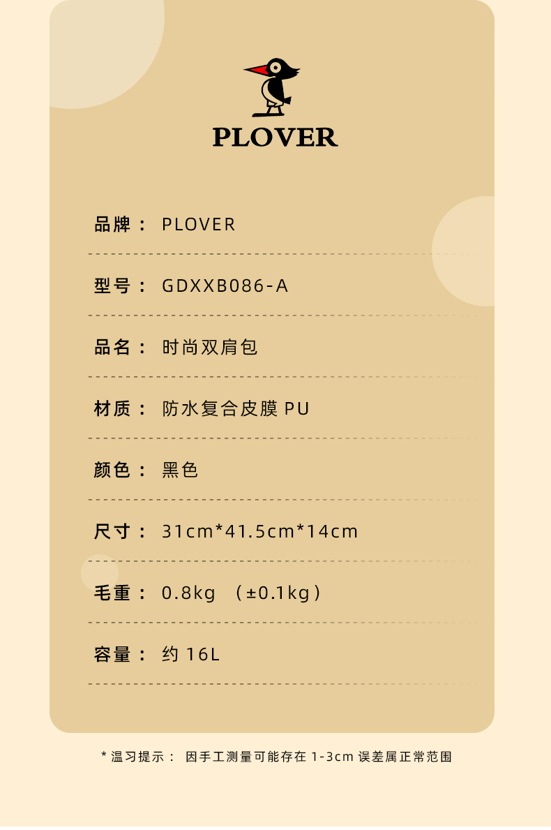 PLOVER香港啄木鸟时尚双肩包GDXXB086-A