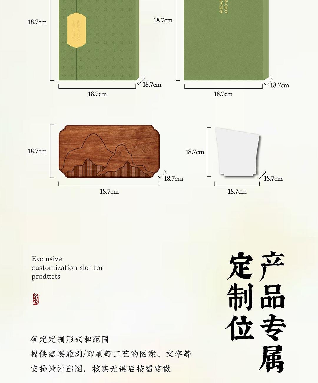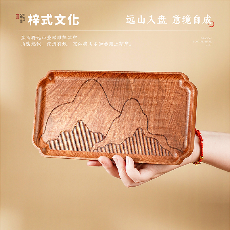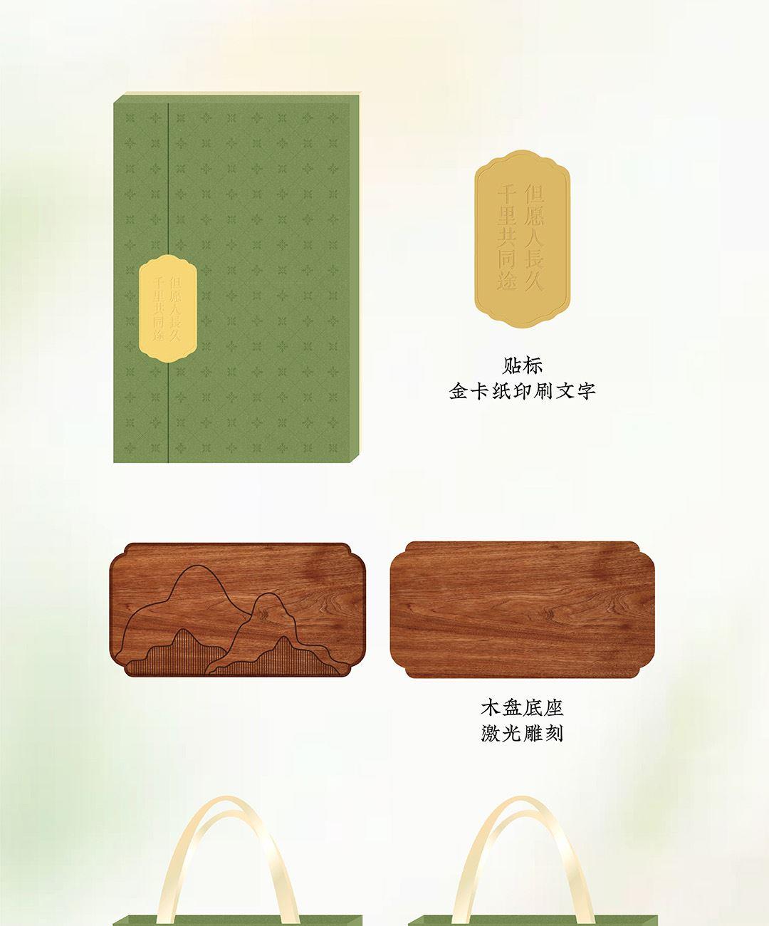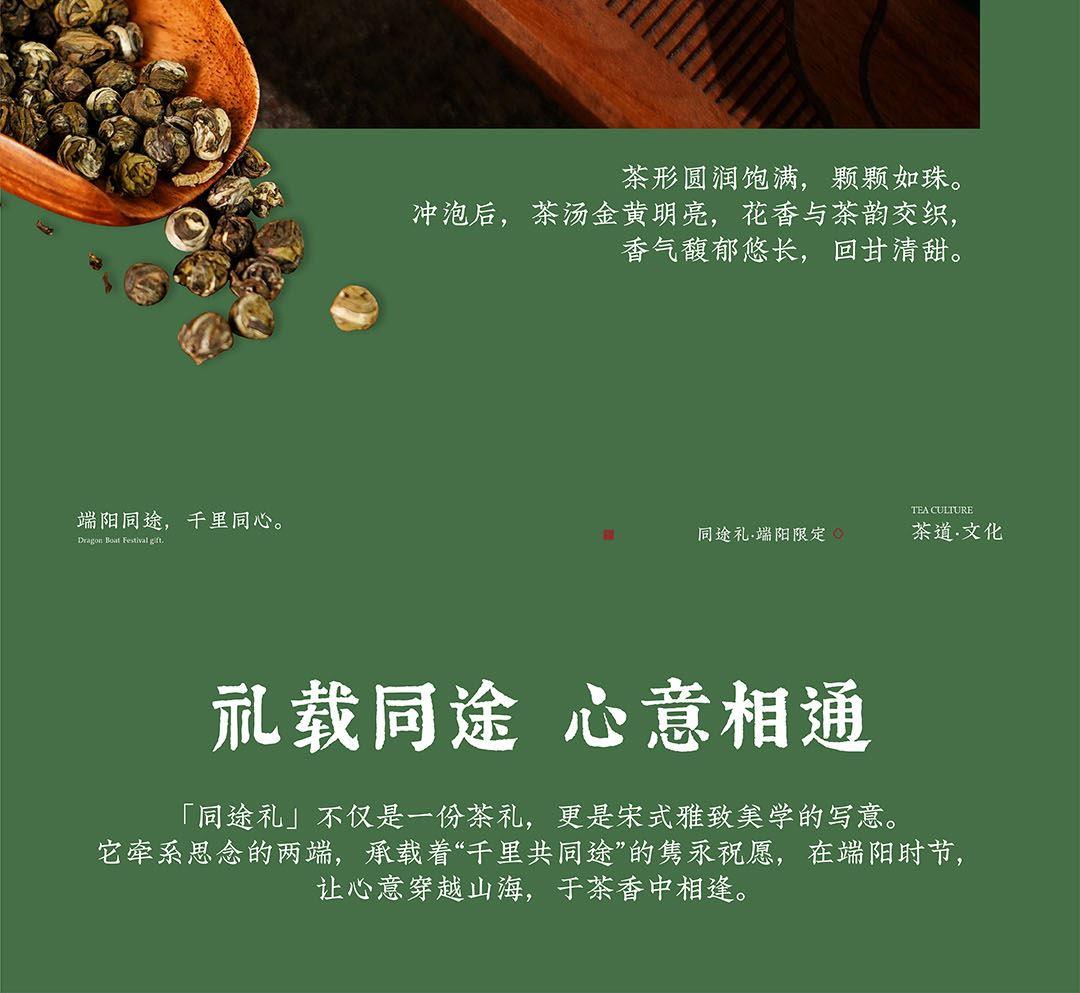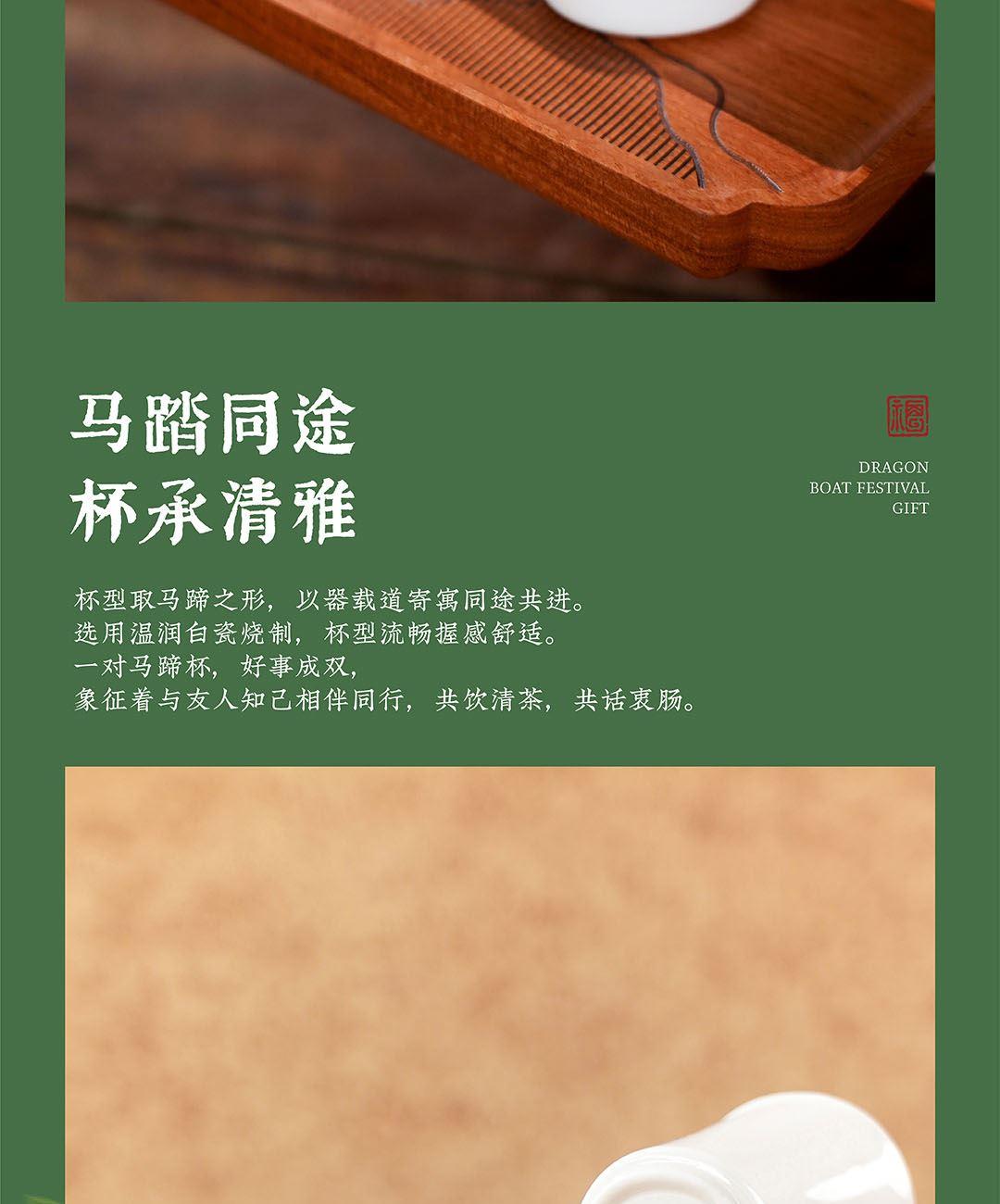 以“同途”呼应“共同途”,灵感源自宋式美学的深远意境。远山凝作盘,马蹄化为杯,将山水之情、同行之谊凝于方寸器物间。端阳共饮时,见山水映于席,握杯盏于掌心,同途之人,亦是知己。盒面经纬交织的纹理,恰似人海中的牵绊与挂念。这一盒,不止装载佳茗雅器,更承载“千里共同途”的具象祝愿。值此端阳,以一盏清茶敬同途之人,共鉴情谊悠长。