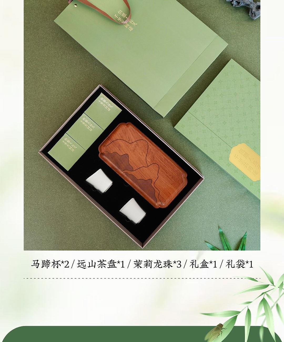 马蹄杯:5.8*6*6.3cm 远山茶盘:25.2*13.3*2.3cm 茉莉龙珠:16g/包