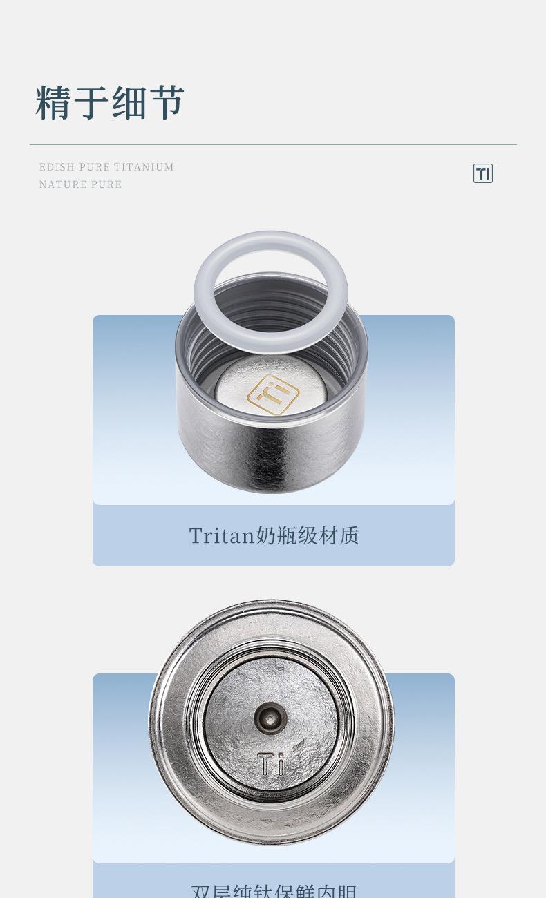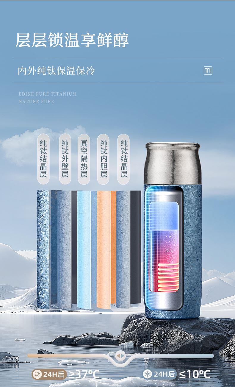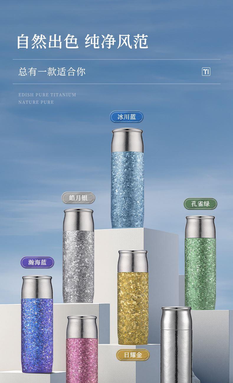 保温杯容量:480ml 材质:内外全钛 颜色: 蓝、银、粉、绿 、深蓝 品质:精品杯 •选用航天材质纯钛,高温轰烤结精工艺,无尾真空技术处理。 •杯口圆润光滑,精工细作,食品级PP塑料盖安全无异味。 •高温结精工艺,无任何漆面 ,雾面质感思腻尔温润。,保新功能 •未成年人请在大人指导下或告知后使用。