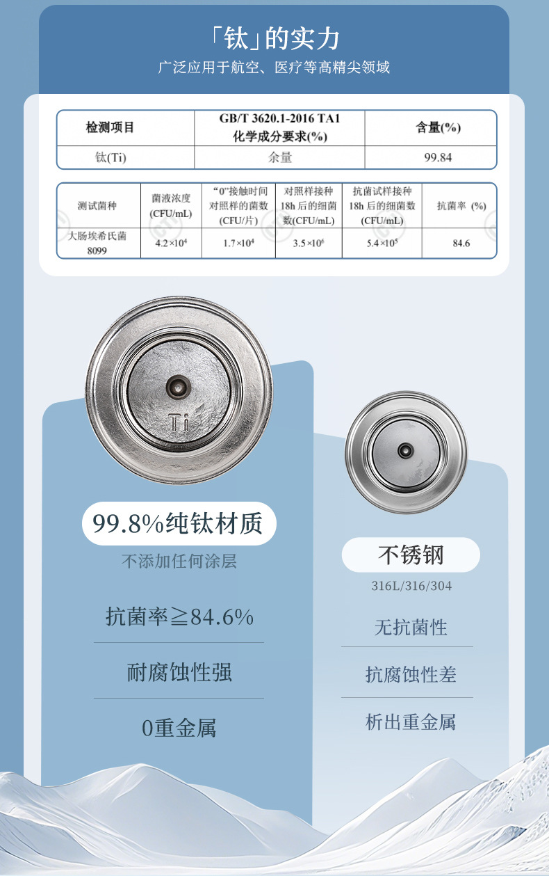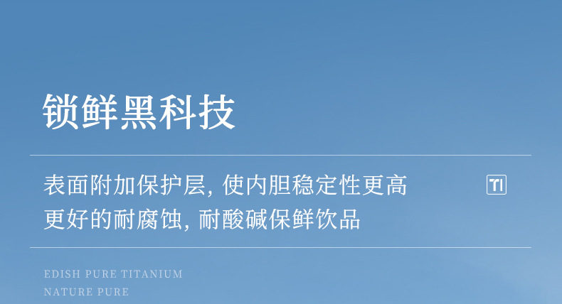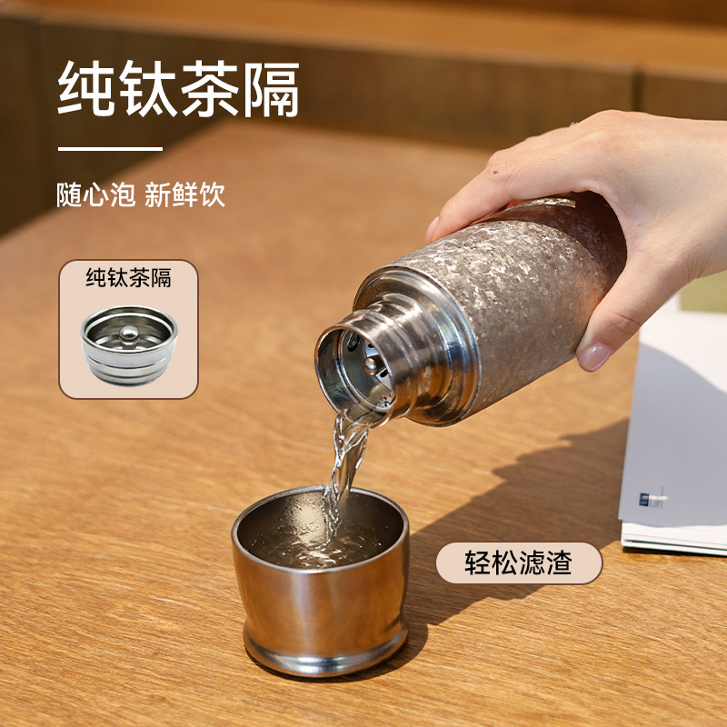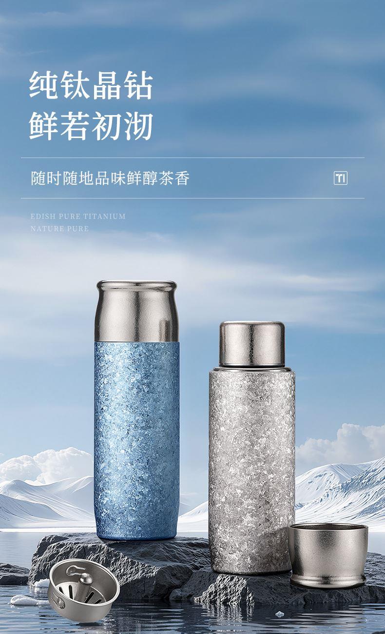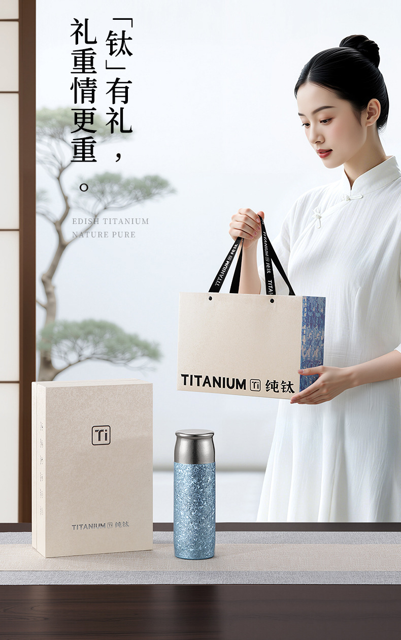 保温杯容量:480ml 材质:内外全钛 颜色: 蓝、银、粉、绿 、深蓝 品质:精品杯 •选用航天材质纯钛,高温轰烤结精工艺,无尾真空技术处理。 •杯口圆润光滑,精工细作,食品级PP塑料盖安全无异味。 •高温结精工艺,无任何漆面 ,雾面质感思腻尔温润。,保新功能 •未成年人请在大人指导下或告知后使用。