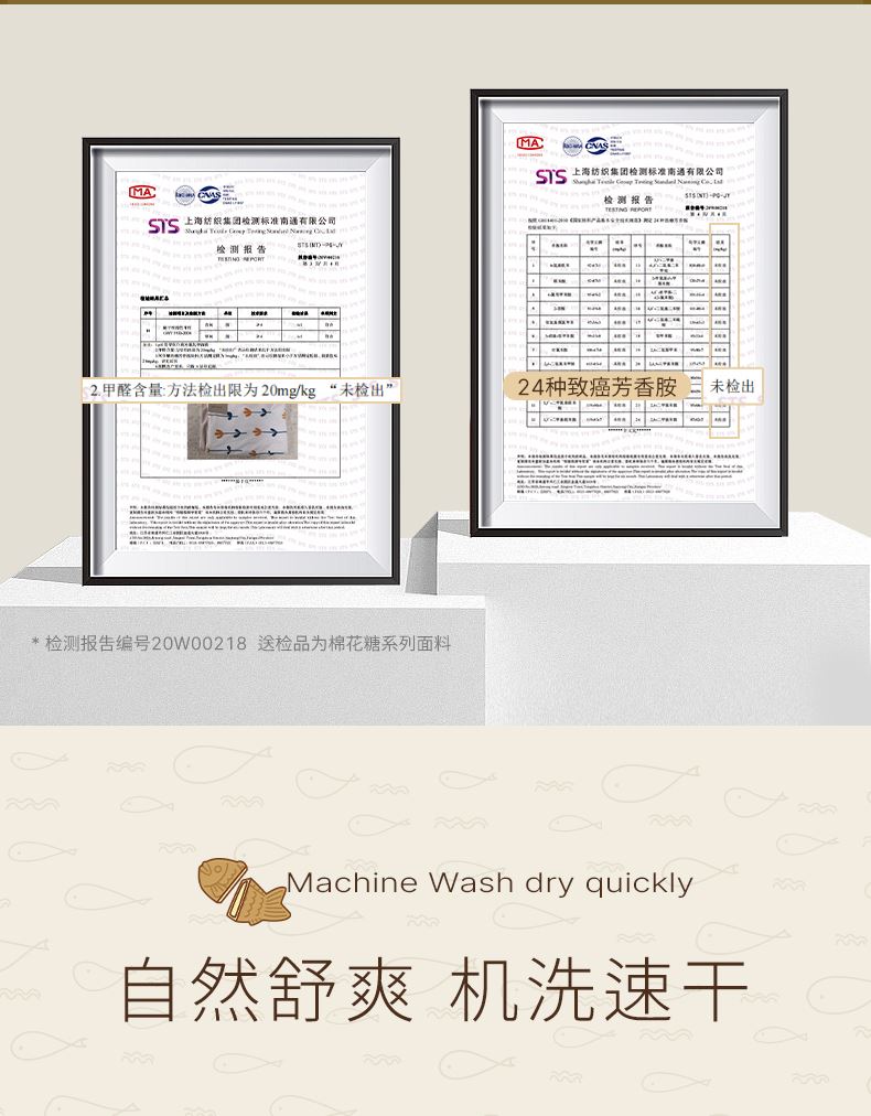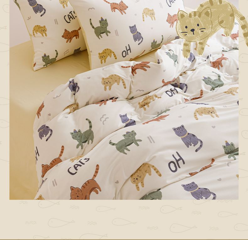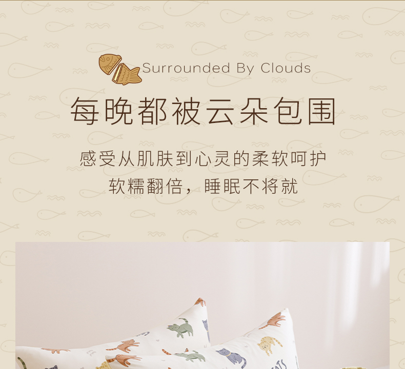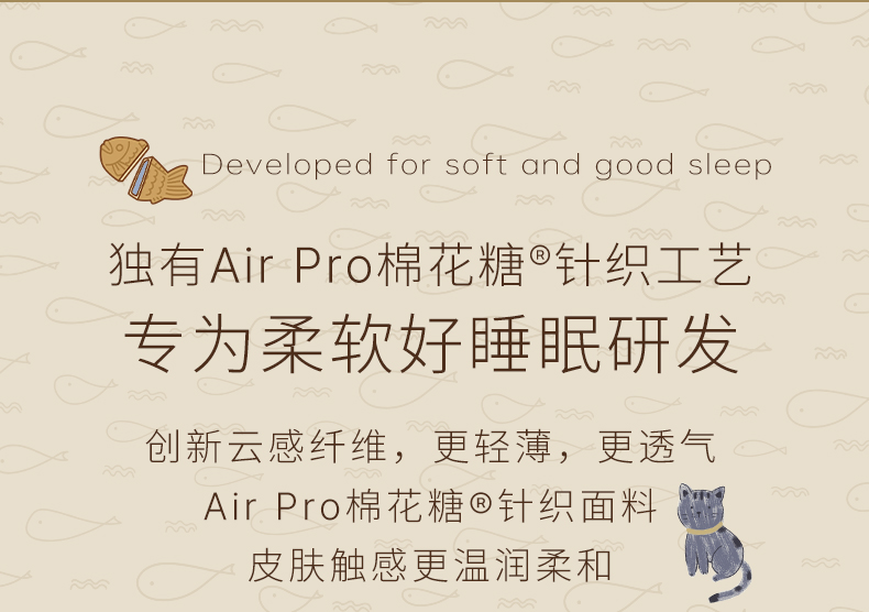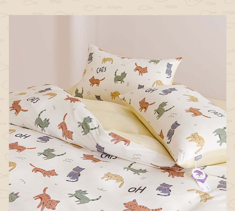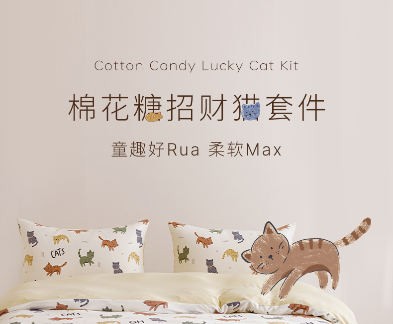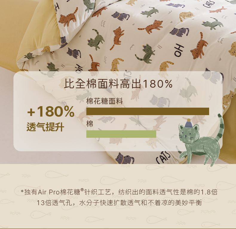 面料:枕套/被套95%聚酯纤维(云倍尔科技纤维)+5%氨纶 床单全棉 四件套 被套:200*230±5cm 枕套:48*74cm*2 床单:240*250±5cm 软,特别软,就是软FUFU~开启云感睡眠新享受,给足睡 眠安全感。面料采用艾美家云感纺纱科技针织织造; ·A类婴儿级,0甲醛,0致癌芳香胺,0荧光剂,适合全家人 睡眠使用。宝宝用好,你用也好; ·简约艺术设计,适应人群及家居氛围广。