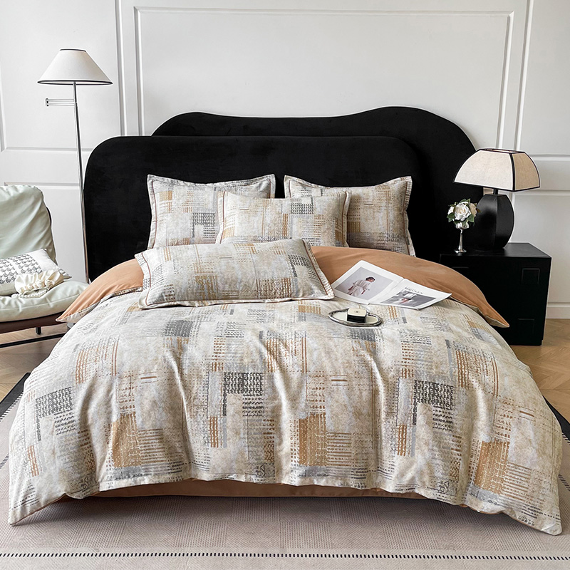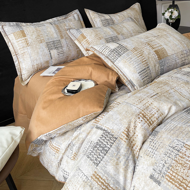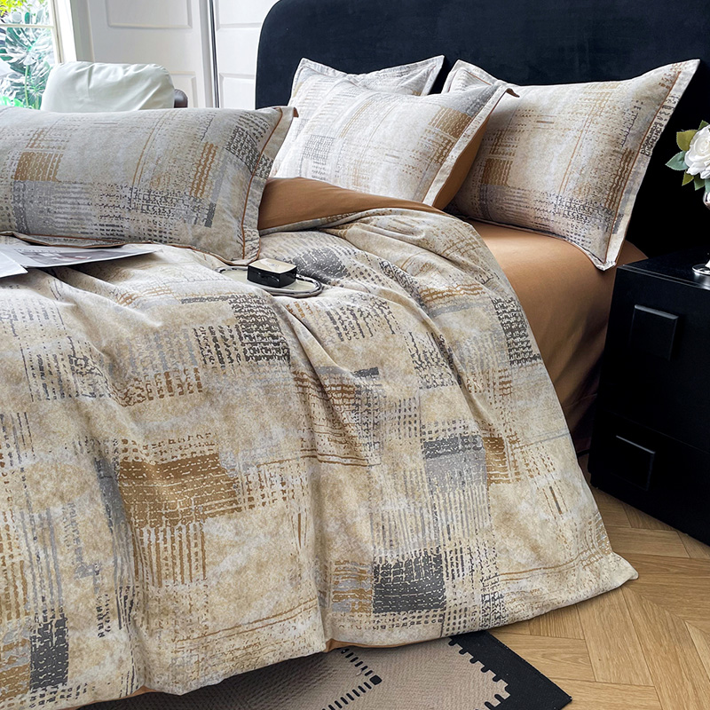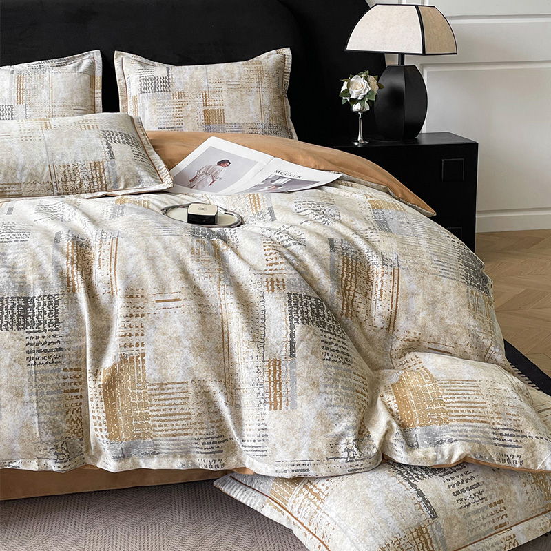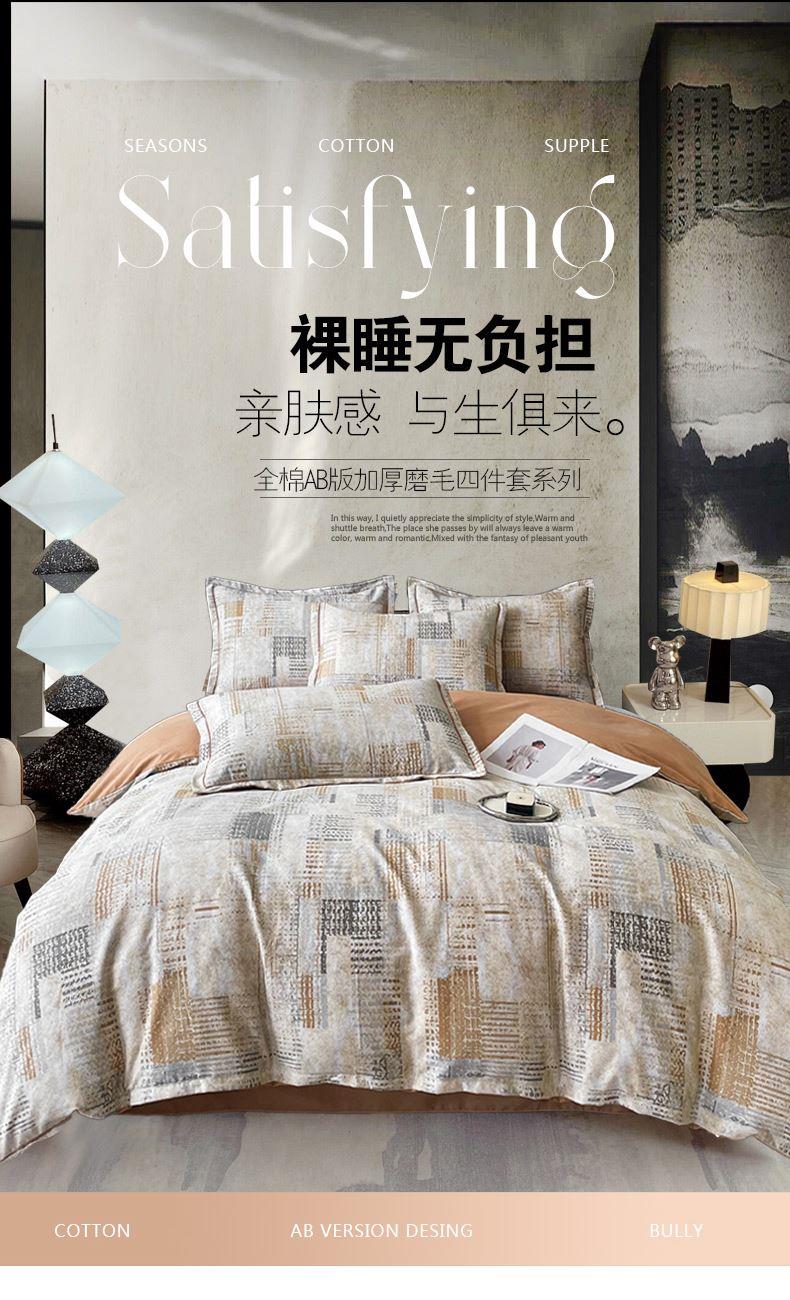 <赫兰希>加厚全棉磨毛四件套-渐变卡其