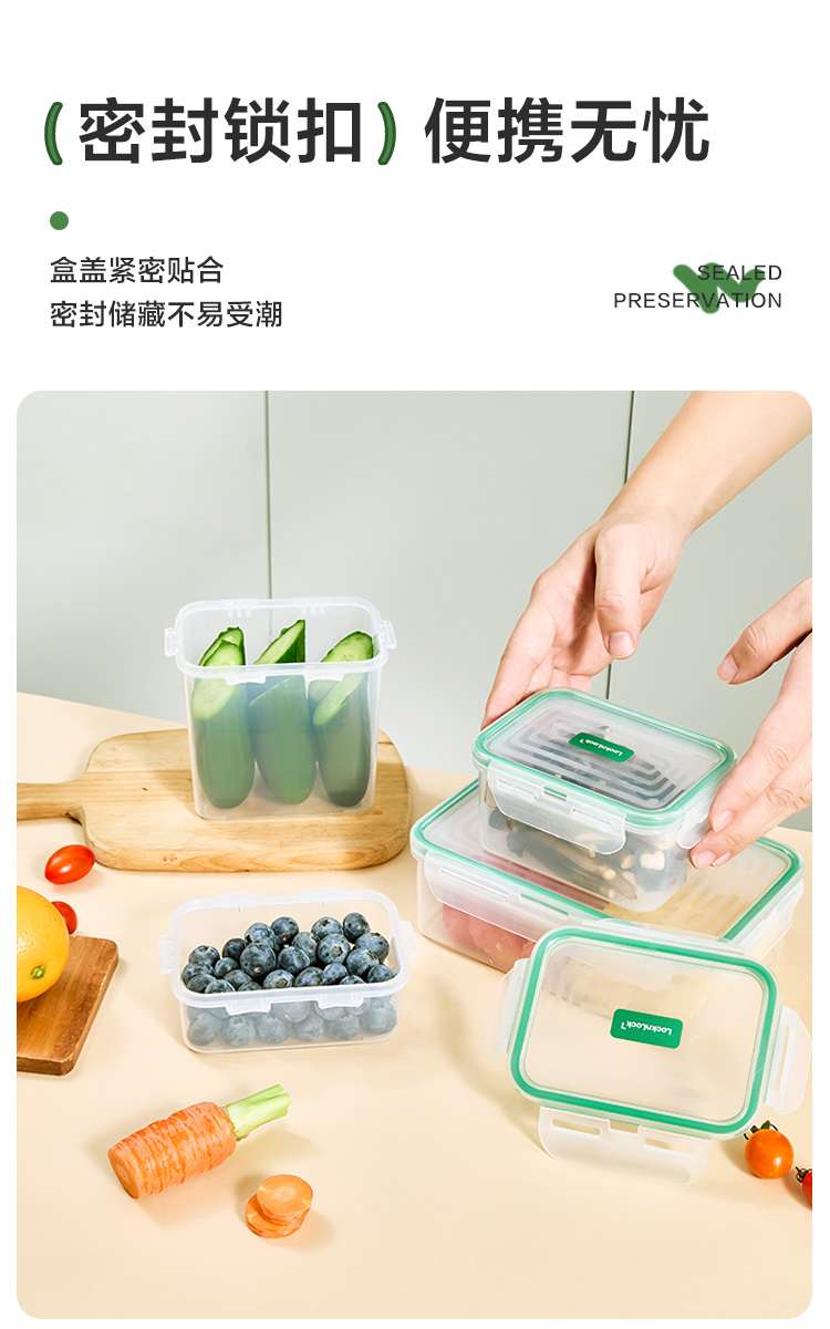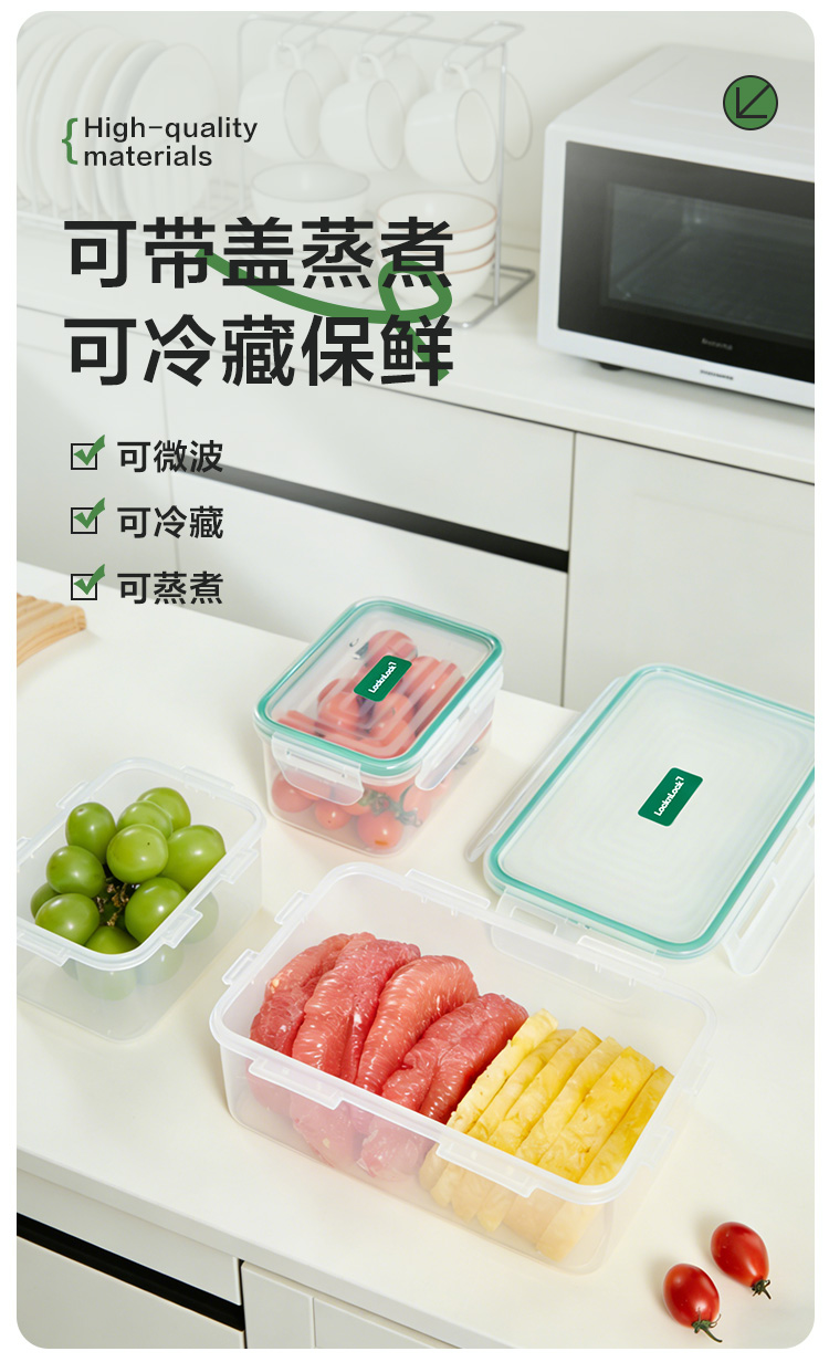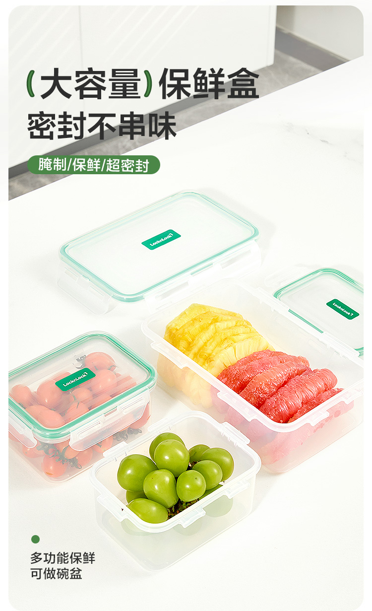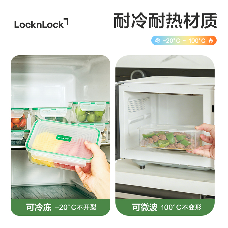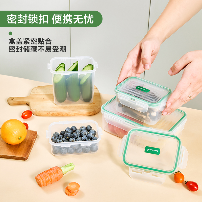 乐扣乐扣保鲜盒3件套 (460ml,135*105*70mm)*2 (1080ml,210*135*70mm)*1 耐热100℃高温,安心健康PP材质。 适用于微波炉、烤箱、冰箱、洗碗机 弯曲扣盖,经久耐用 长久保鲜,四面锁扣,密封性好,有效防止水分流失 健康材质,盒盖采用聚丙烯PP制造,呵护健康,放心使用 硅胶树脂一体式密封圈,保鲜性好