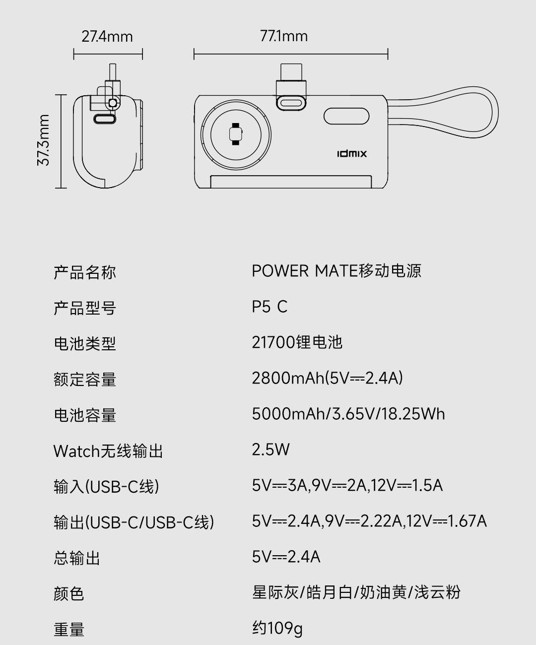 IDMIXMini移动电源P5C