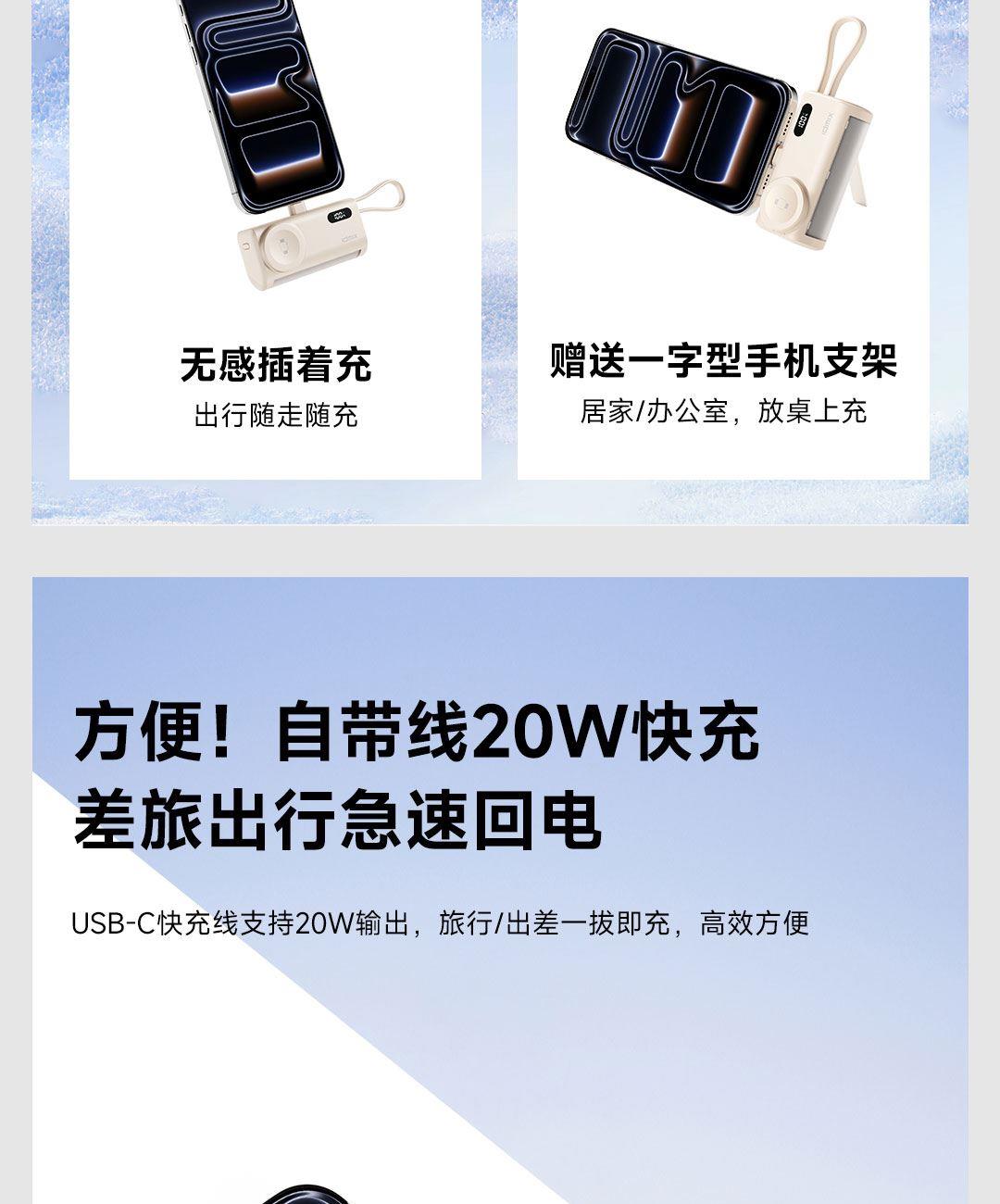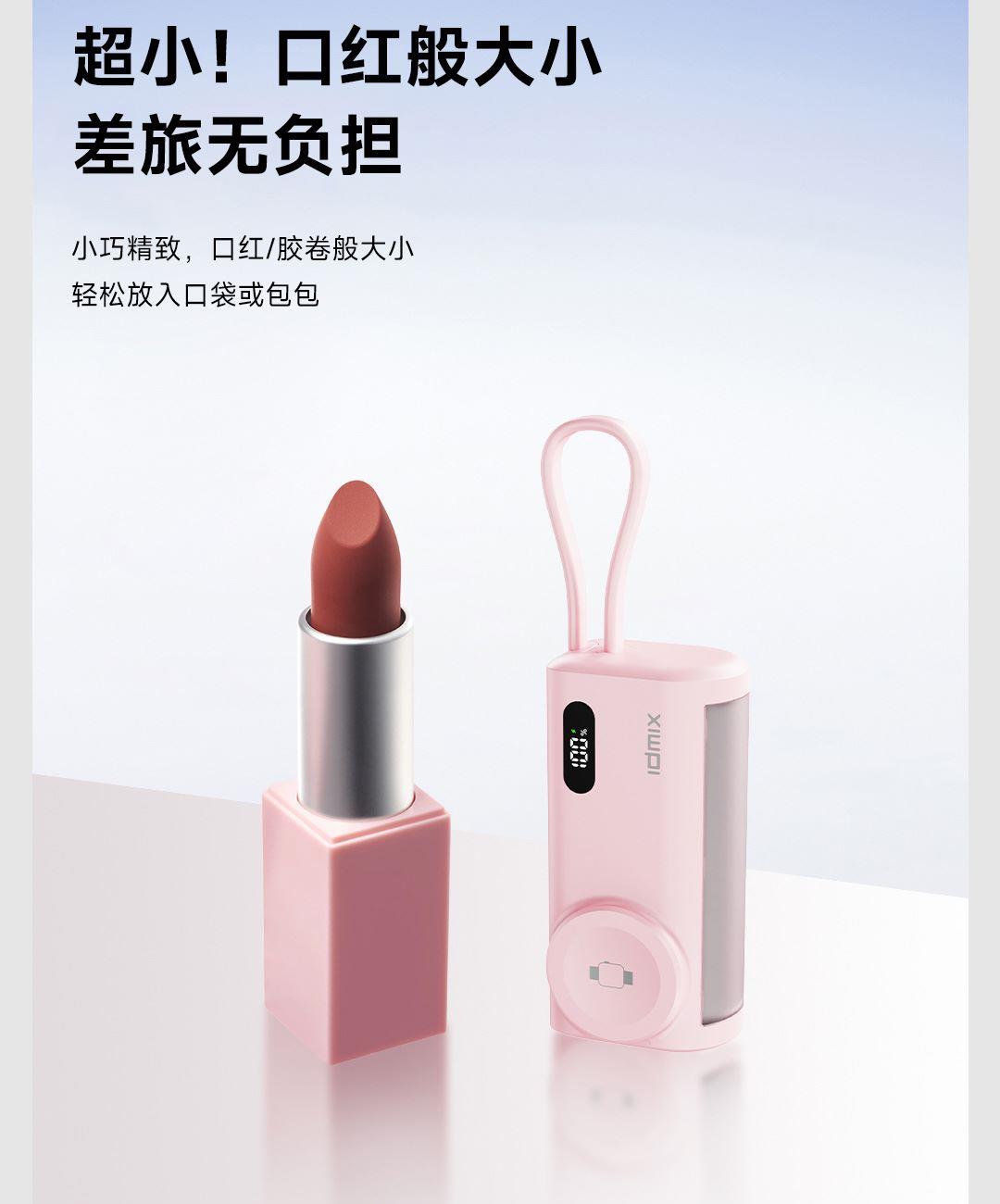 小巧胶囊闪充,口红般大小,又小又轻,轻松装包