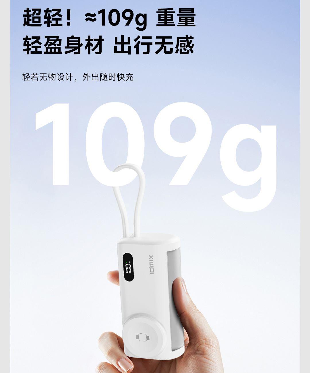 内置5000mAh 高品质电芯,轻薄小巧,人体工学设计,单手持握也轻松