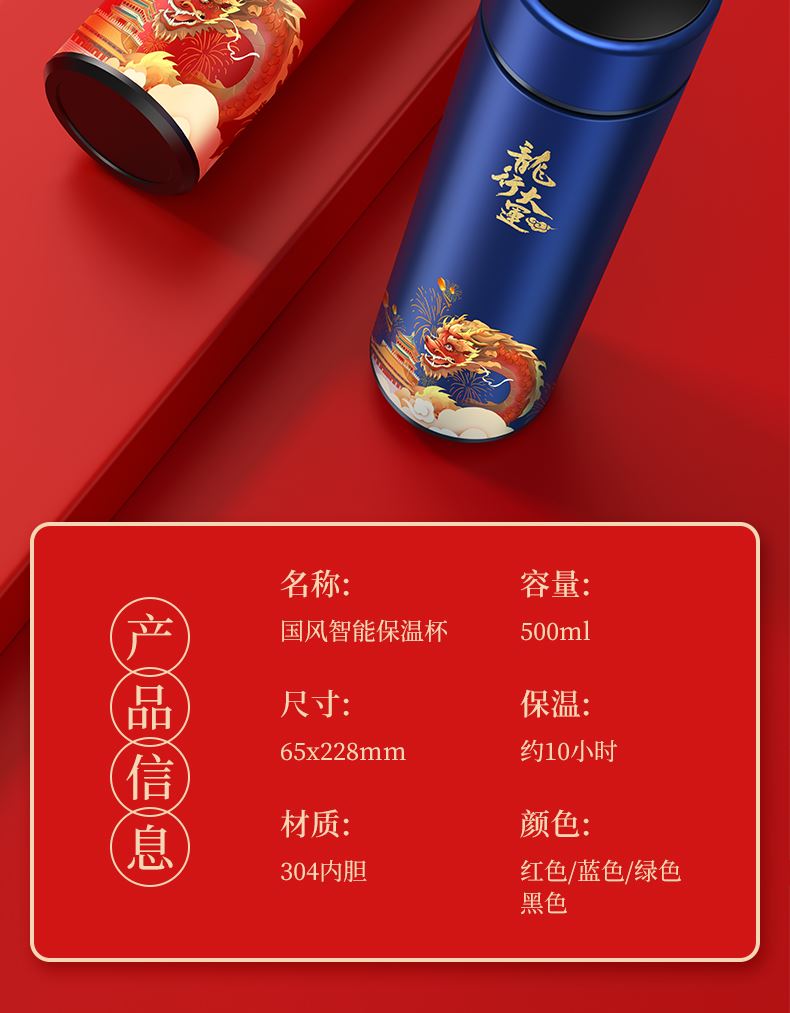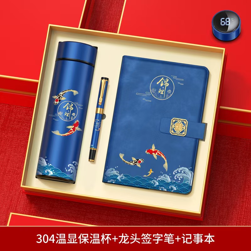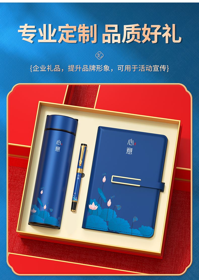 【产品配置】国潮3件套/杯子+本子+笔 【产品型号】tuan-07 【产品颜色】红如意,红蛇年大吉,红万事如意,蓝心意, 蓝锦鲤,黑奋斗,绿未来可期 【包装尺寸】27.5*29.5*8cm