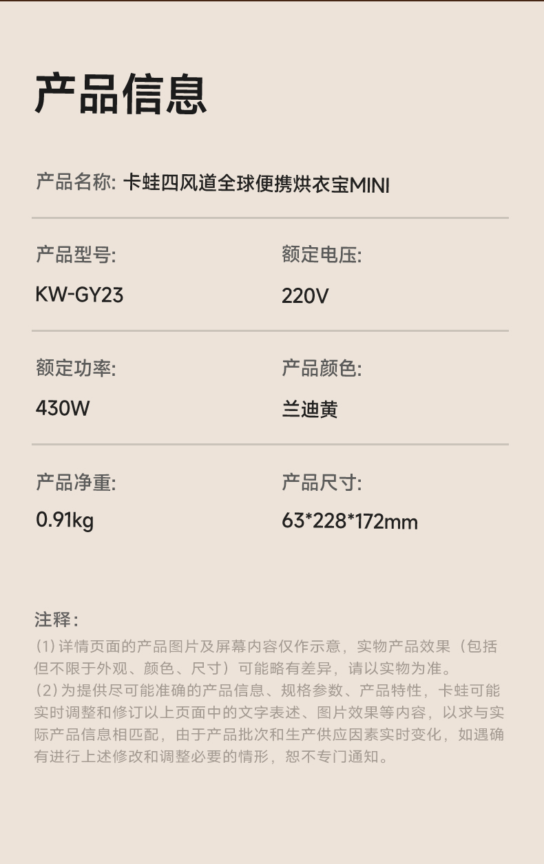 卡蛙便携干衣机MINIKW-GY23