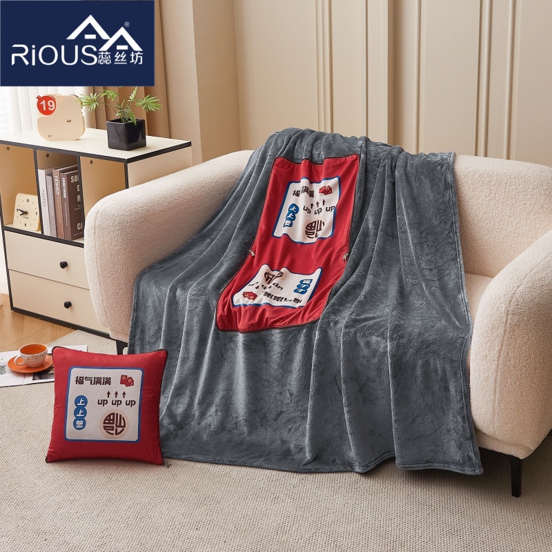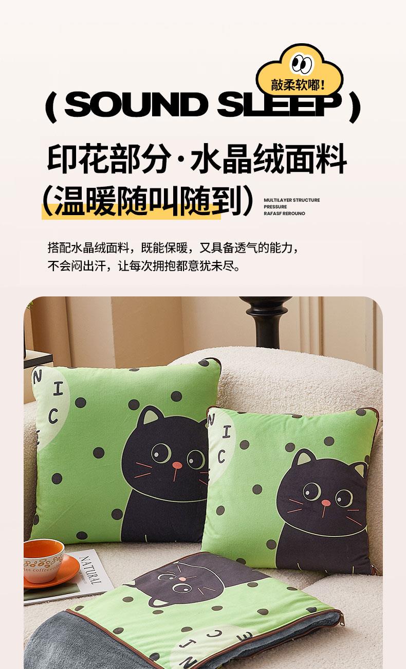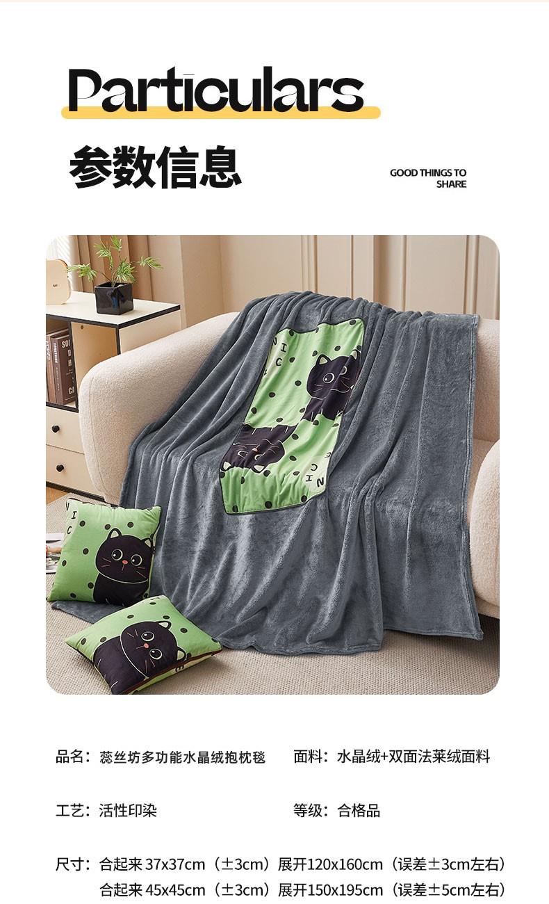 蕊丝坊家纺多功能水晶绒抱枕毯
