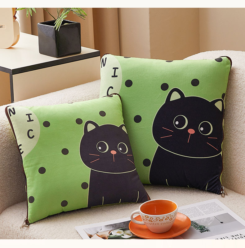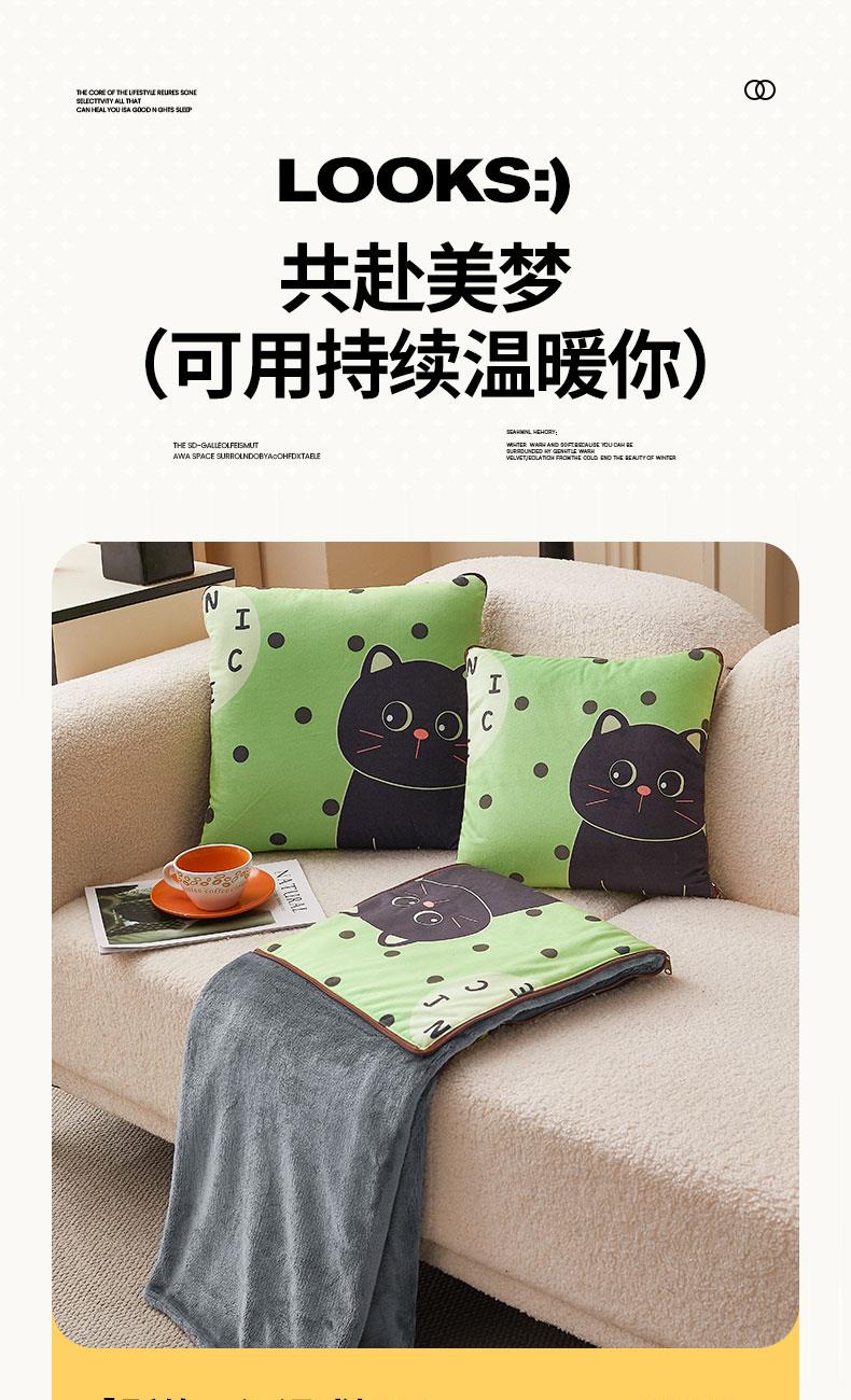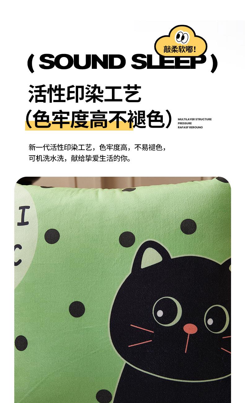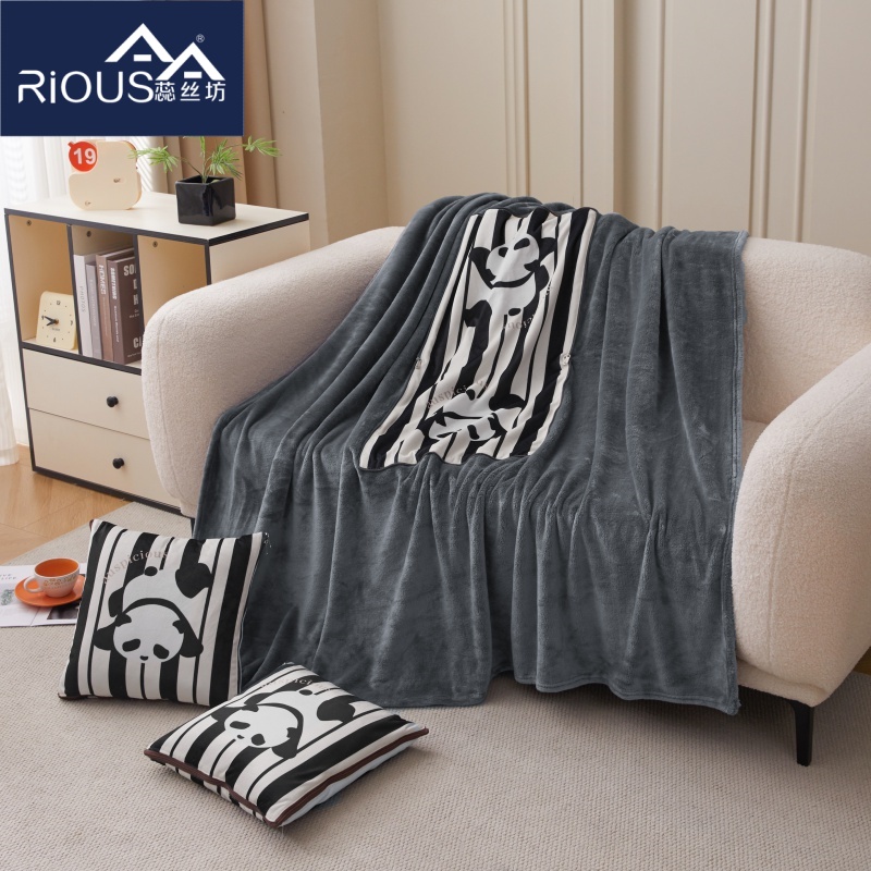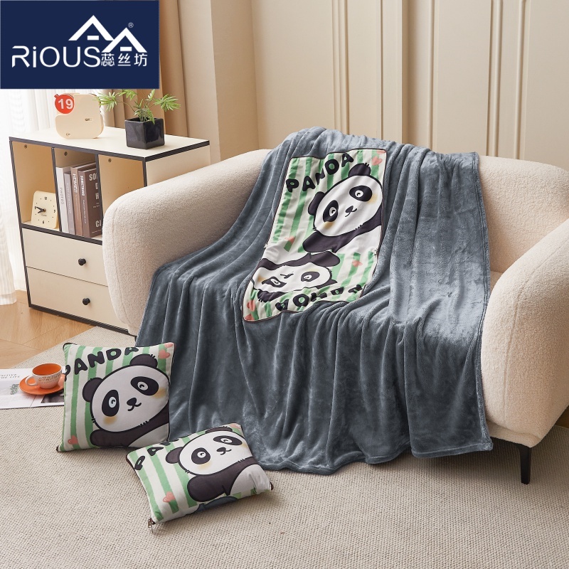 花色:绿色猫咪、LOVE熊、爱心熊猫、暴富、嘟嘟熊、 福气满满、萌狗、趴趴熊、三个朋友、眼镜鸭、竹叶熊猫 规格:折叠37*37cm展开120*160cm 面料:水晶绒+双面法莱绒(聚酯纤维) 双面高克重法莱绒面料,绒毛细密,一触即暖;印花部分水晶绒面料,保暖透气不闷汗。植入导电丝,减少干燥天气带来的静电烦恼;新一代活性印染,色牢度高,不易褪色,不惧机洗水洗;细密卷边工艺,针脚紧密,耐磨耐用;双向拉链设计,顺滑易拉,经久耐用。