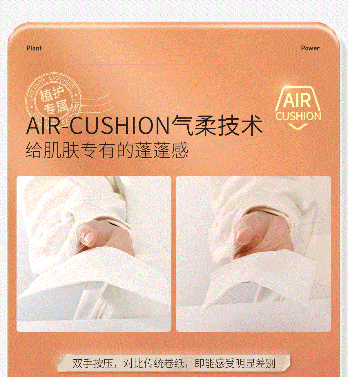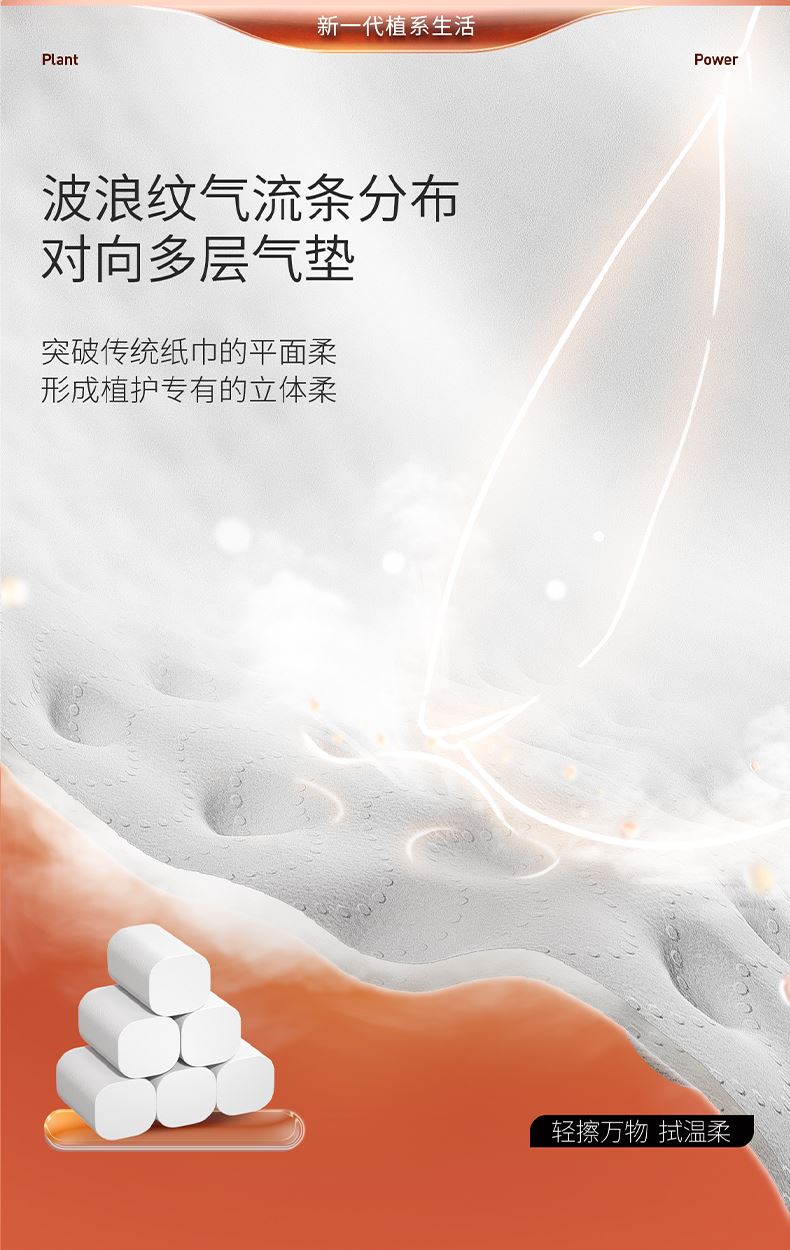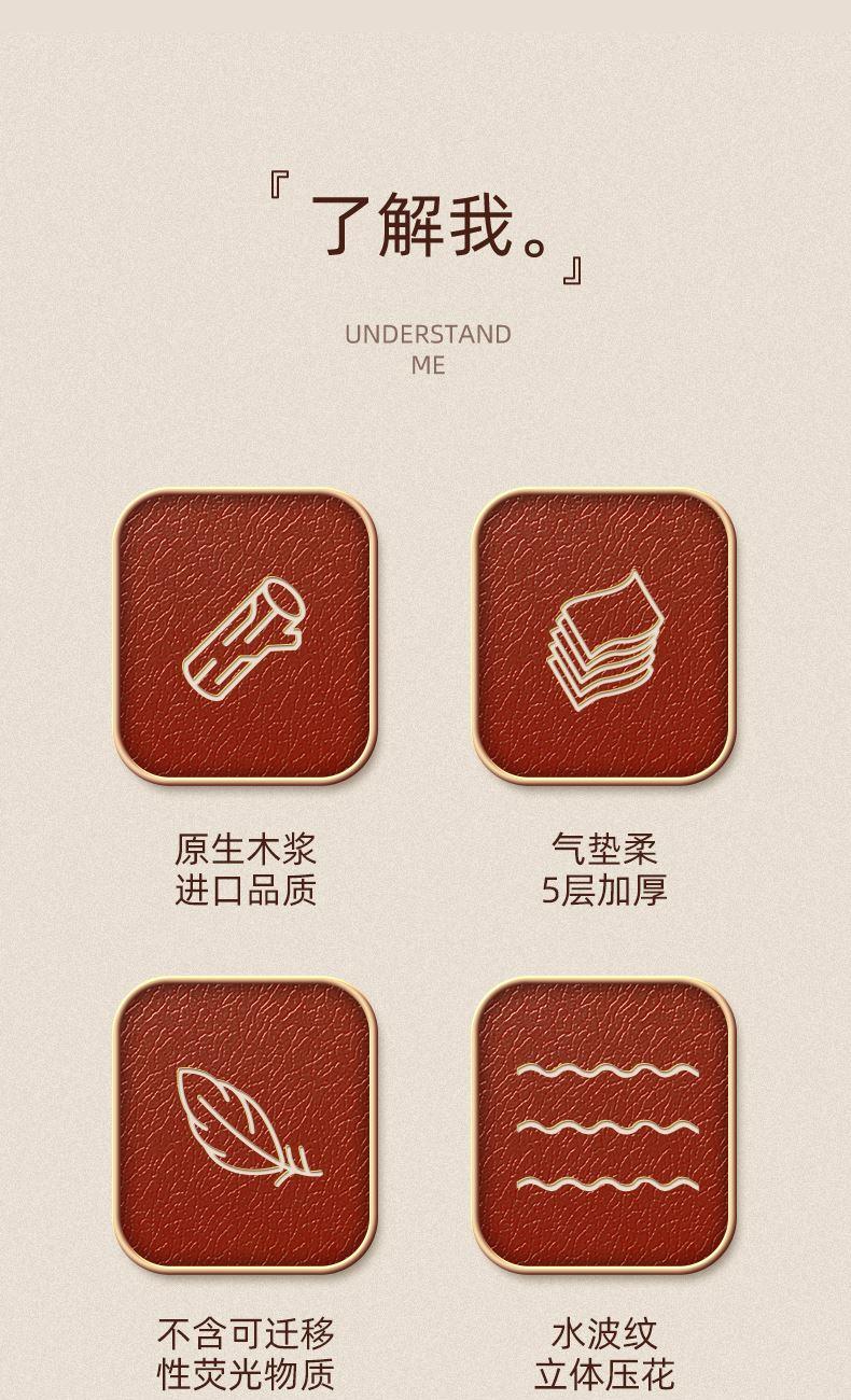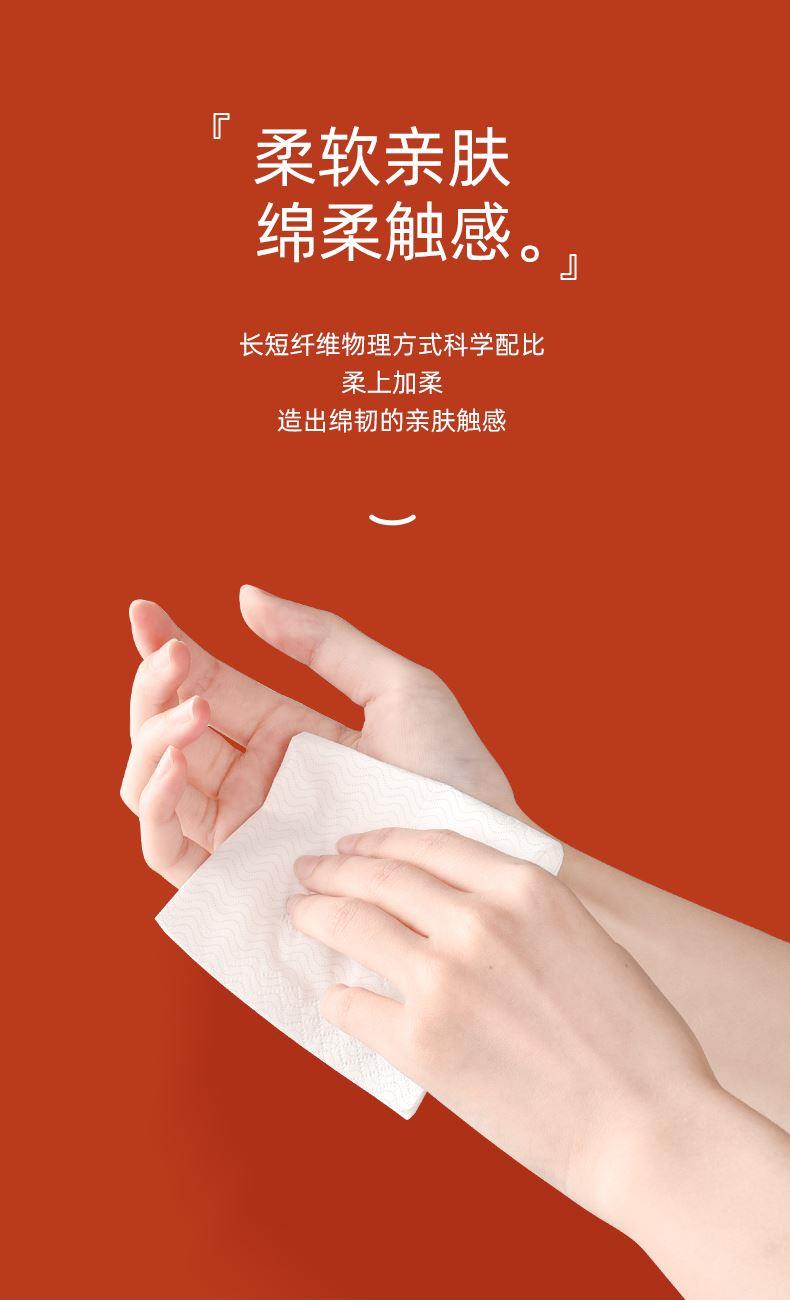 长短纤维物理方式科学配比颠覆传统纸巾手感柔触感升级,柔上加柔造出绵韧的亲肤触感;